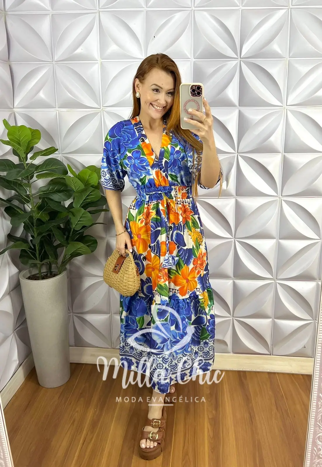 Vestido Todo confeccionado no Alfaiataria tecido maravilhoso! Com estampa floral que esta um charme!