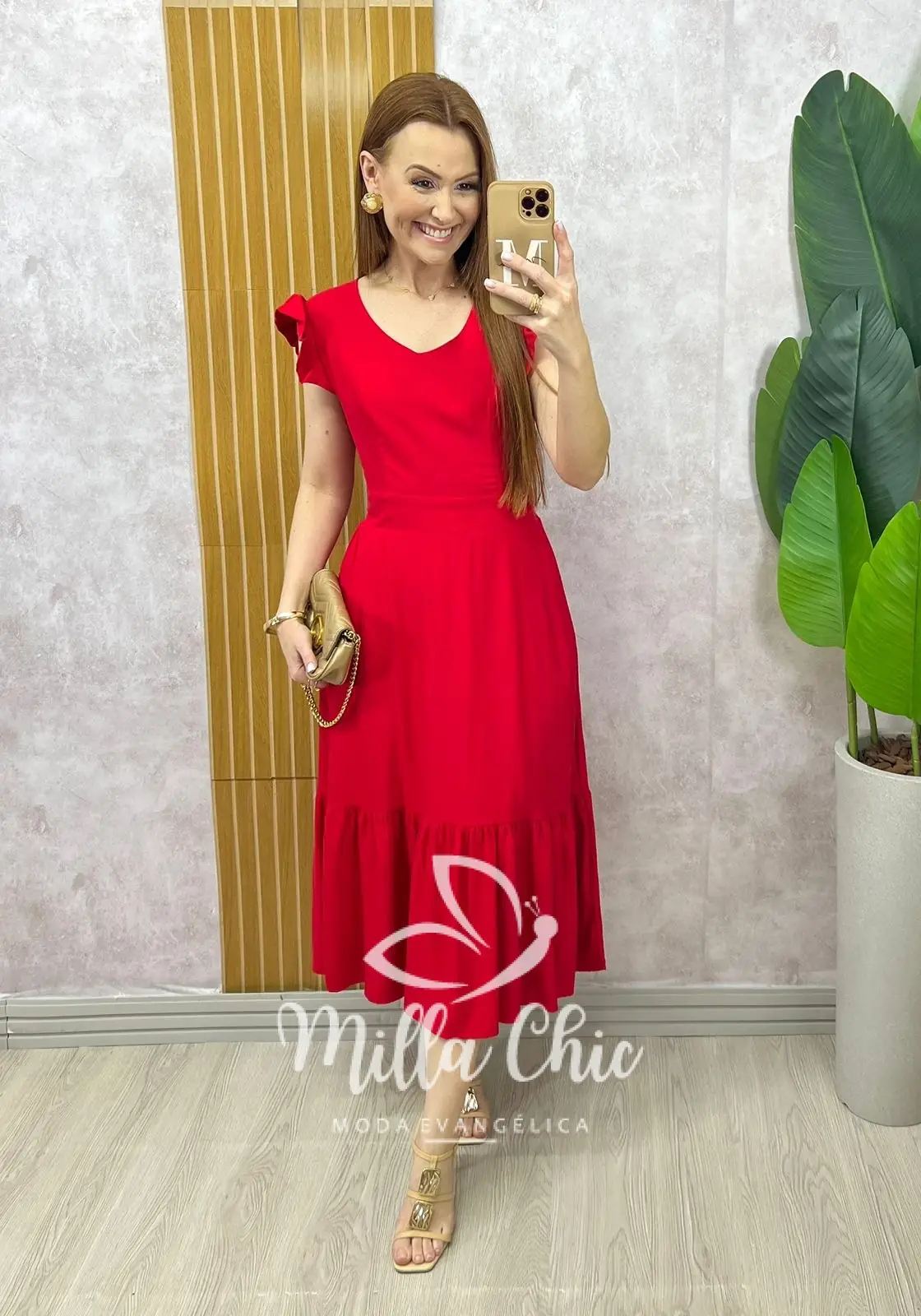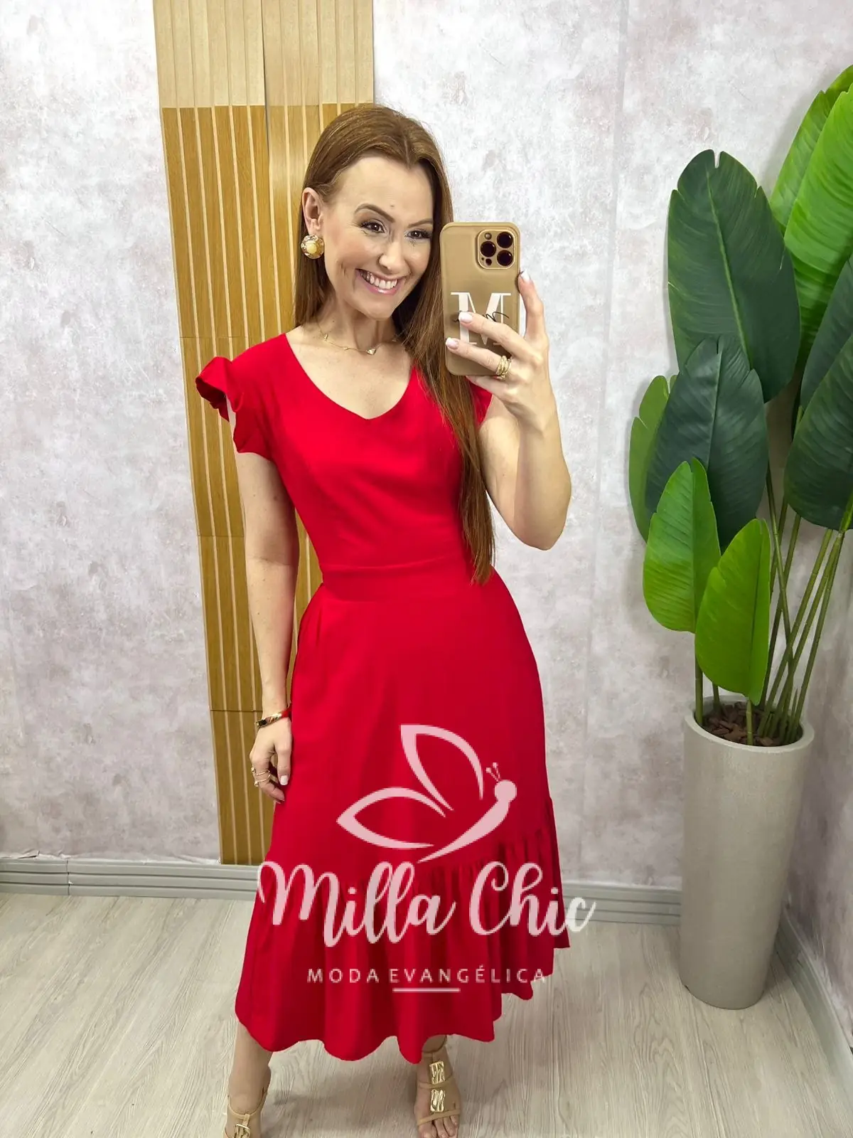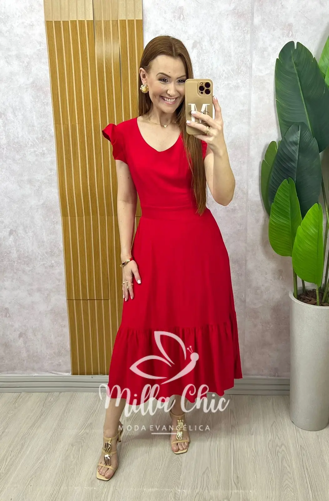 Vestido Alicia em viscosarja vermelho cereja - Milla Chic