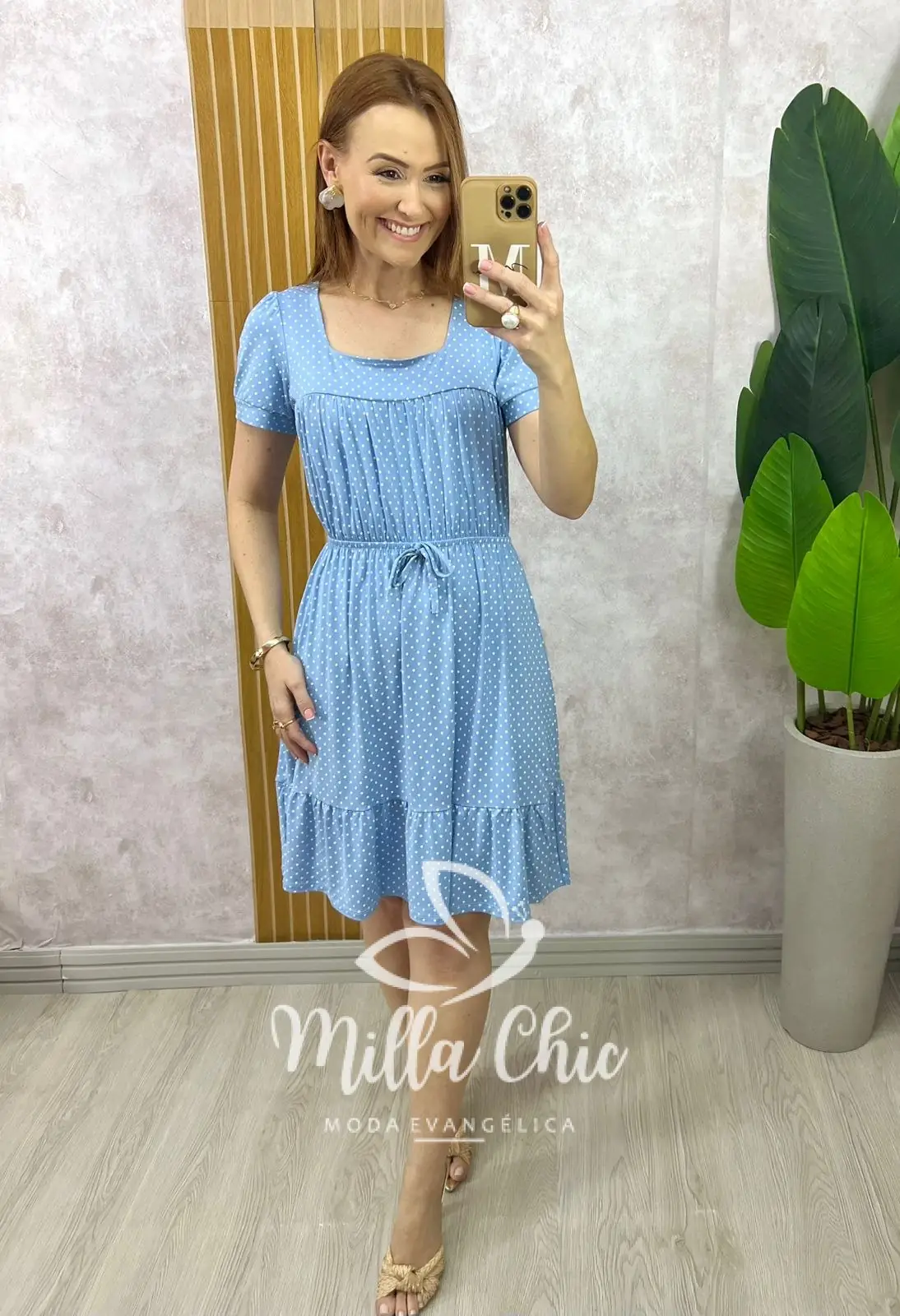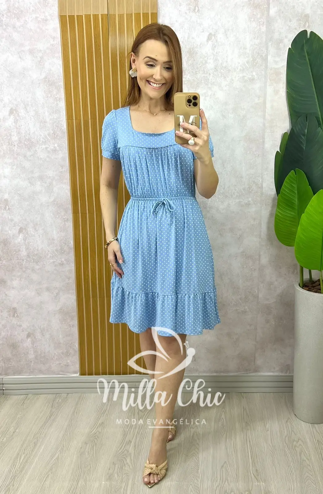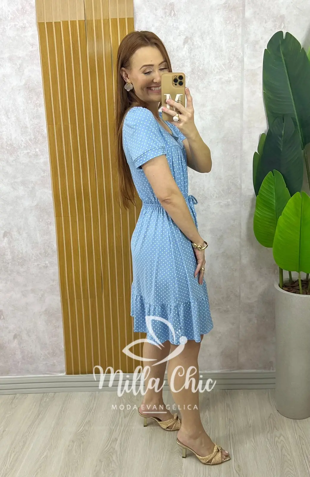 Vestido Amanda Comfy em Viscolycra Poá - Azul Baby - Milla Chic