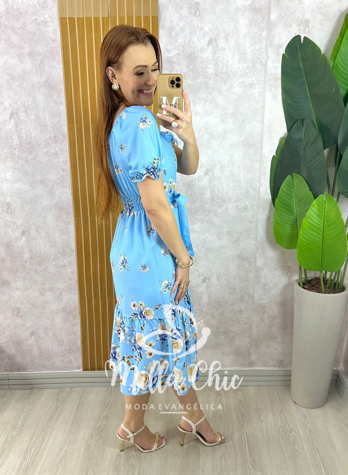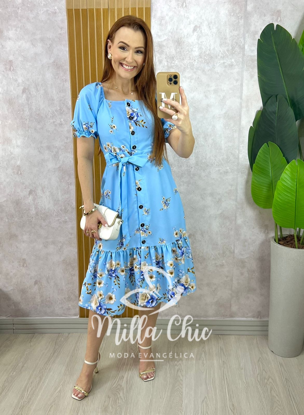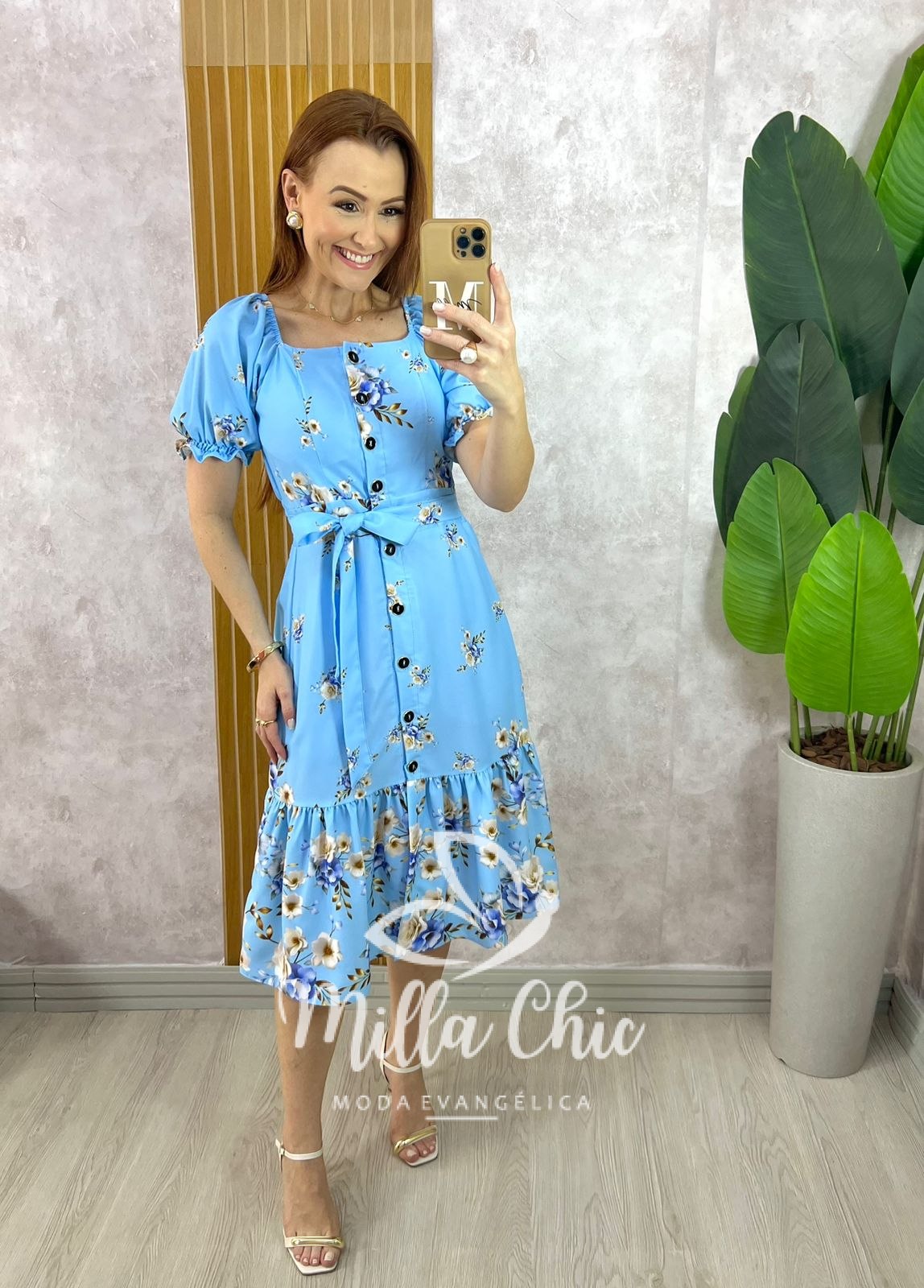 O vestido Angélica te deixa uma princesa. Aquele vestido que quando você veste passa aquela feminilidade, delicadeza e elegância. Um clássico romântico e delicado mas com toque contemporâneo. Ele tem bojo no busto que deixa o decote perfeito . O decote desse modelo é mais para cima. Perfeito para minhas irmãs que não gostam de muita amostra de pele . Botões são funcionais dando um contraste com a estampa . Deixando super elegante .