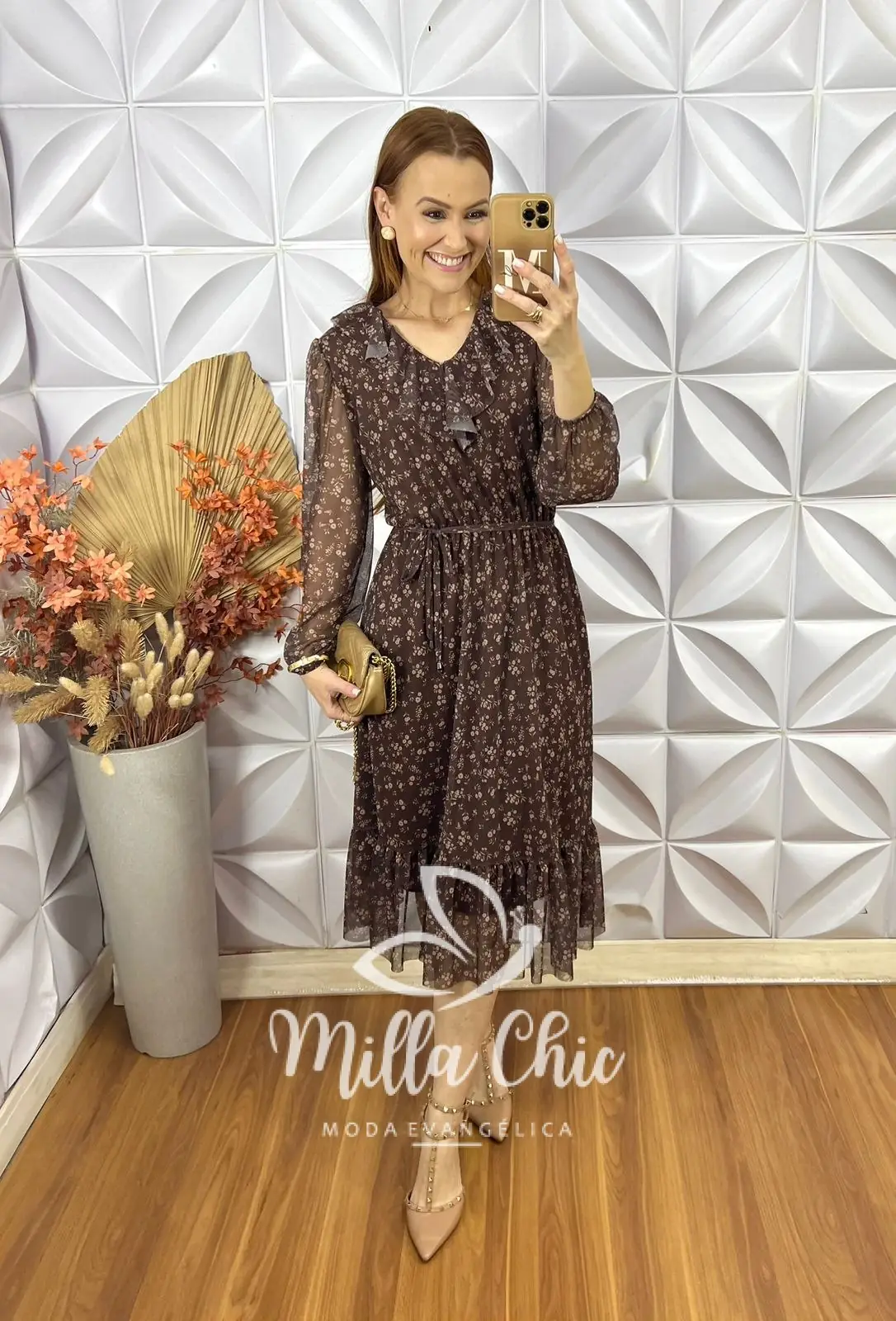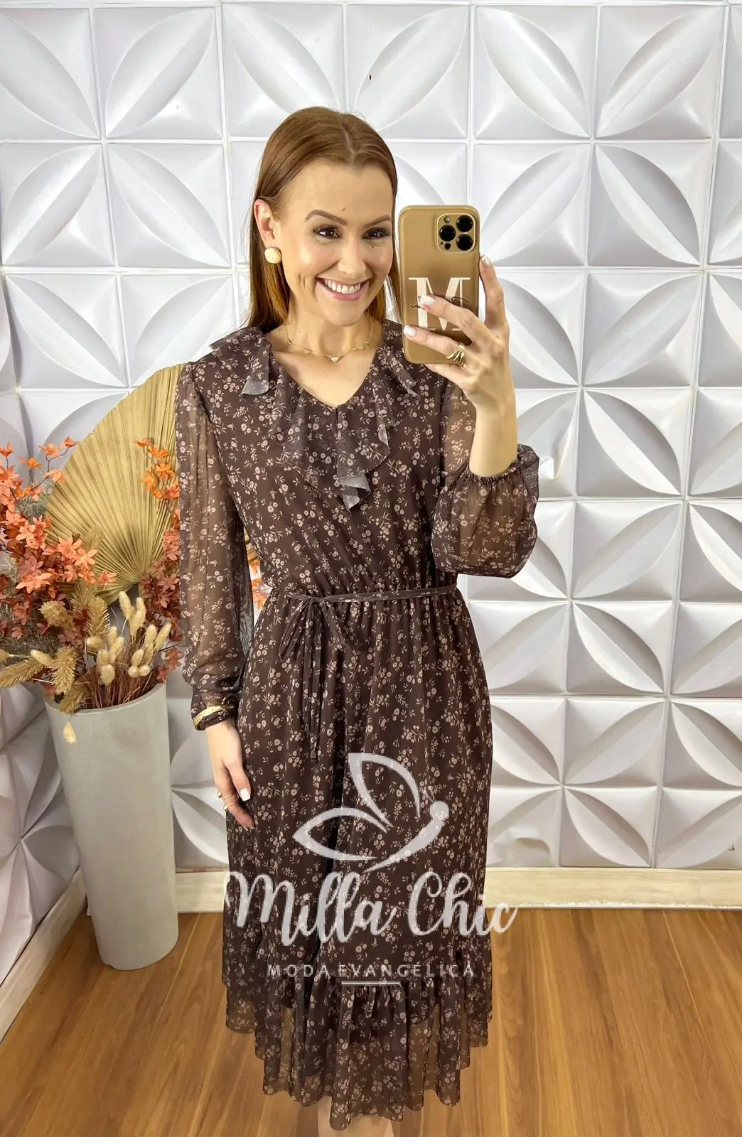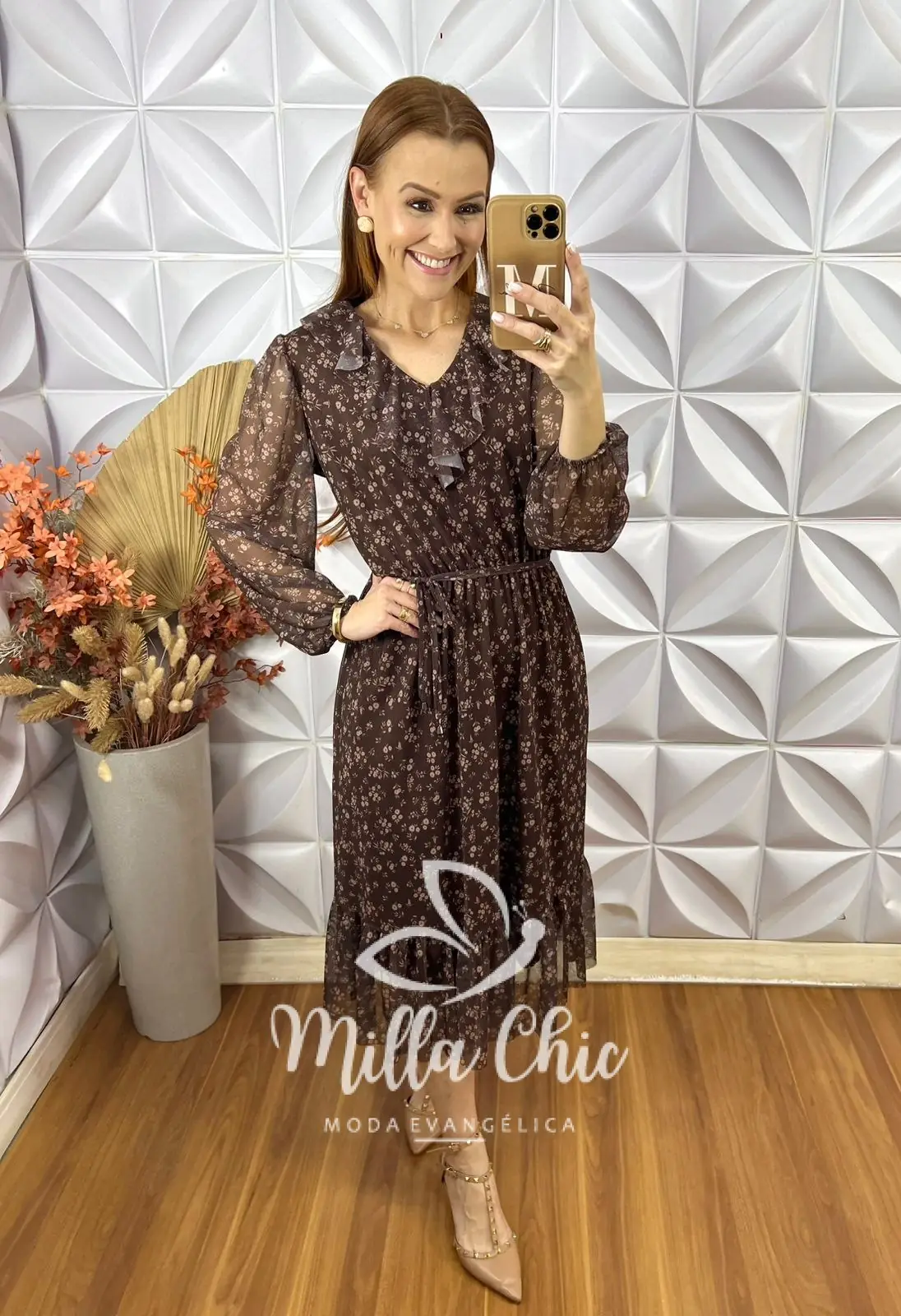 Aquele vestido que vai te deixar linda, chic e estilosa . Ideal para produções versáteis e mais elegantes . Manga longa detalhes de babado no busto deixam ele mais feminino e delicado .