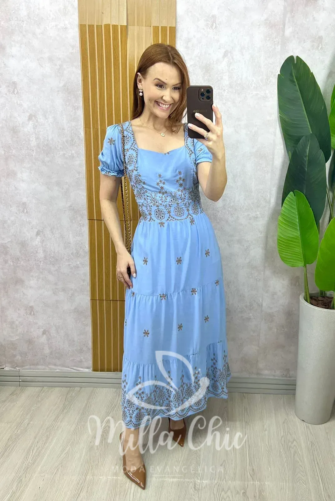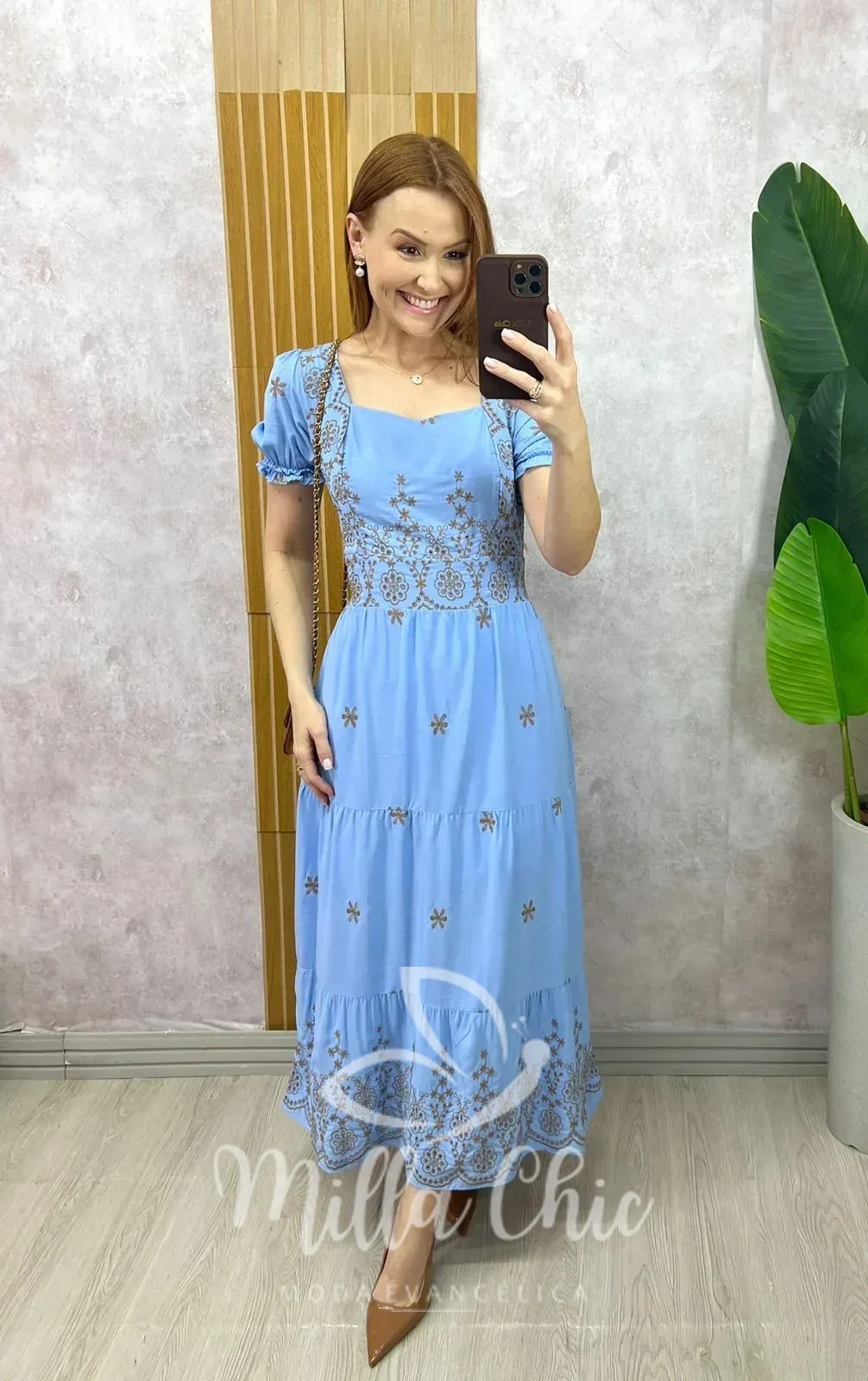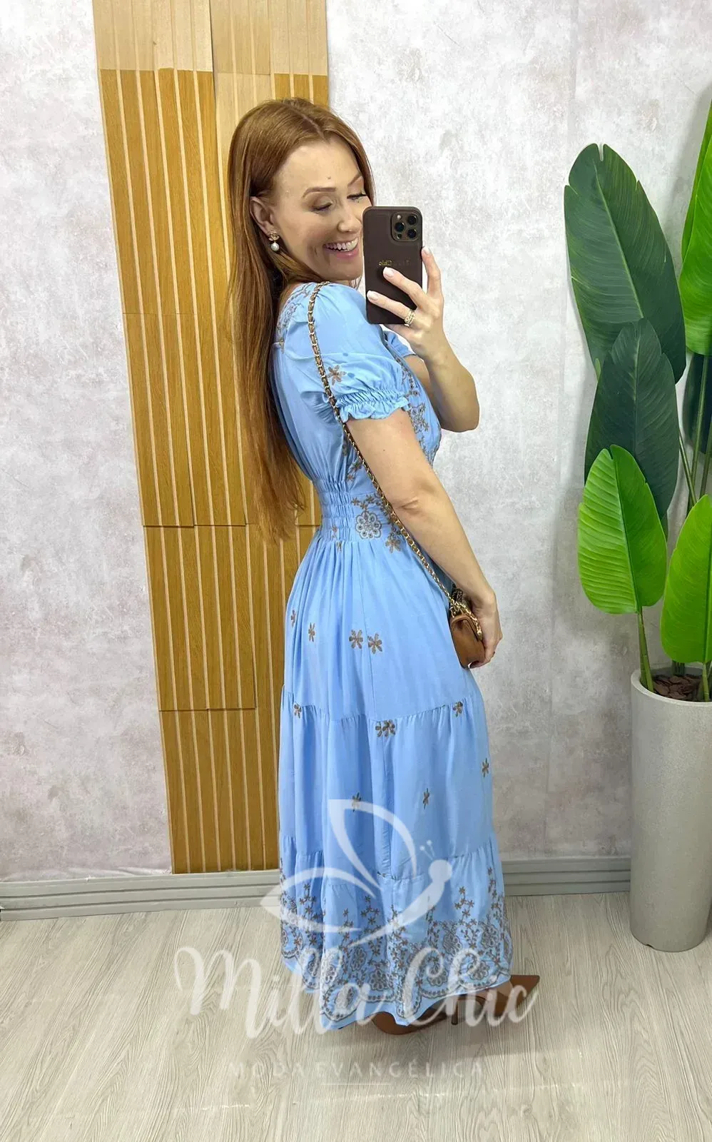 O vestido a Arabela é um modelo clássico delicado e bem versátil . Todo chic e delicado com o tecido bordado .