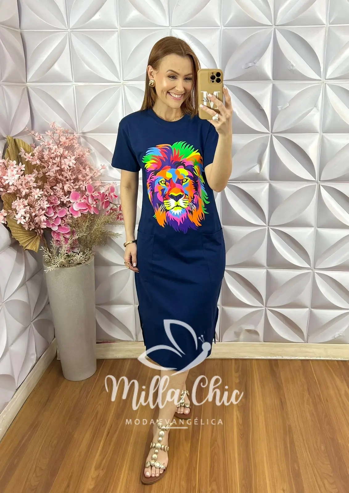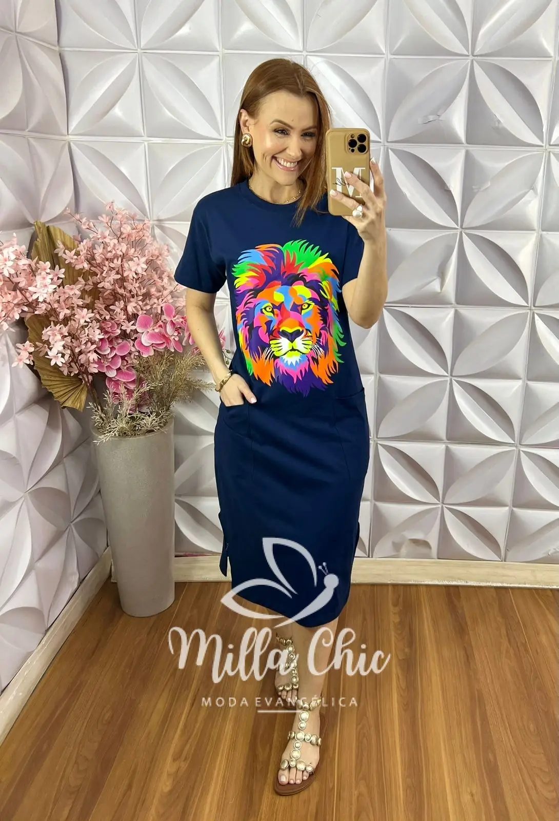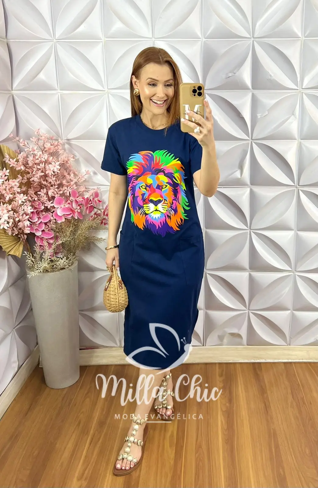 O diferencial desse vestido é que ele deixa quem usa estilosa e moderna pois a estampa de leão deixa o autêntico e dá aquele toque além de moderno o de posicionamento, pois quem olha esse leão já vê que somos cristãs.