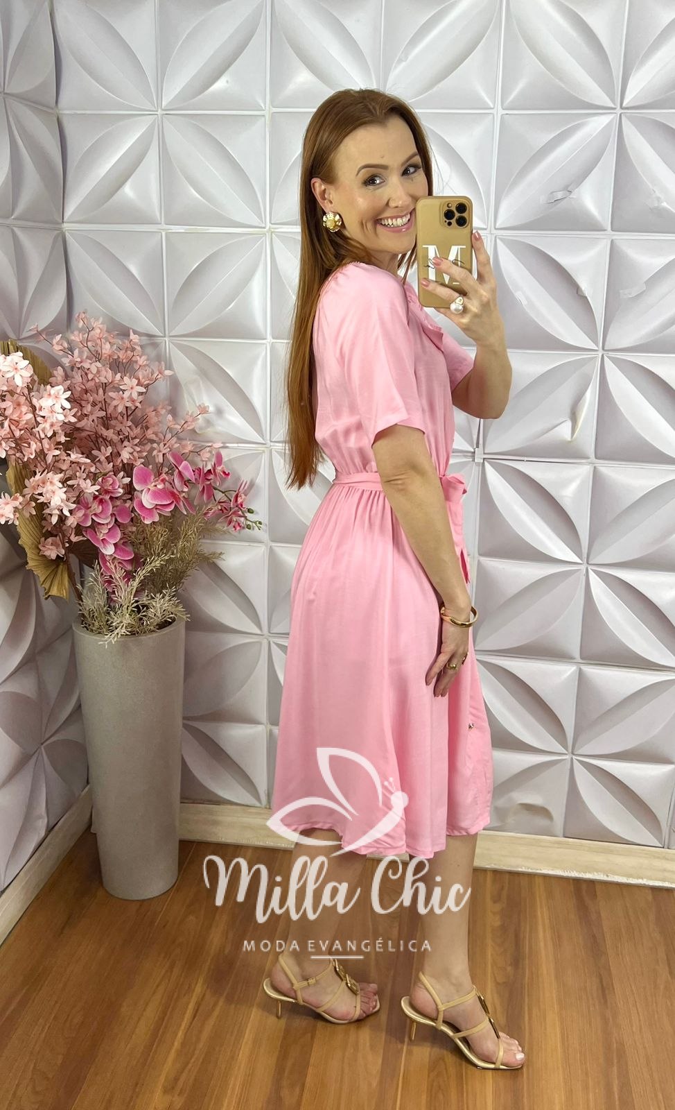 A modelagem justa na cintura busto e solta no quadril sem armar. Aquele vestido que te veste e te deixa linda.