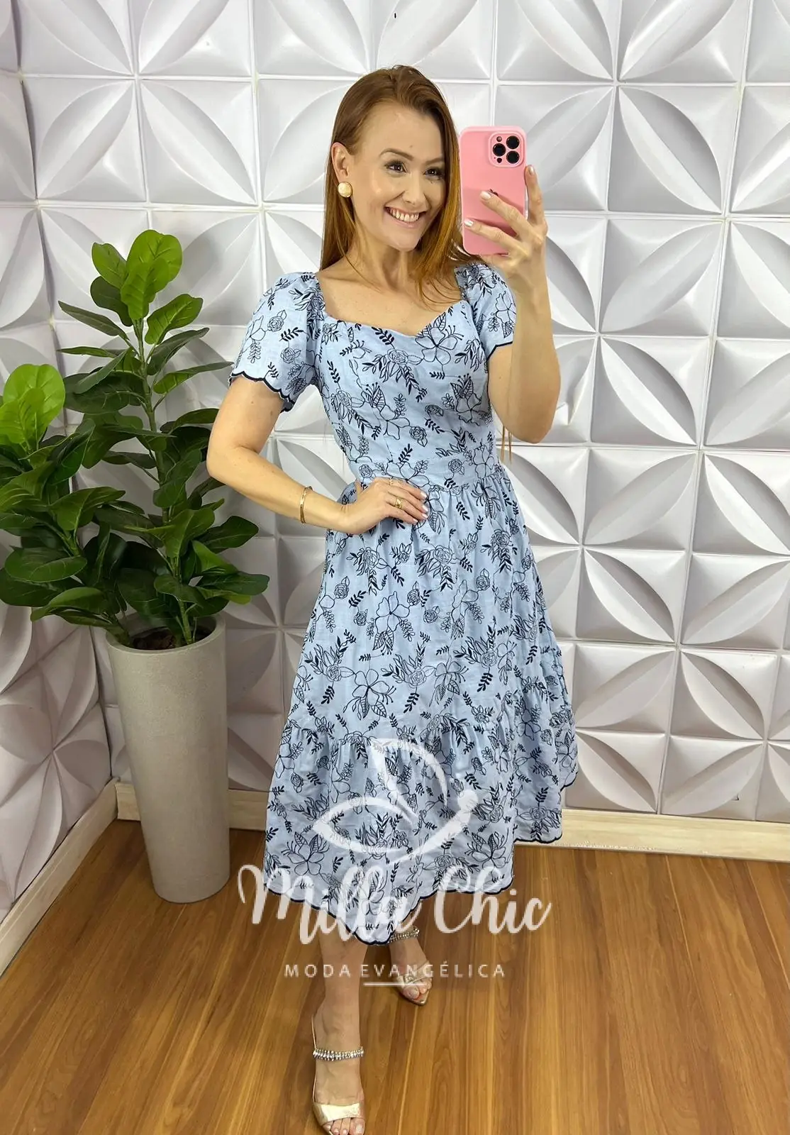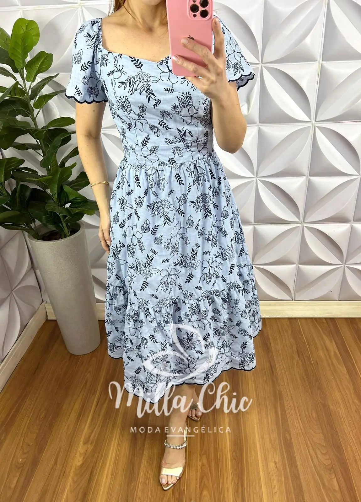 Vestido Cambraia de Linho Bordado tecido que traz delicadeza e romantismo para o look! Com bordados Em alto relevo floral que esta um charme!