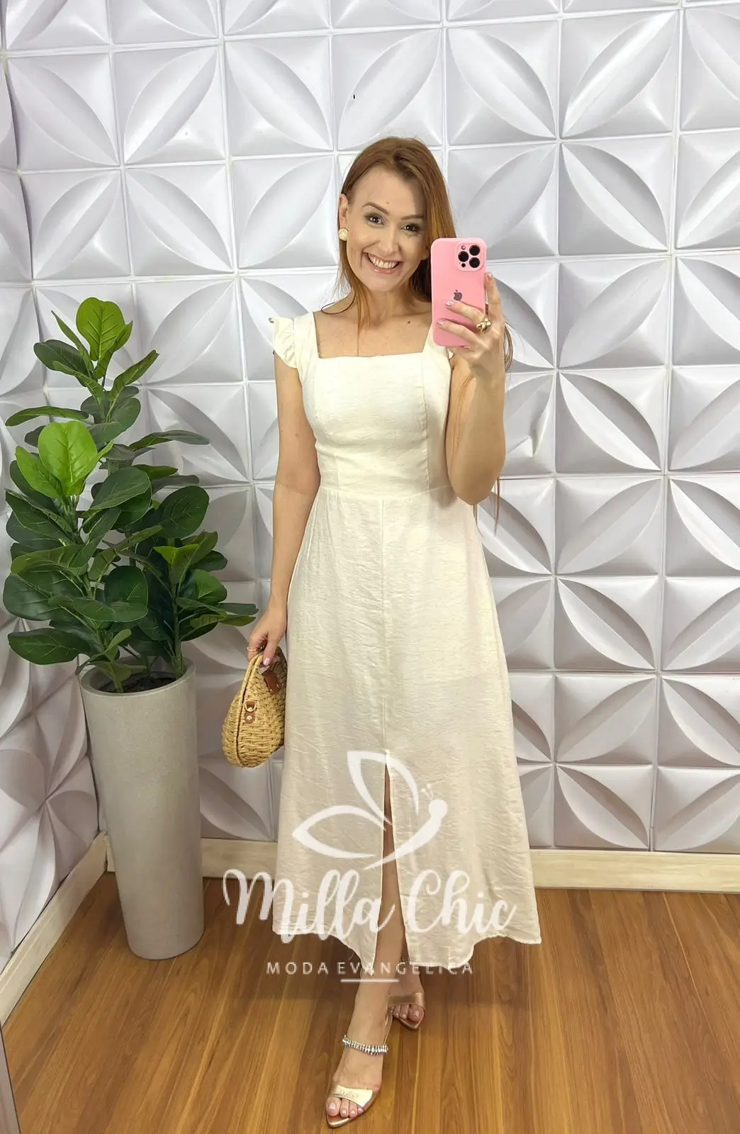 – recorte no centro da saia,