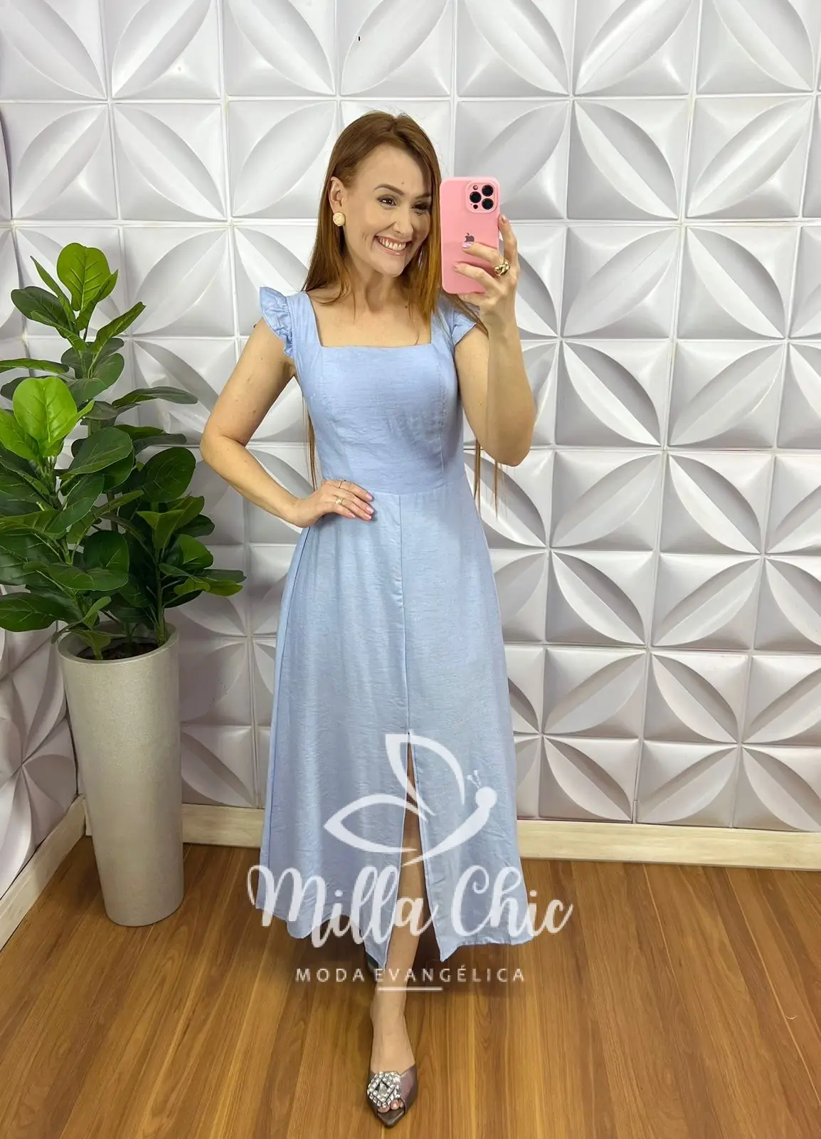 – recorte no centro da saia,