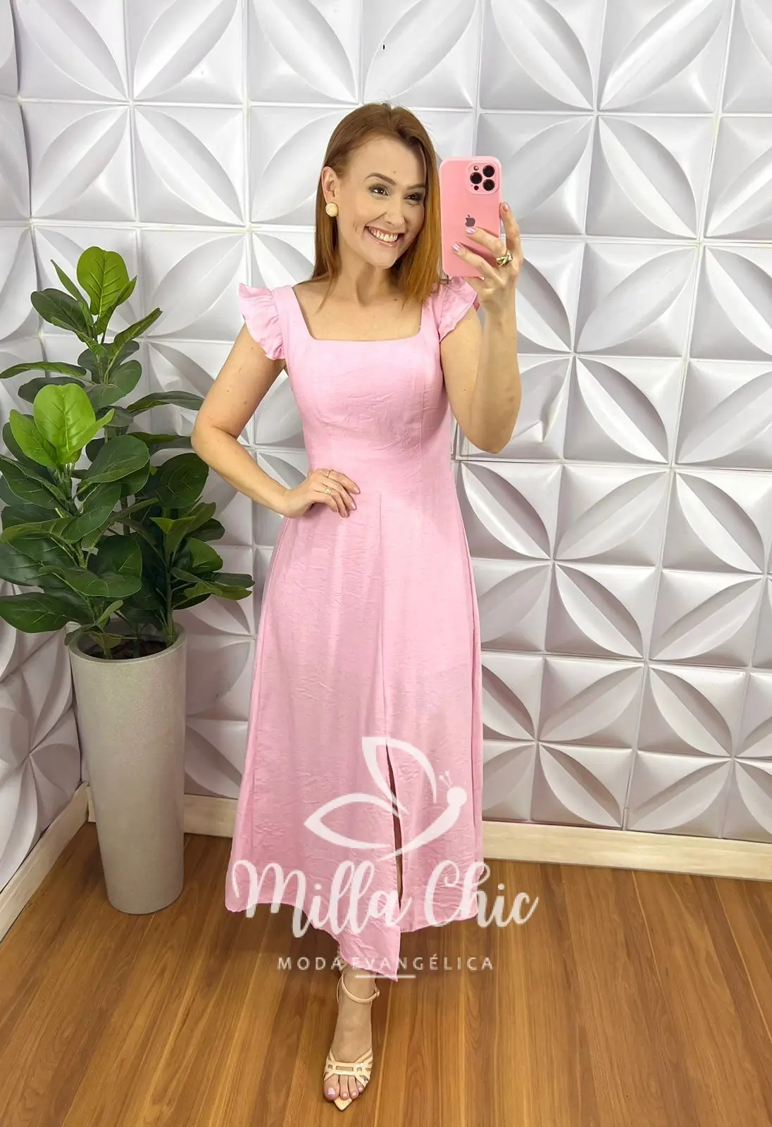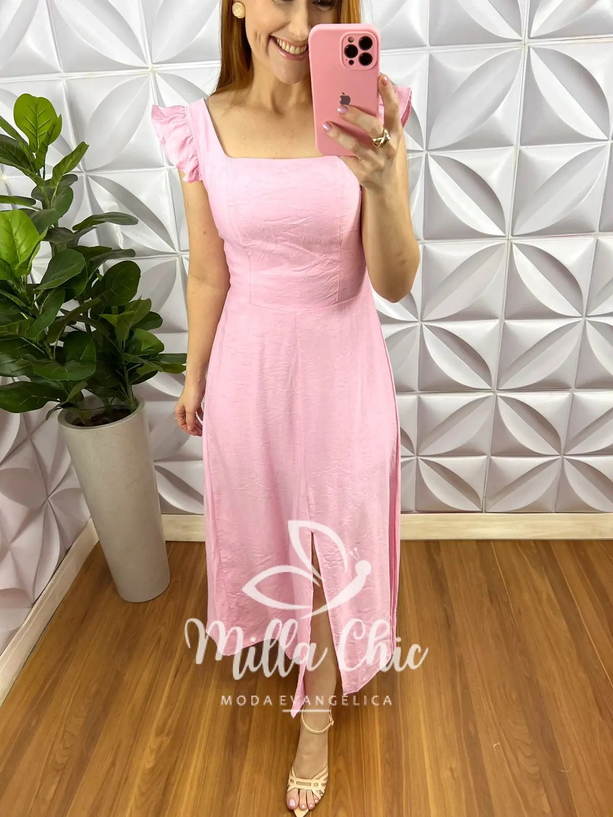 – recorte no centro da saia,