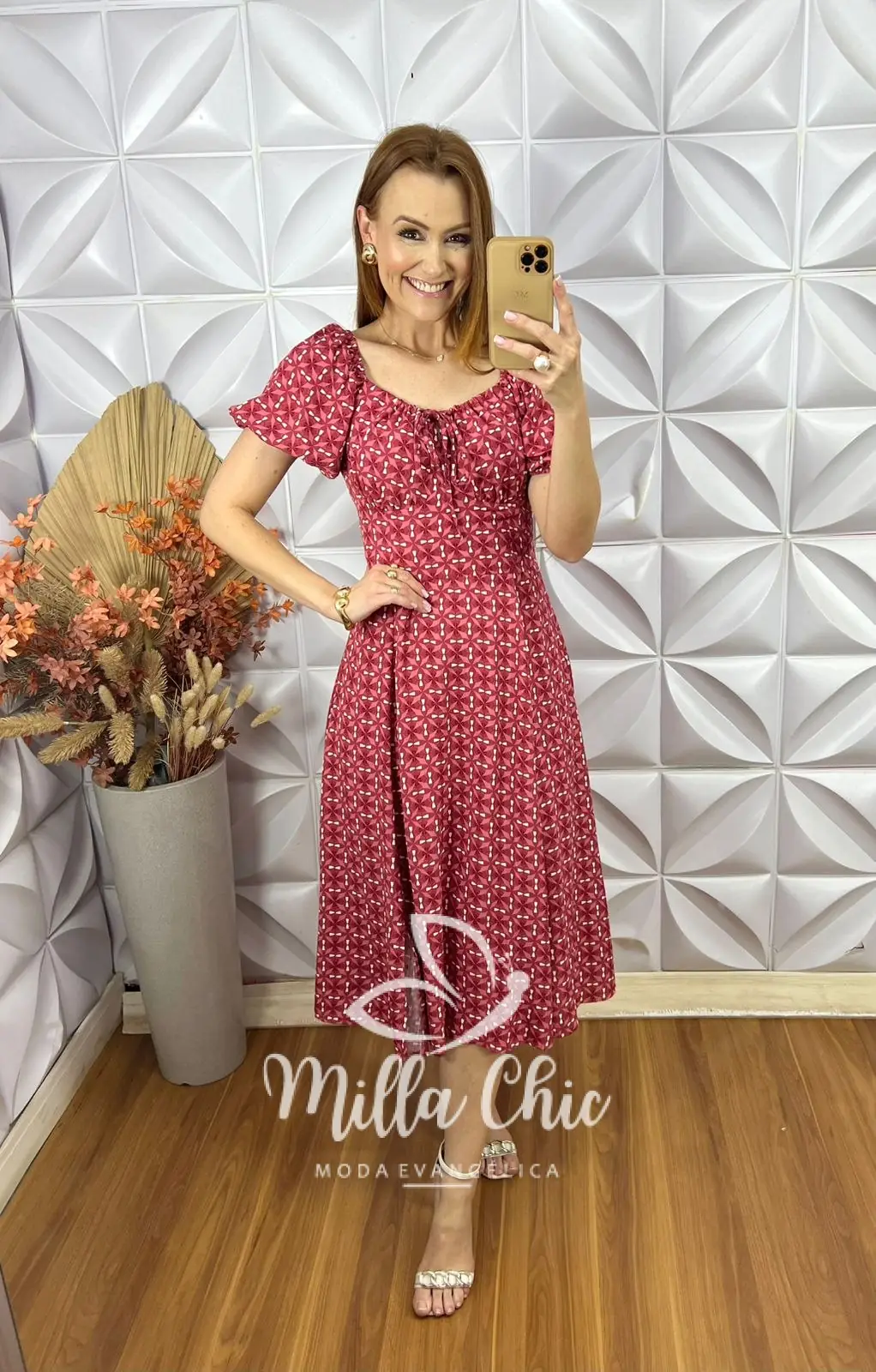 Aquele vestido fresco e que valoriza nossa feminilidade . Levemente evasê.