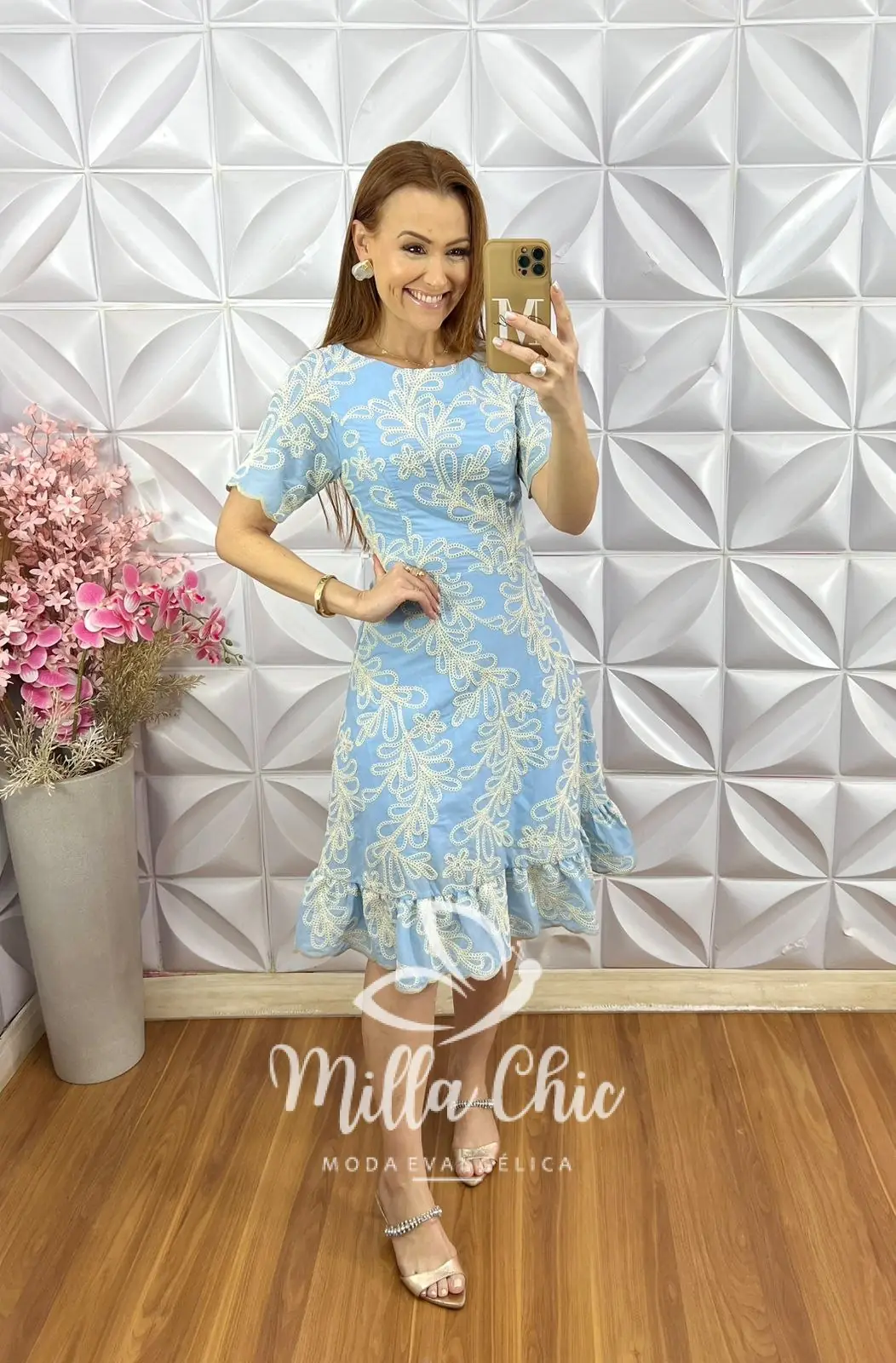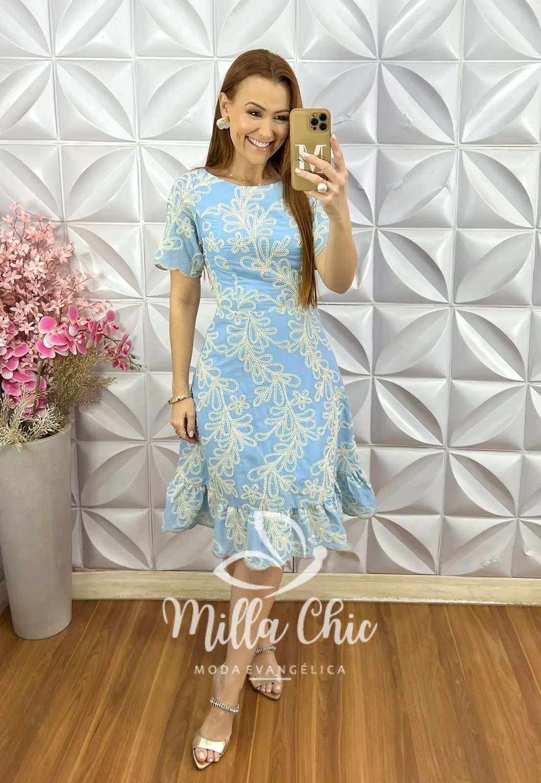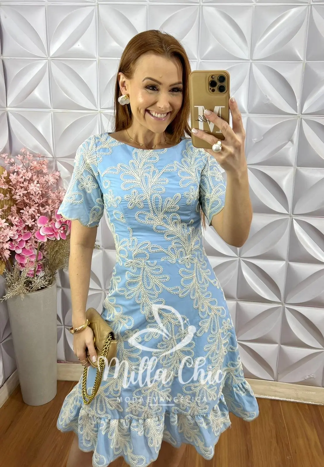 Vestido Carlota Lesie Bordado - Azul Baby - Milla Chic