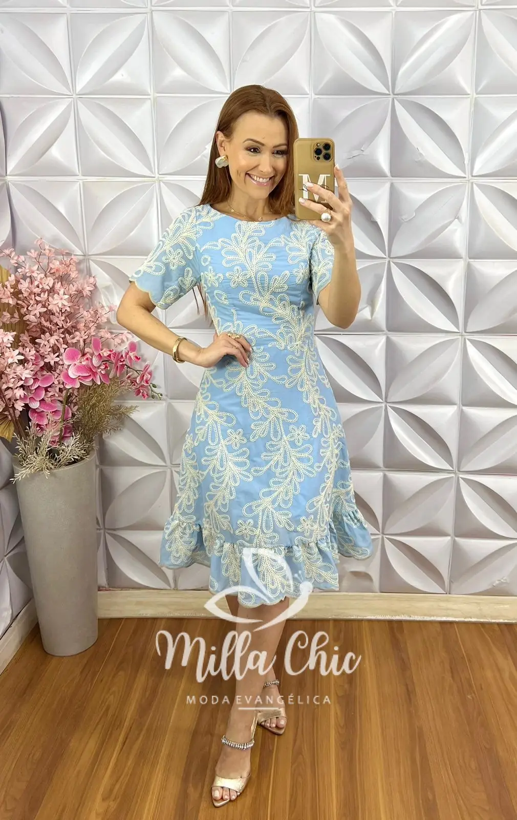 O babado na parte da saia dá aquele toque mais moderno e delicado .