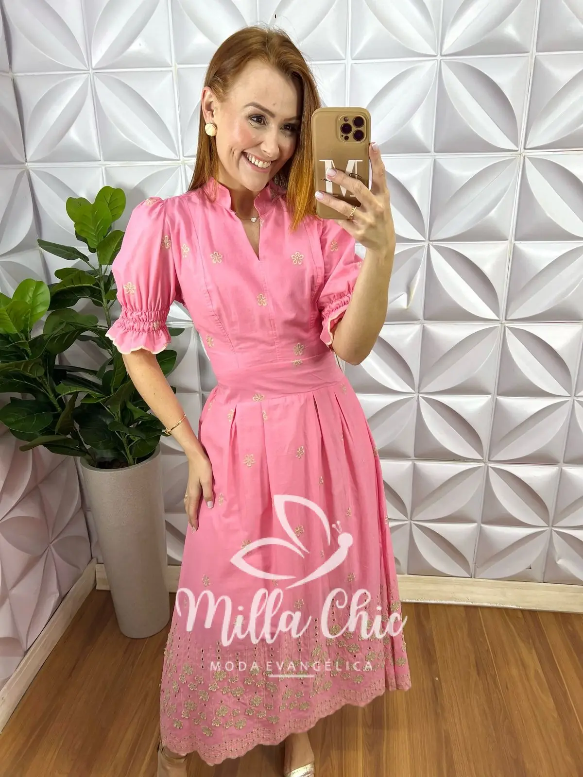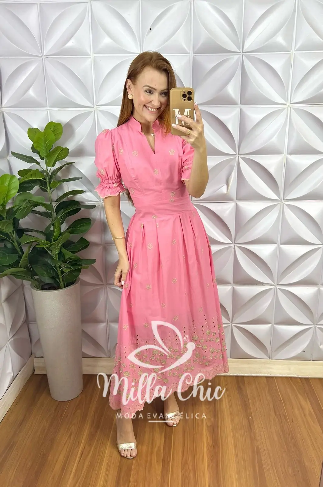 Nosso vestido Carolaine . Chic, delicado e modesto . Todo confeccionado em lesie 100% algodão . Em bordados perfeitos e toda com a barra em 3 d . Muito confortável e um caimento perfeito .