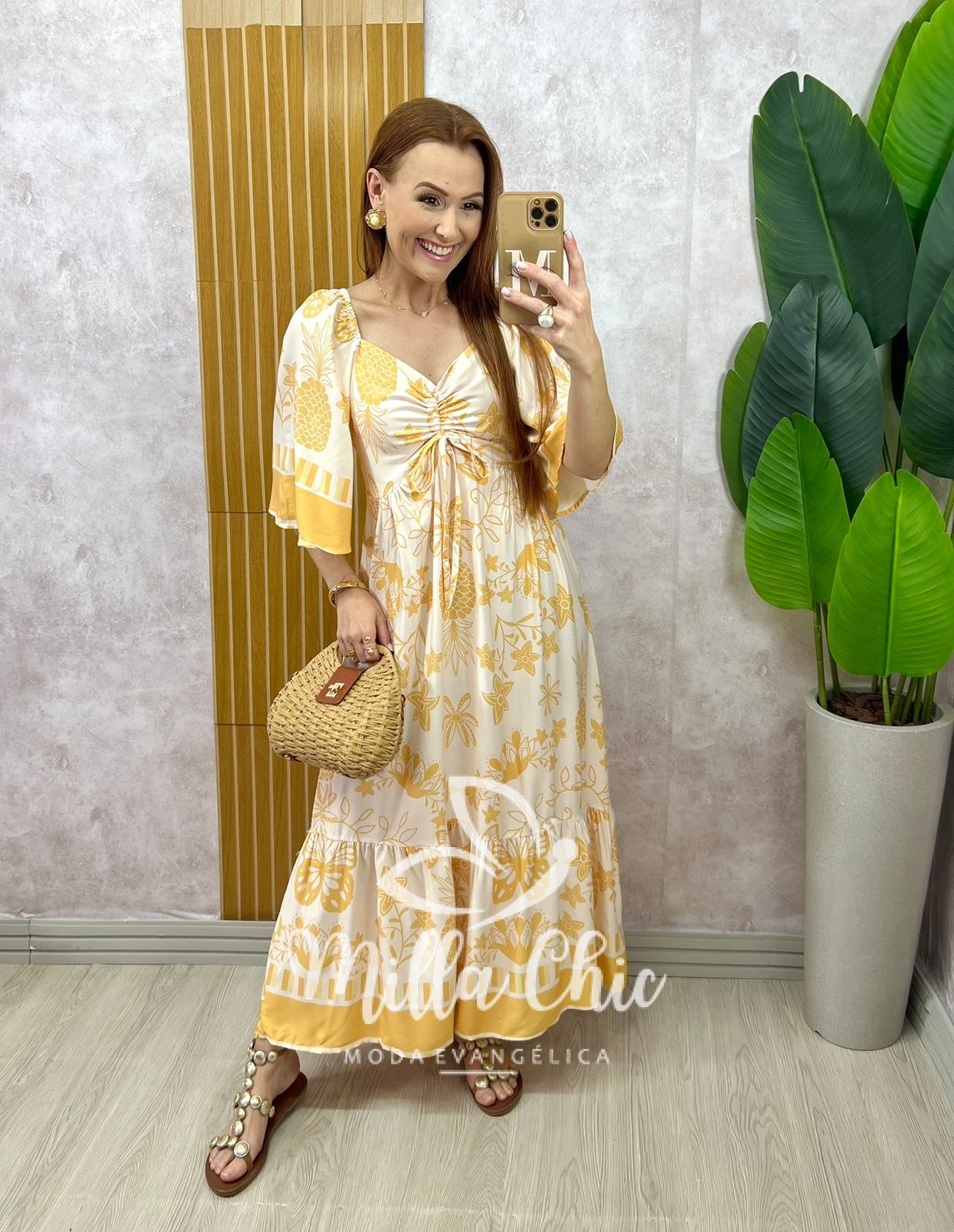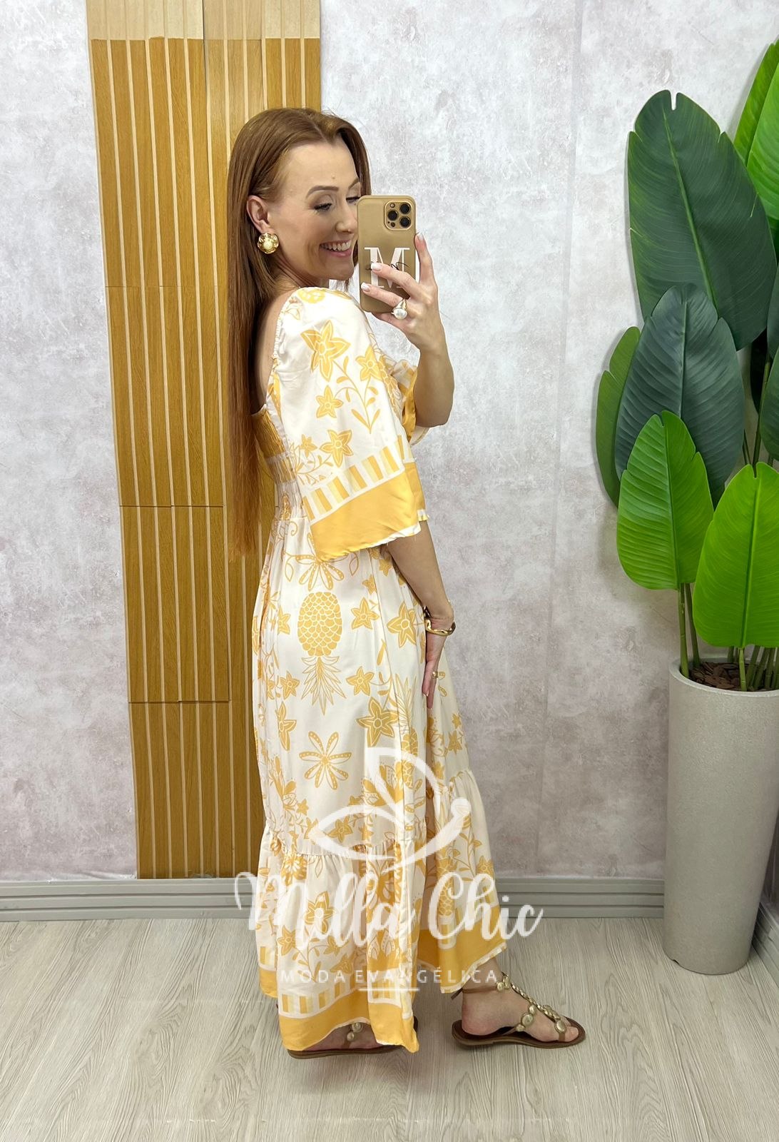 Vestido Catarina em viscosarja estampado amarelo - Milla Chic