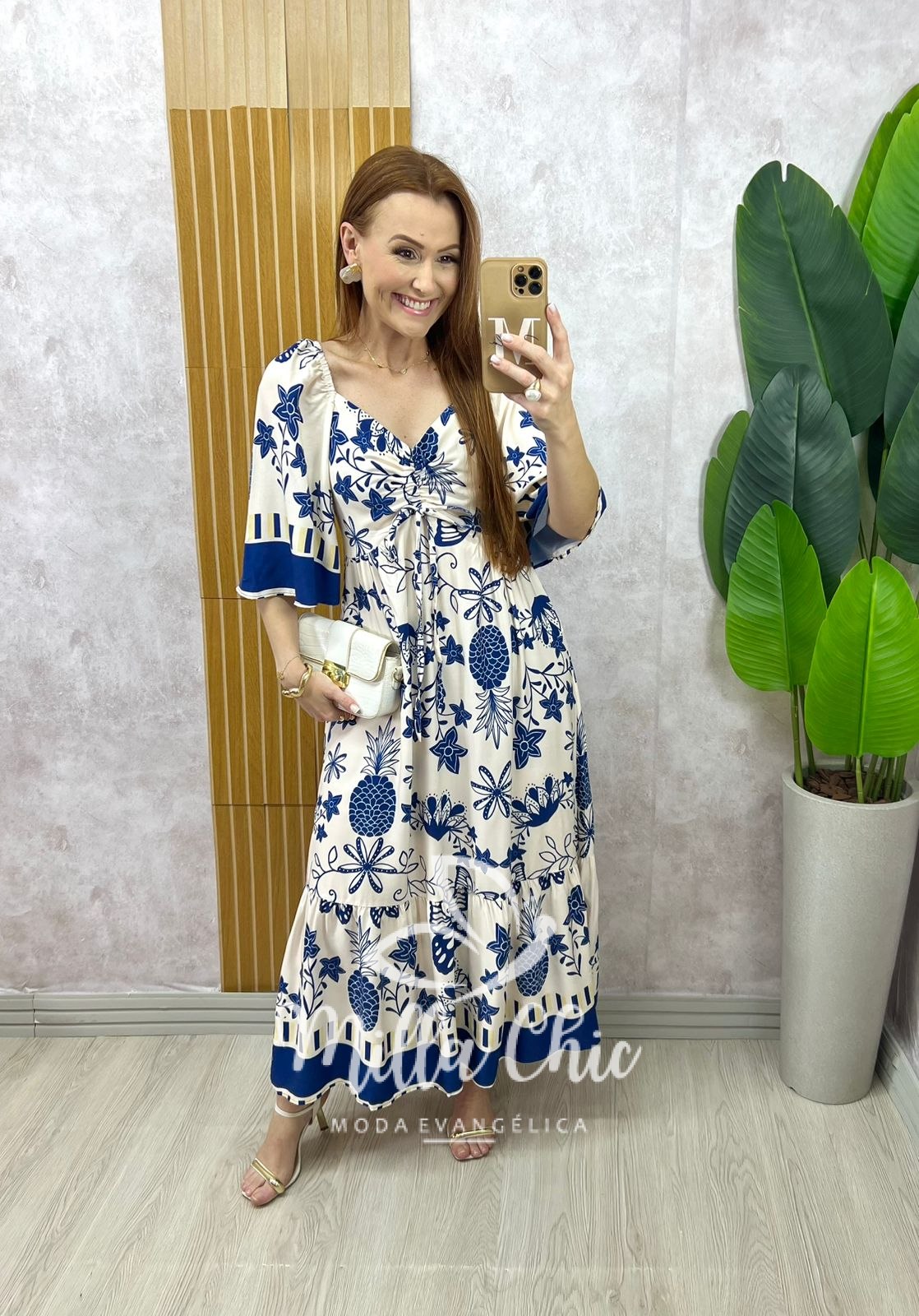 O vestido Catarina tem essa estampa linda tropical e bem verão que transmite elegância e autenticidade. Ele apresenta um design midi possui elastex nas costas que valoriza a silhueta feminina, proporcionando um caimento perfeito. Ele une praticidade e charme, permitindo que você carregue estilo encantador.