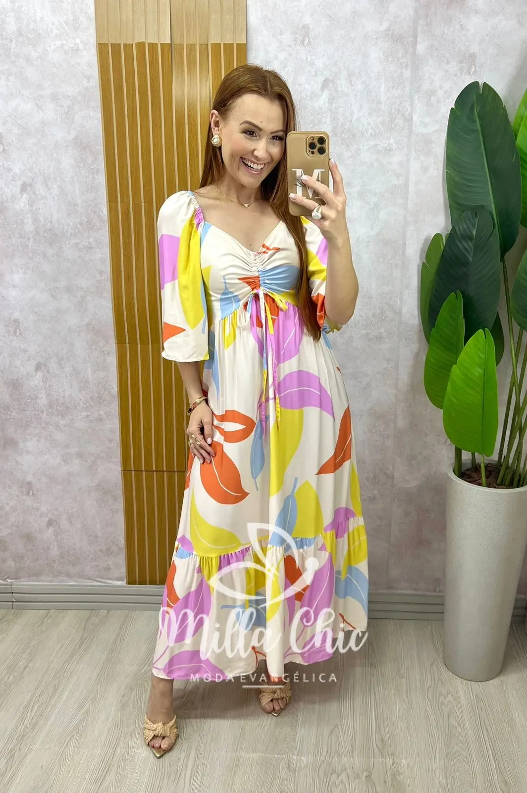 Vestido Catarina em viscosarja – Off estampa abstrata