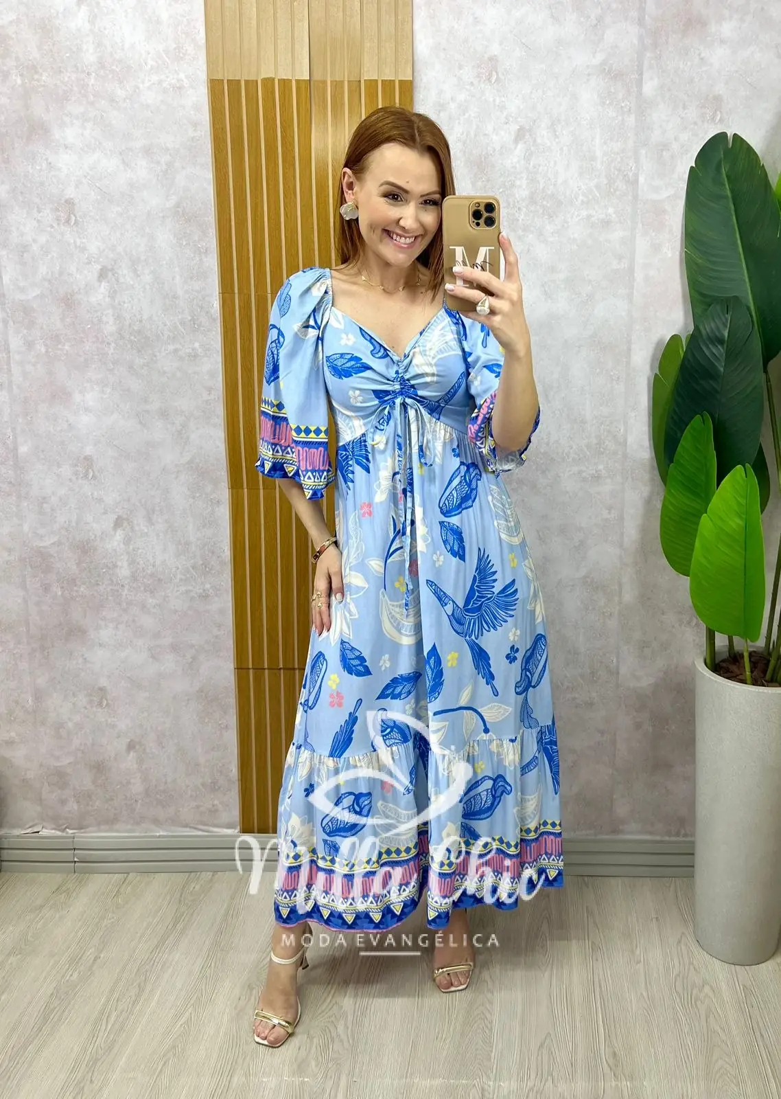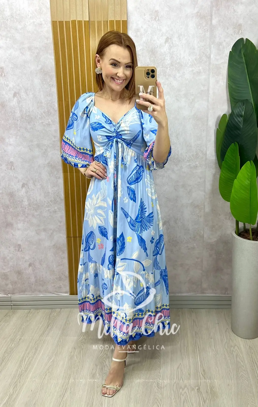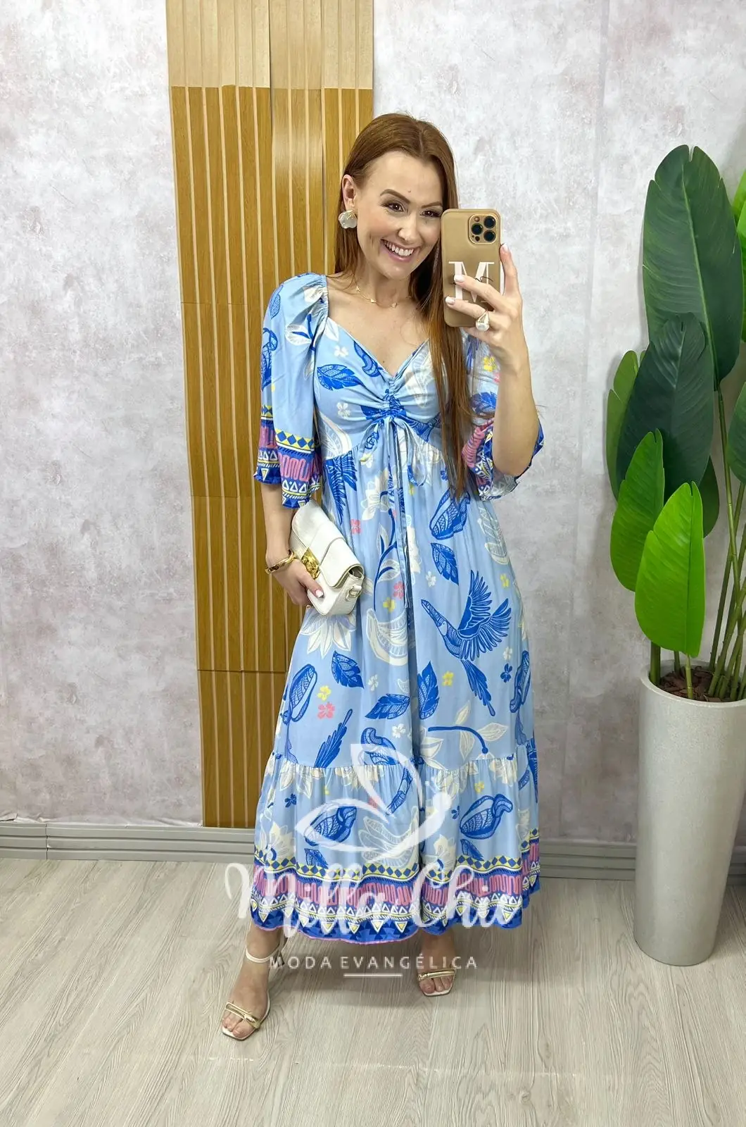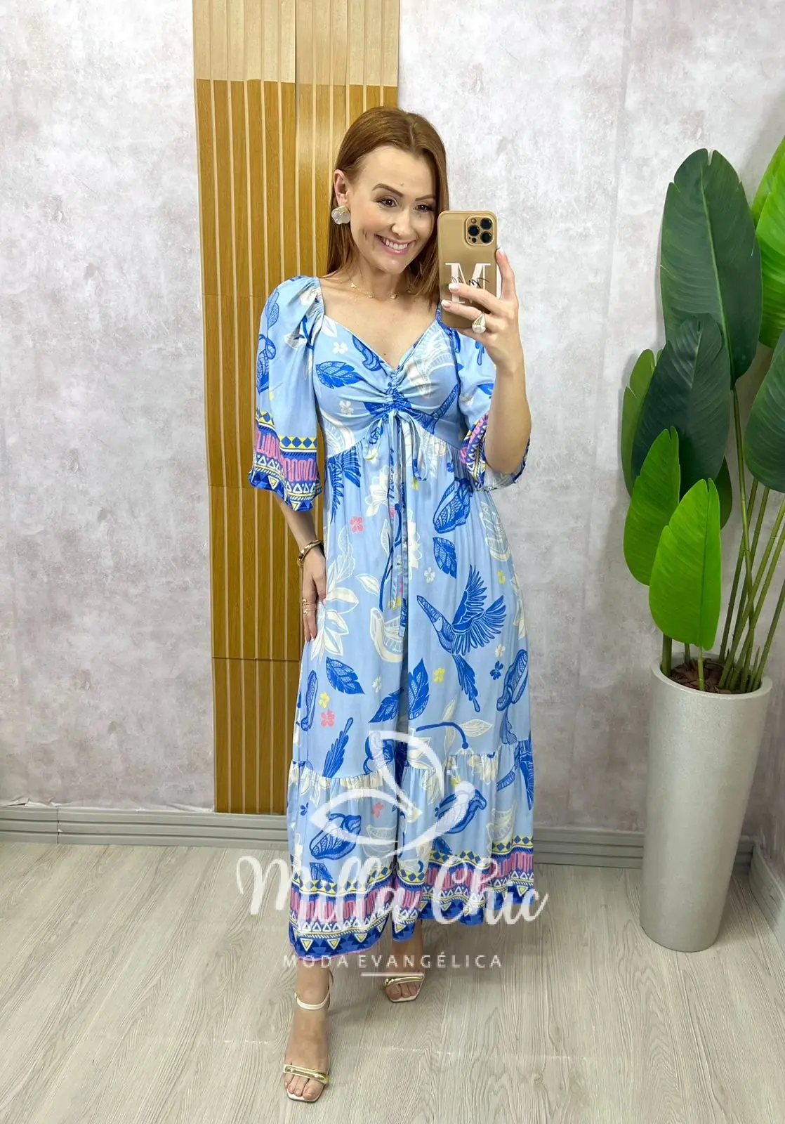 O vestido Catarina tem essa estampa linda tropical e bem verão que transmite elegância e autenticidade. Ele apresenta um design midi possui elastex nas costas que valoriza a silhueta feminina, proporcionando um caimento perfeito. Ele une praticidade e charme, permitindo que você carregue estilo encantador.