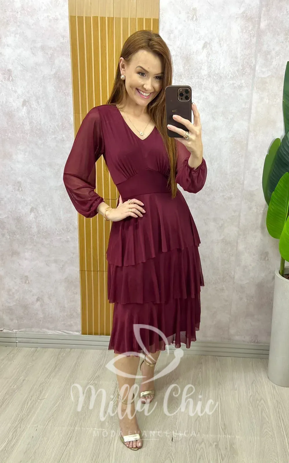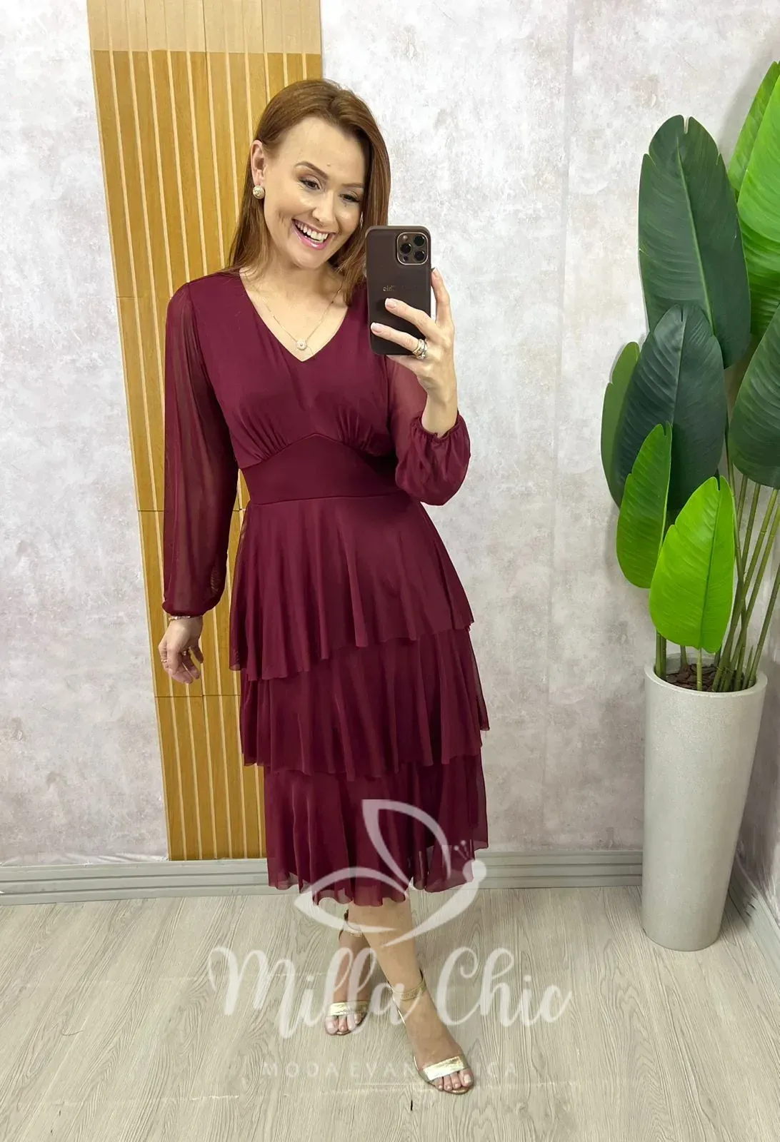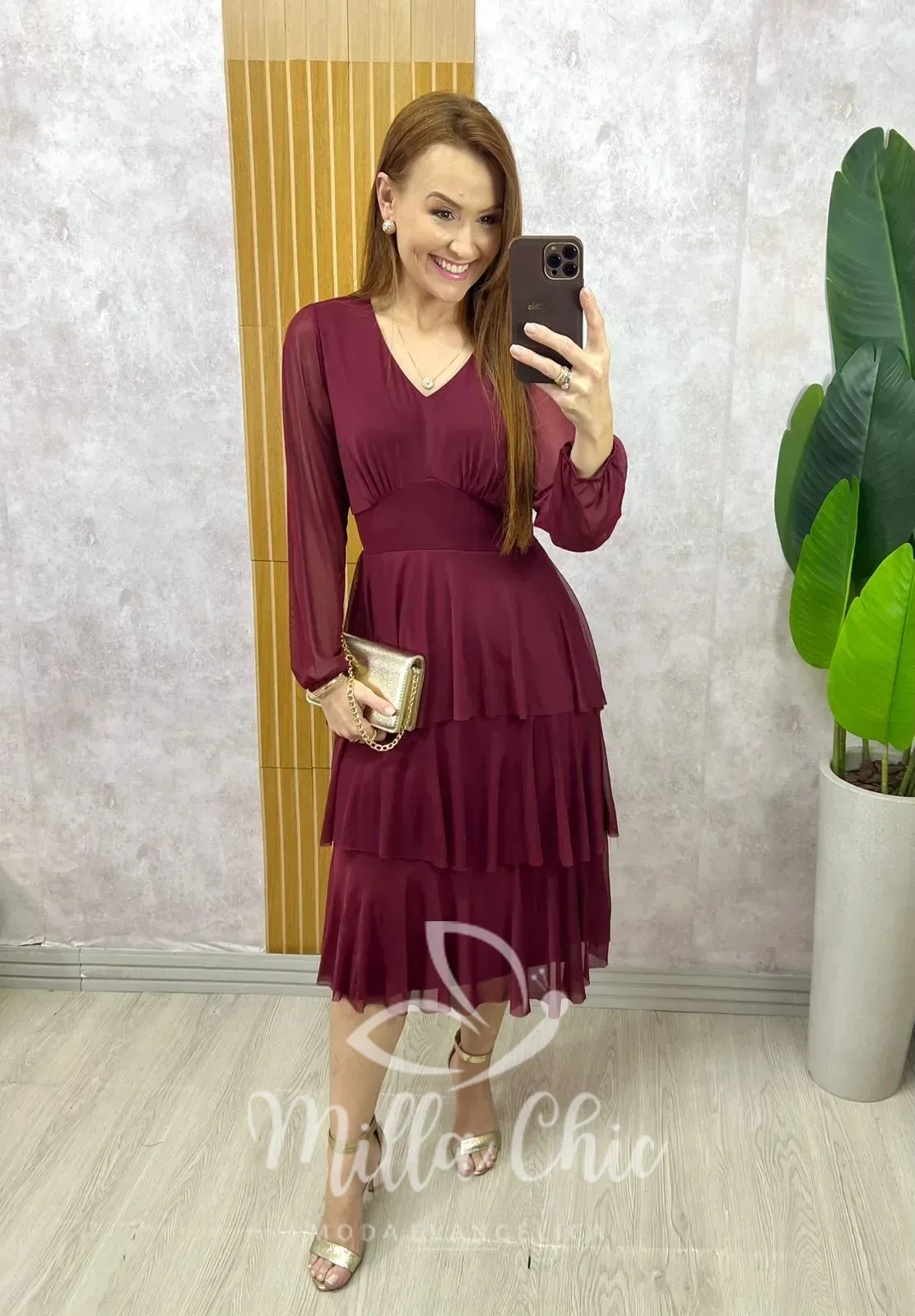 Todo forrado, garante segurança e sofisticação em cada detalhe. Seu design com camadas traz movimento e um toque romântico, enquanto a modelagem valoriza a silhueta com charme e feminilidade.