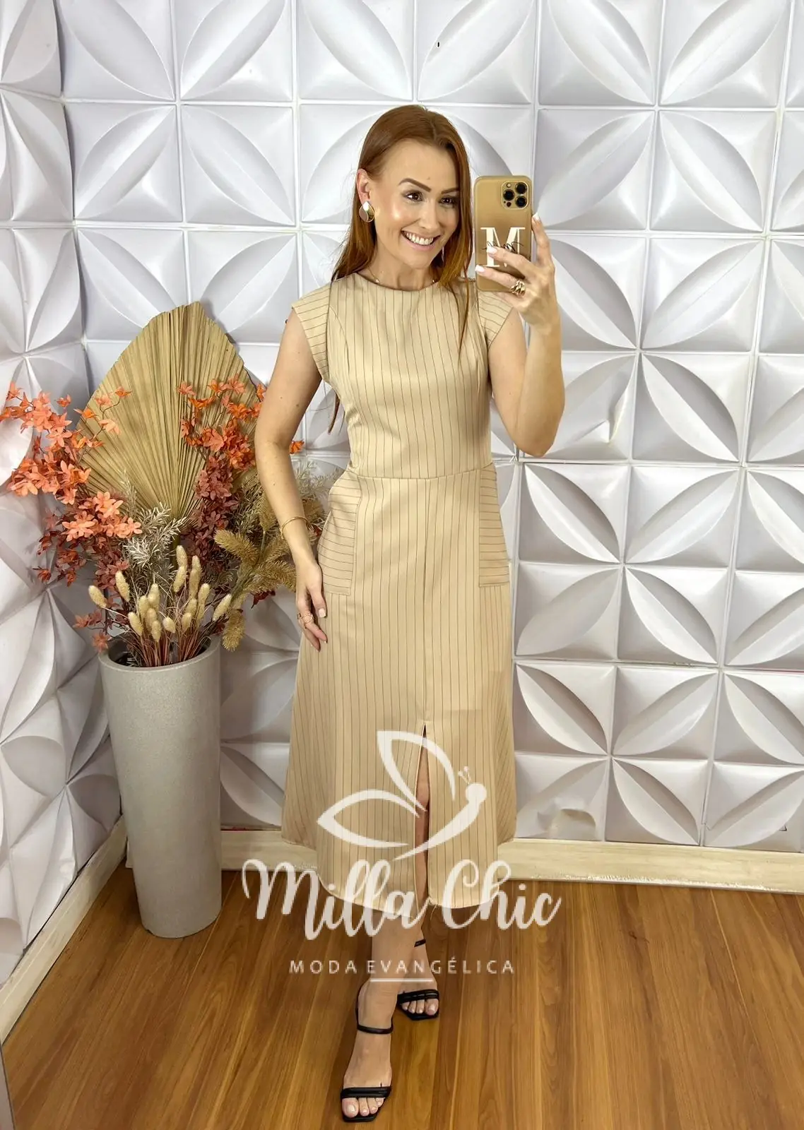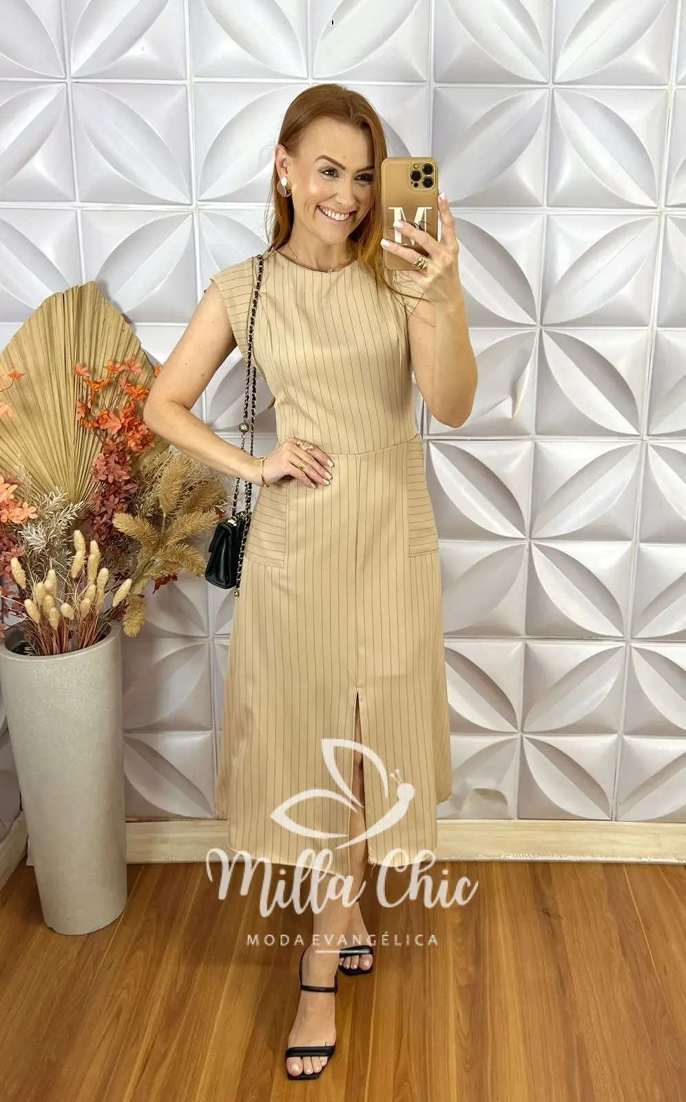 O vestido Charlene é o clássico vestido alfaiataria risca de giz que nunca cai de moda . É a escolha perfeita para quem busca sofisticação e elegância.