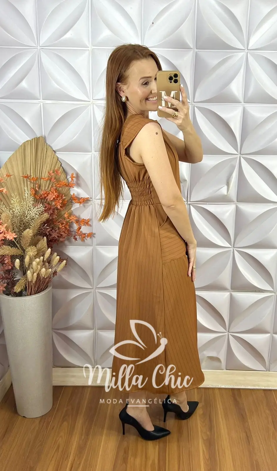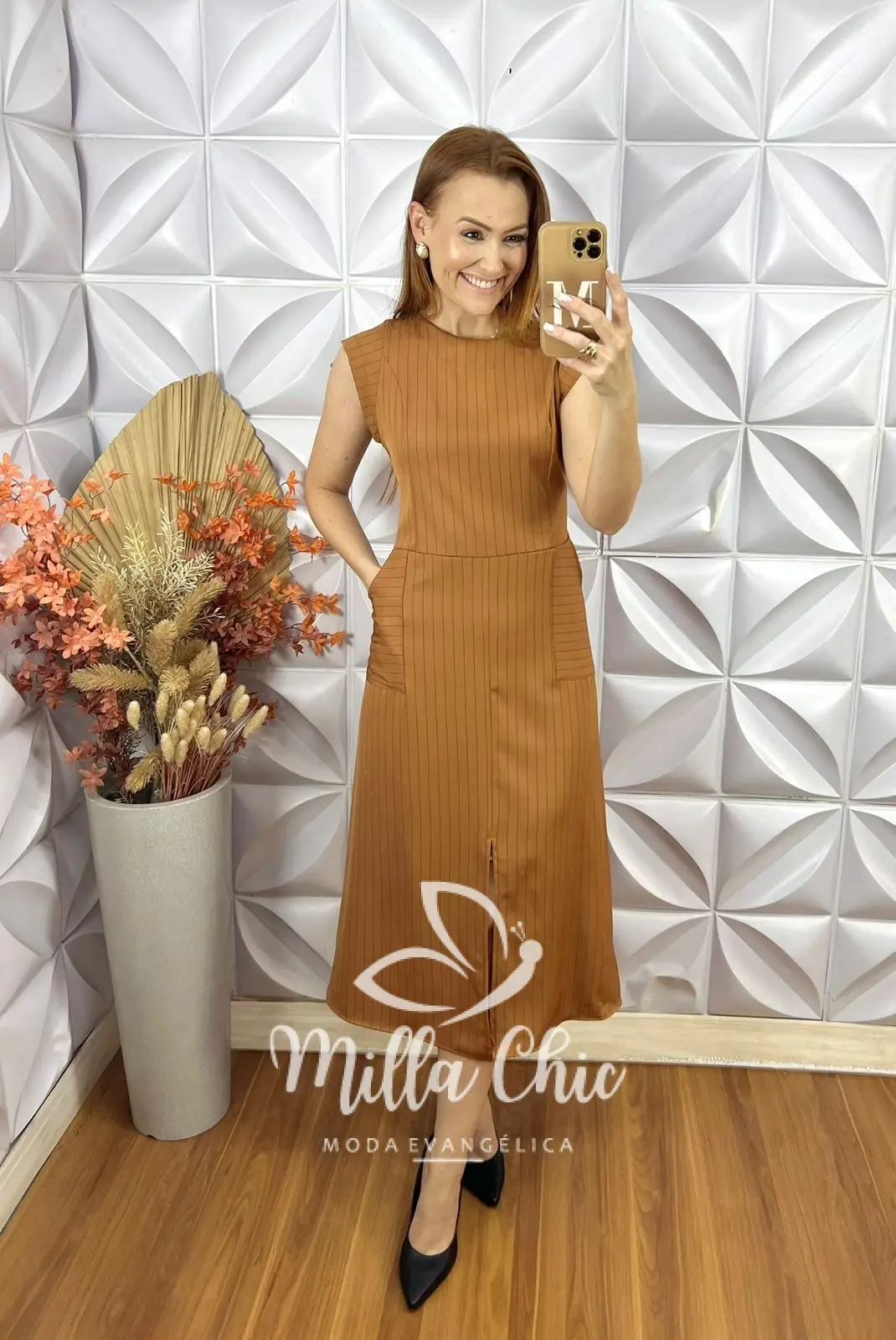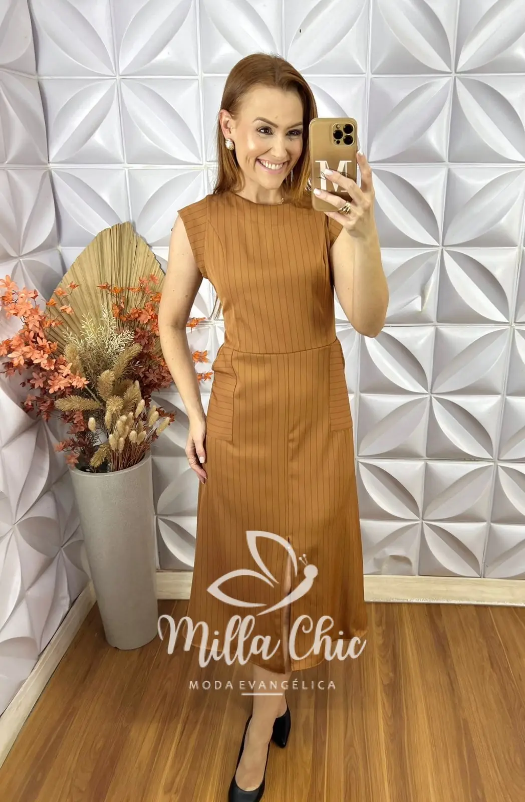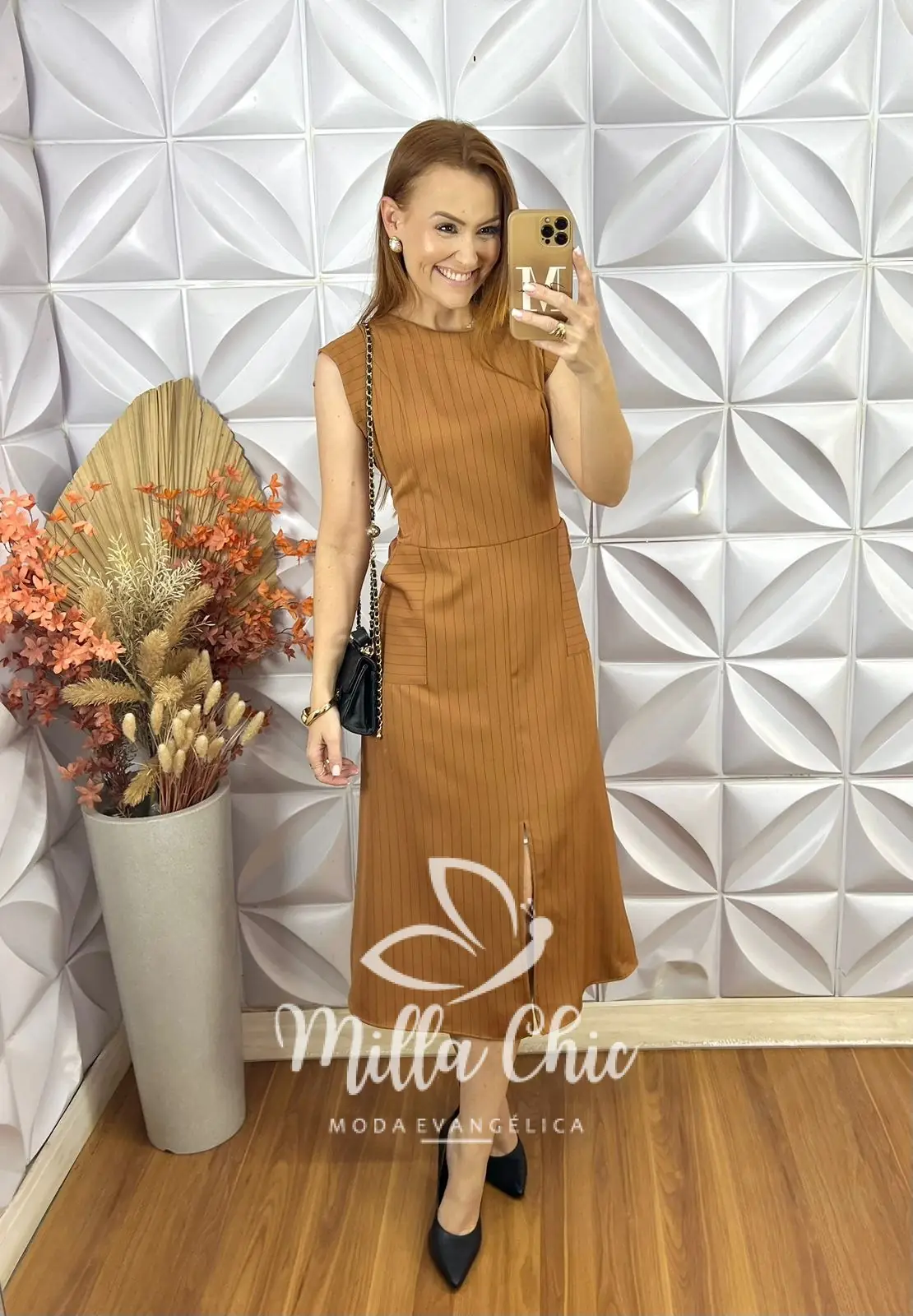 O vestido Charlene é o clássico vestido alfaiataria risca de giz que nunca cai de moda . É a escolha perfeita para quem busca sofisticação e elegância.