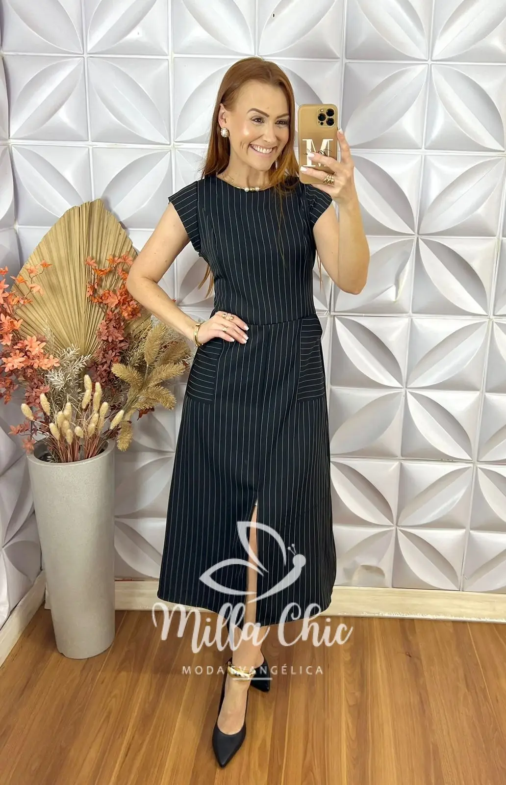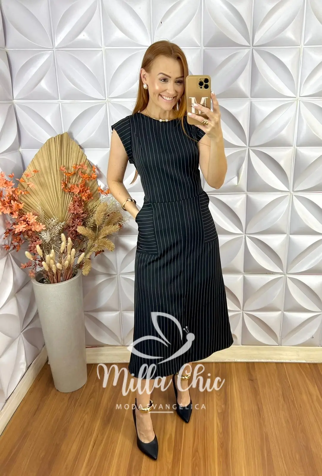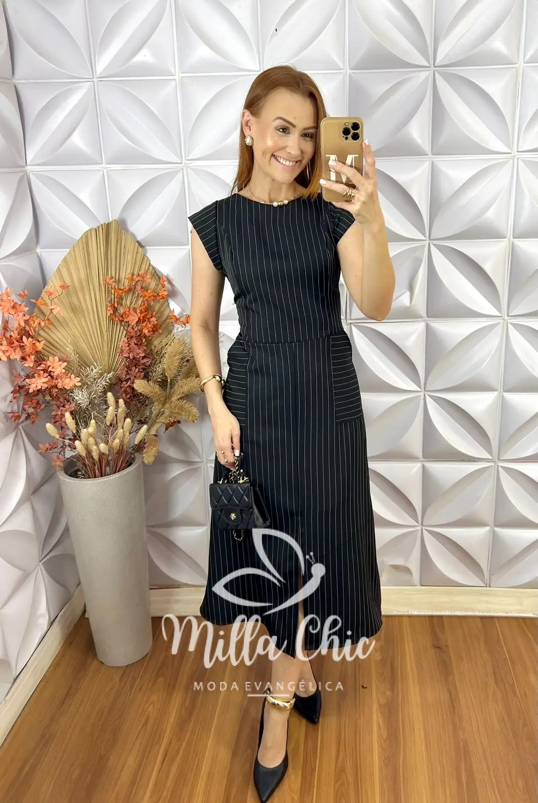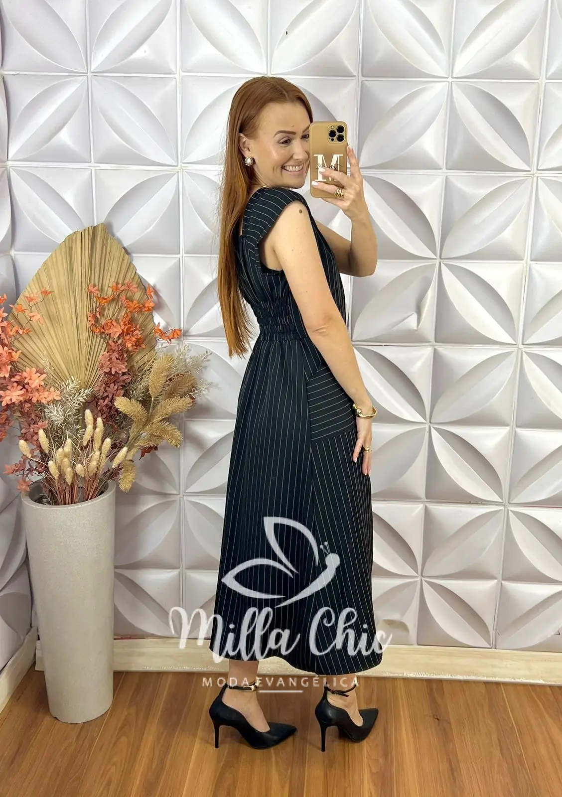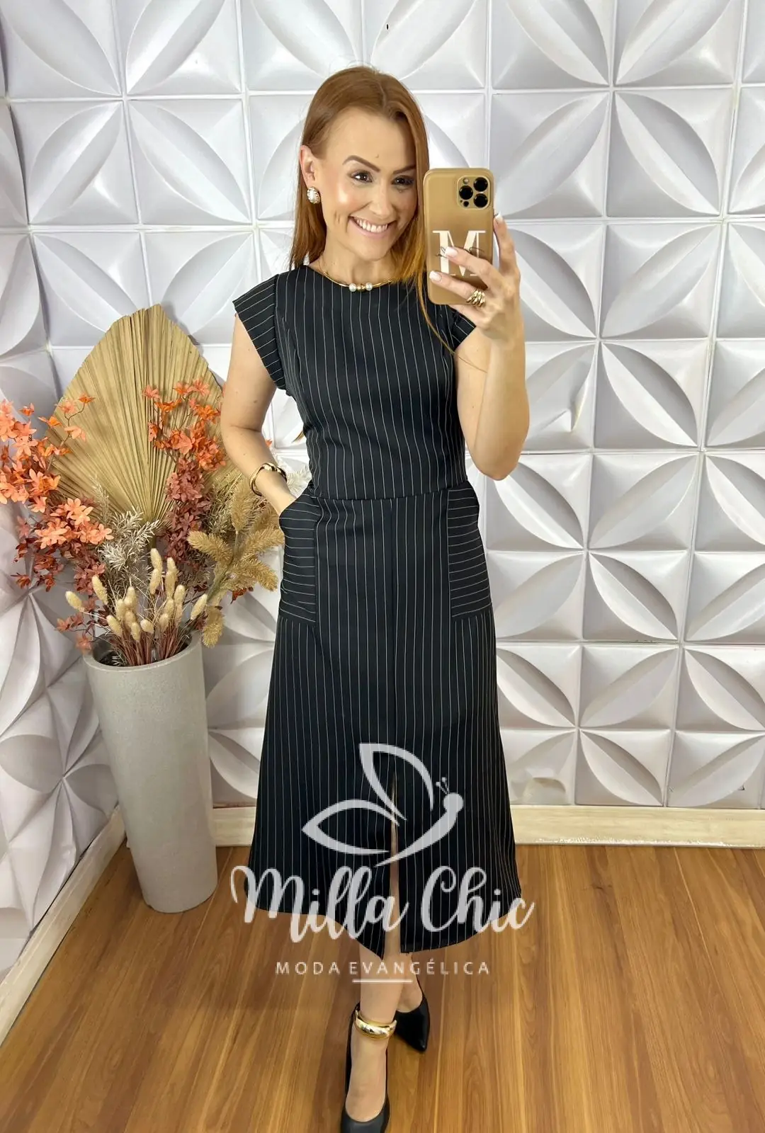 O vestido Charlene é o clássico vestido alfaiataria risca de giz que nunca cai de moda . É a escolha perfeita para quem busca sofisticação e elegância.