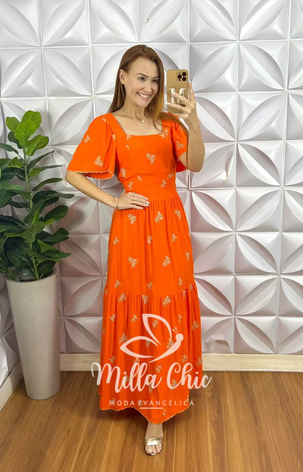 Vestido Charlotte Bordado - Laranja - Milla Chic