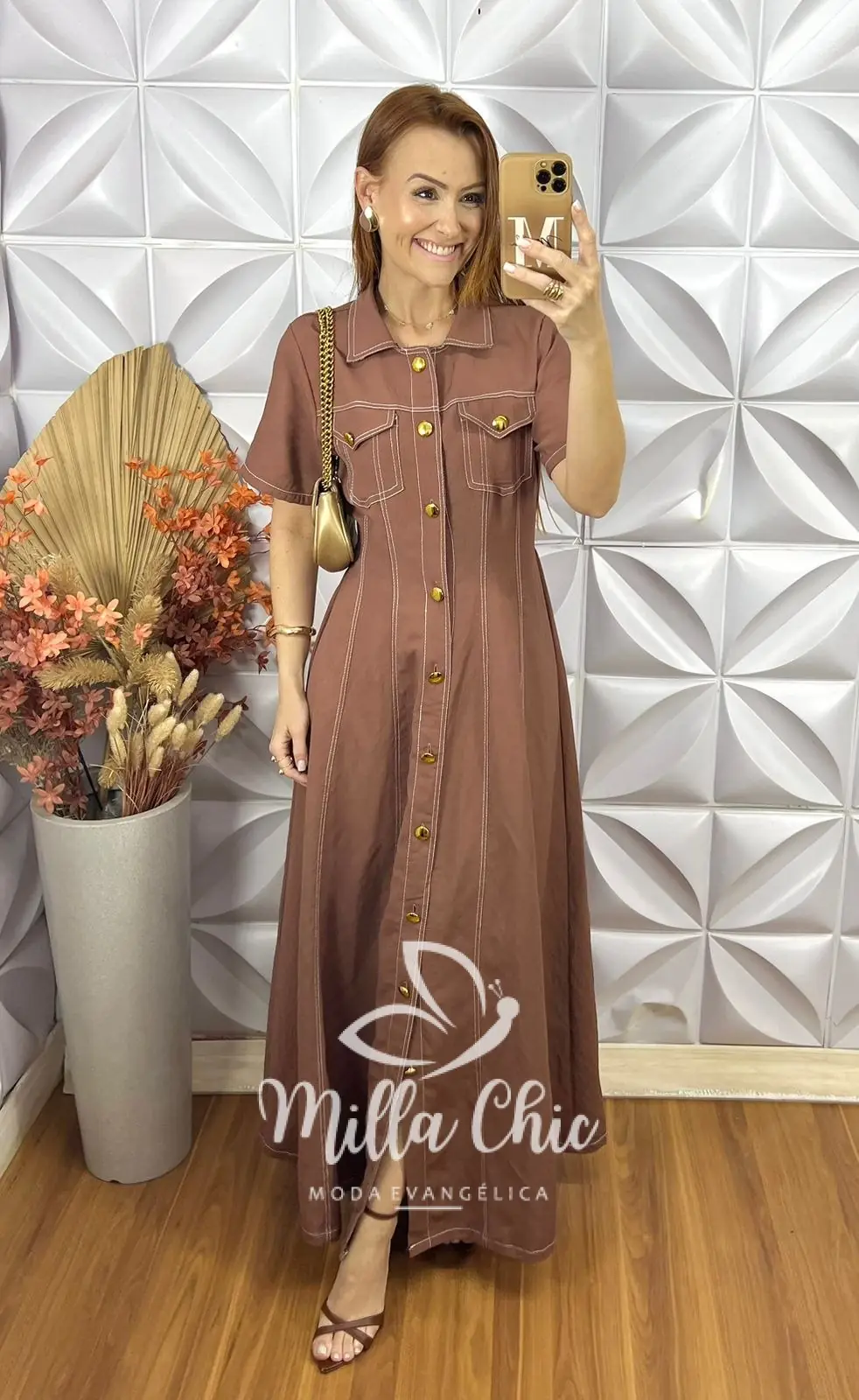 Botões funcionais e todos dourados para dar aquele toque de elegância .