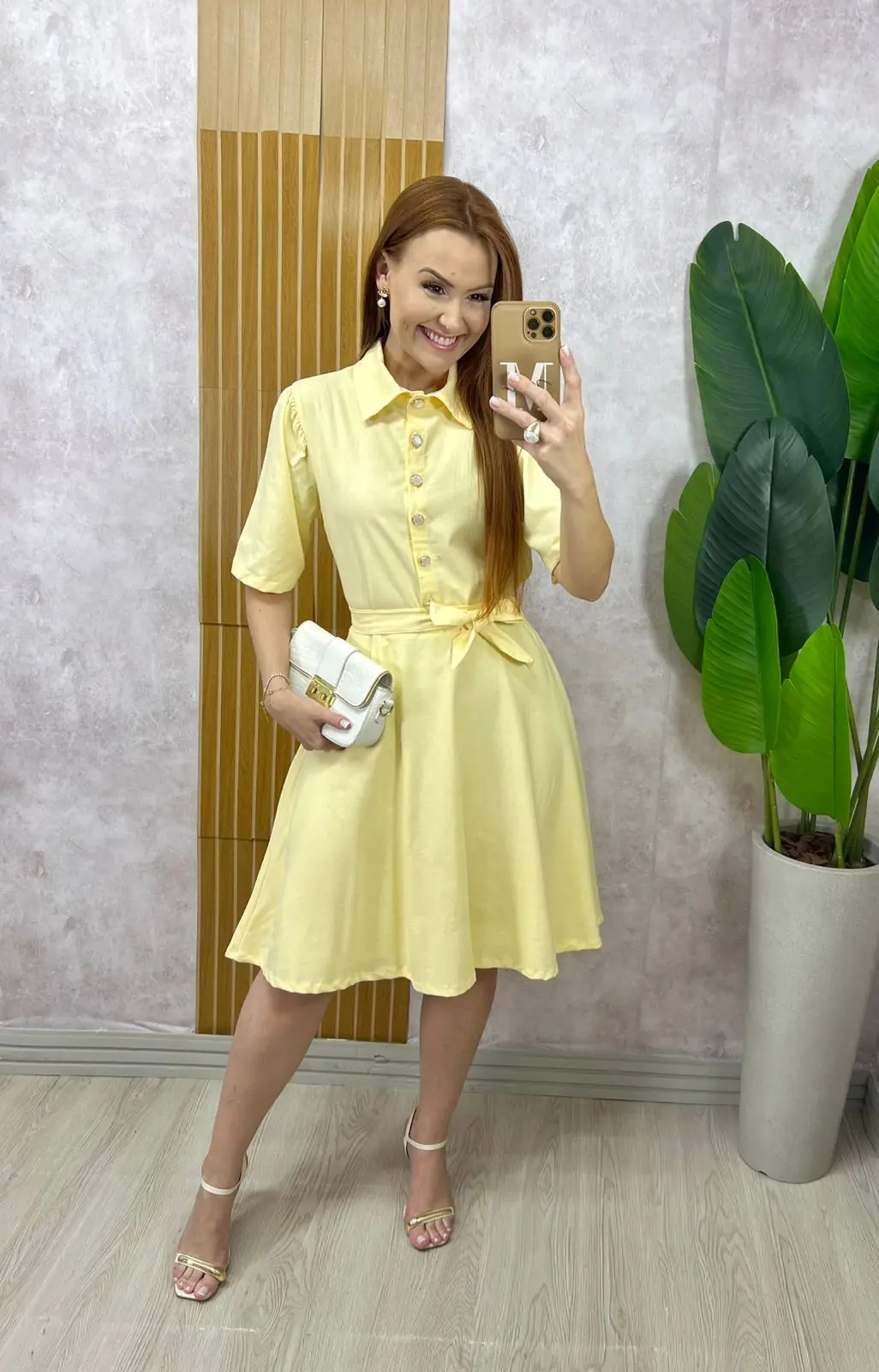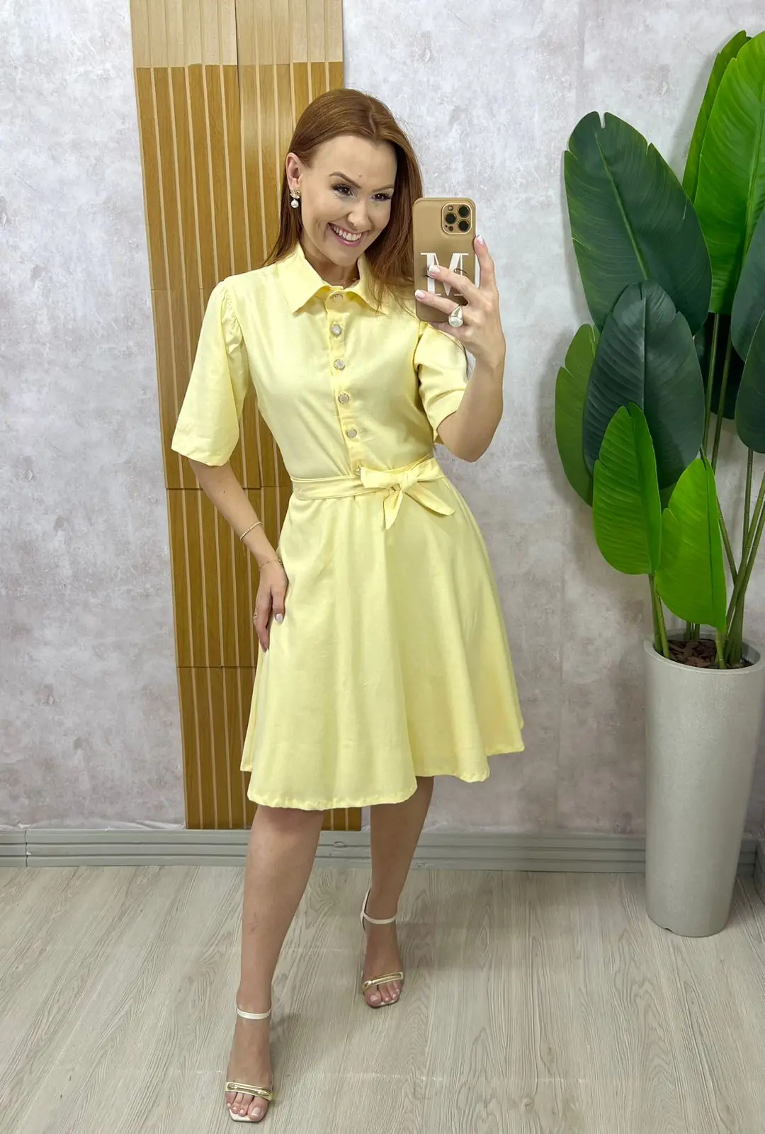 Vestido Chemise Verônica Em Linho – Amarelo Manteiga