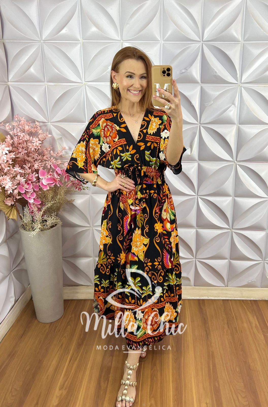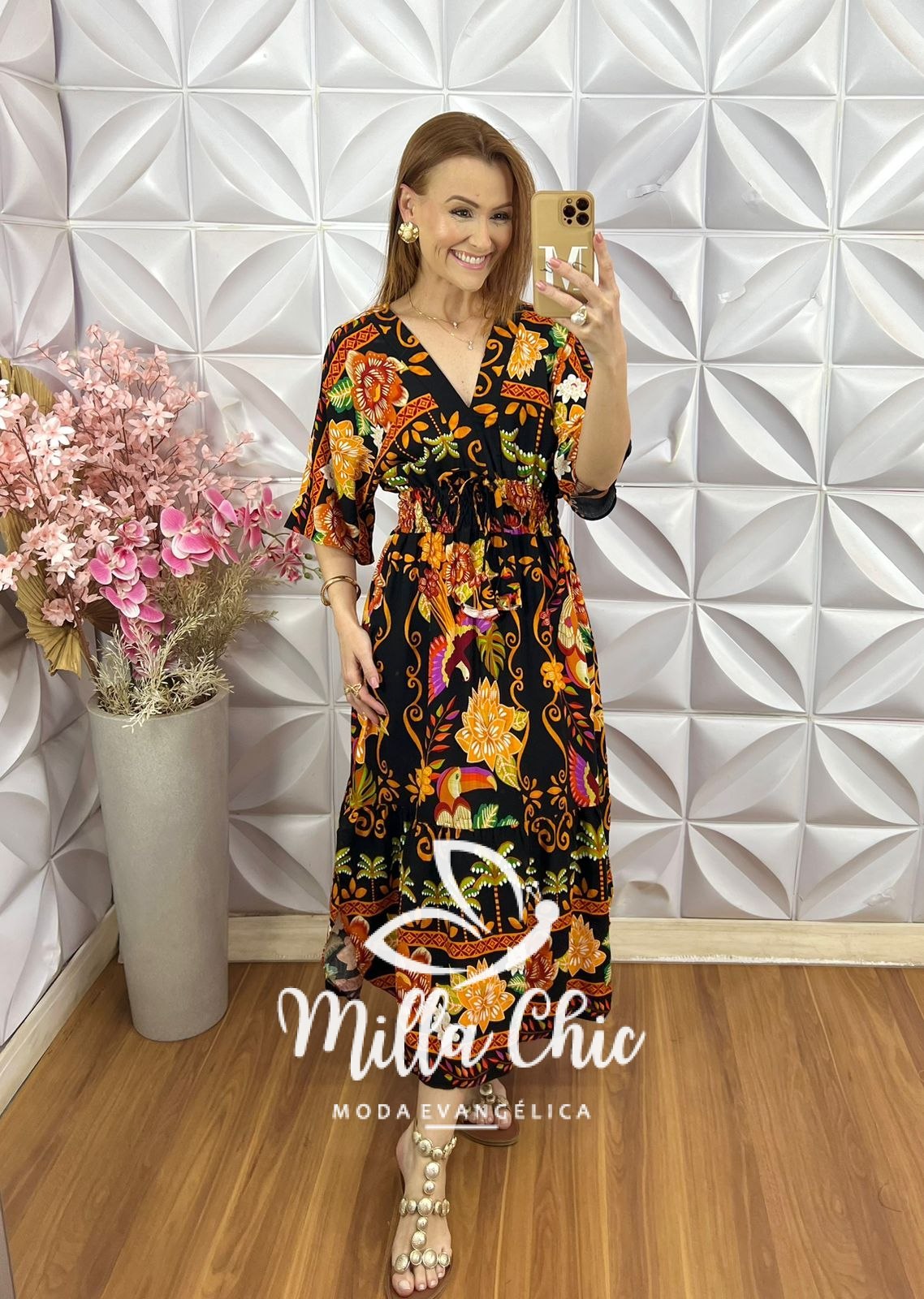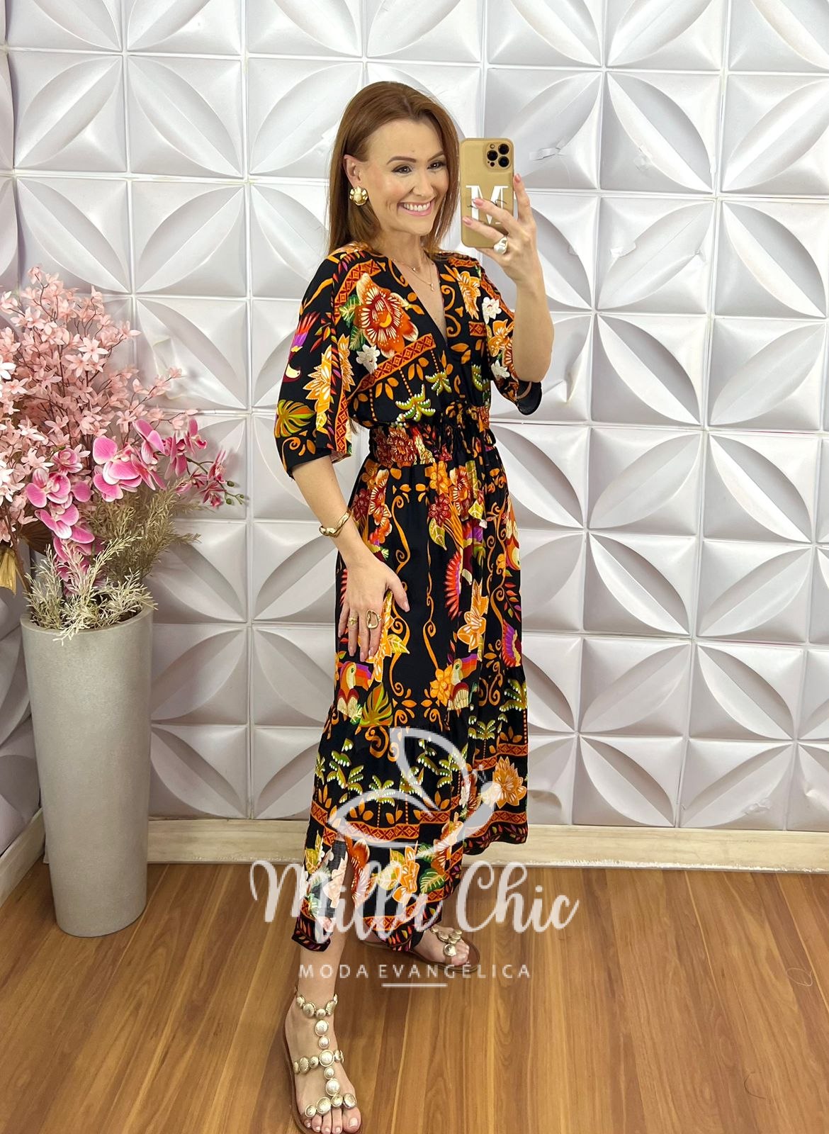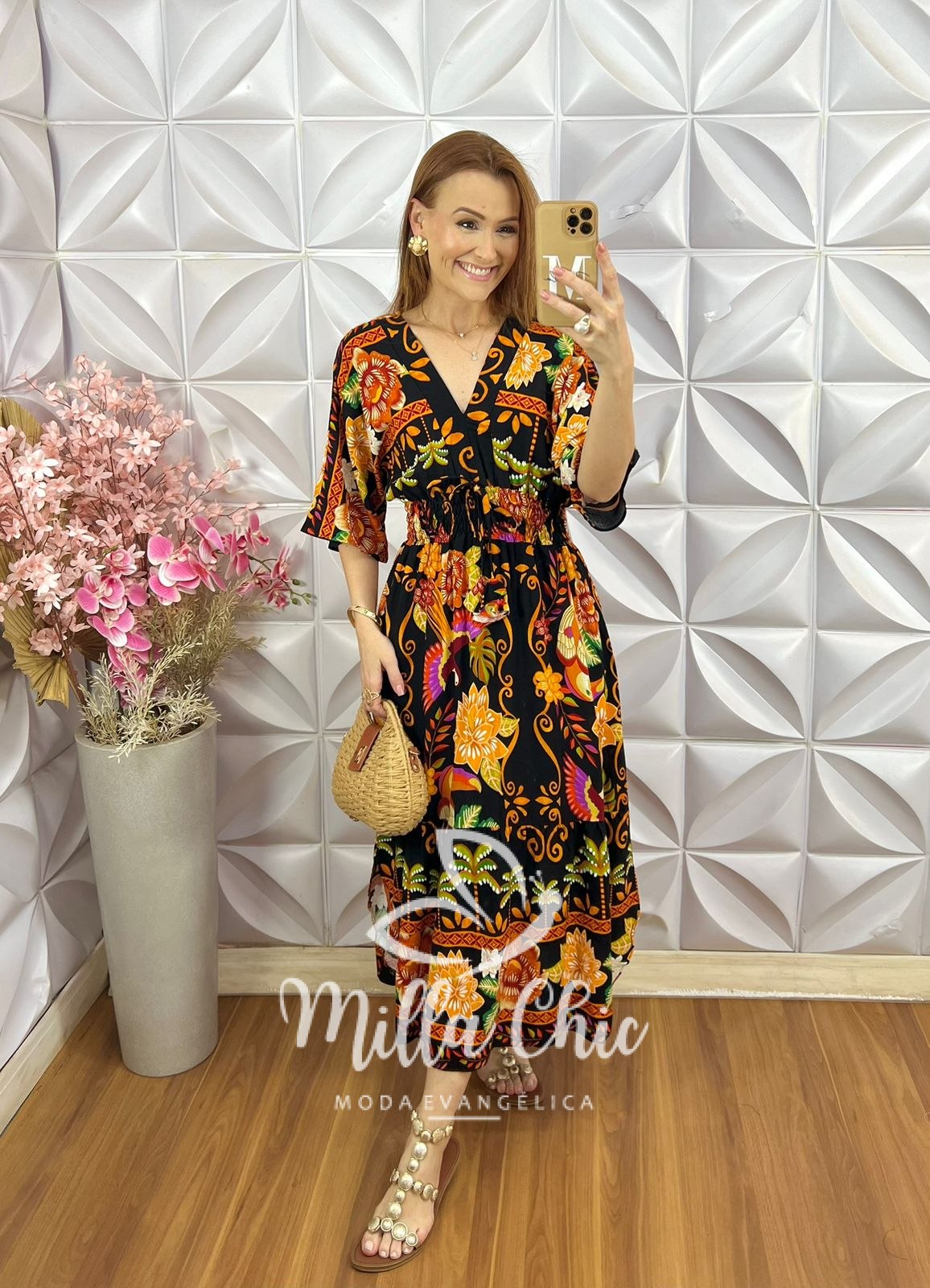 Vestido Chiara Estampa Verão - Laranja - Milla Chic