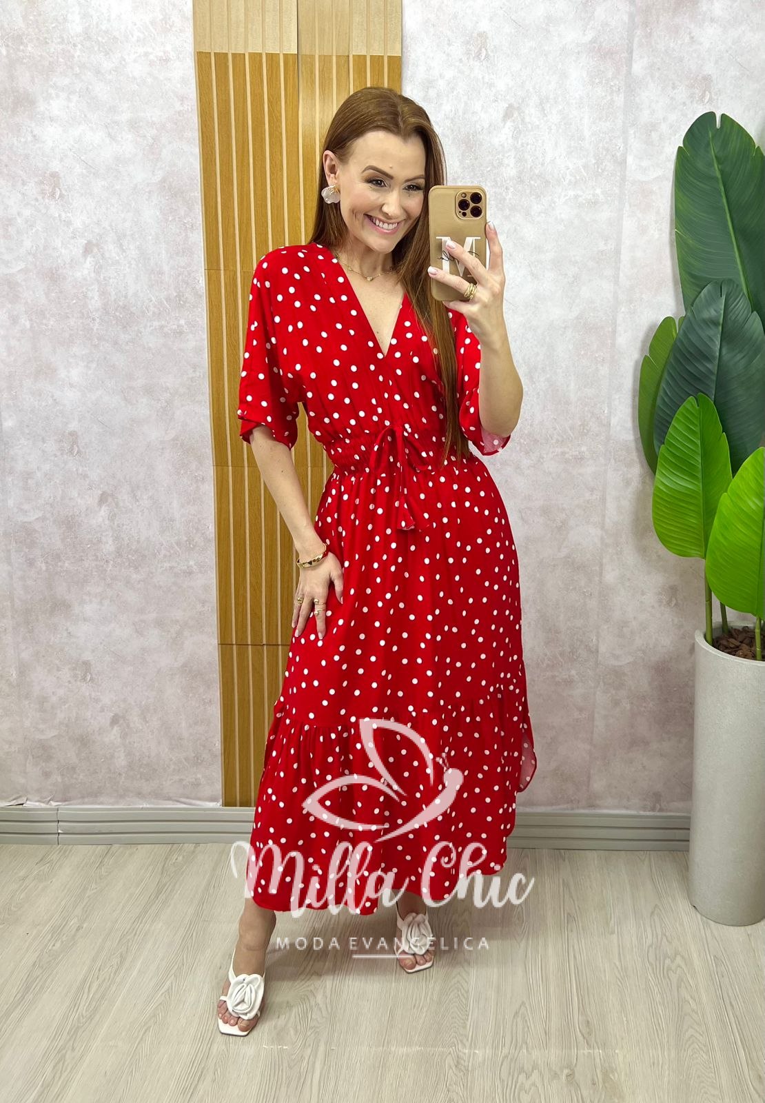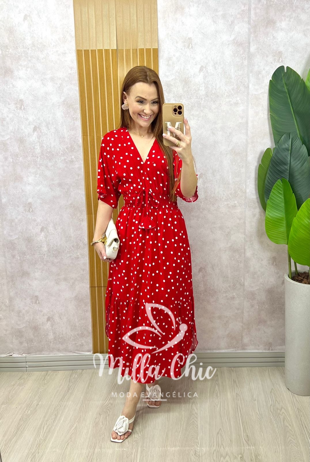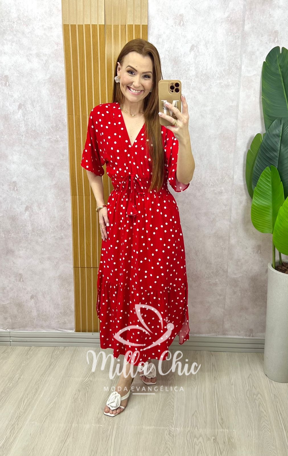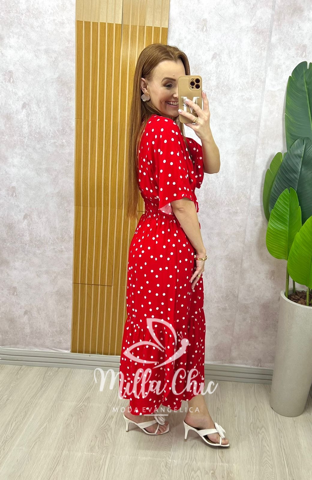 Vestido Chiara Longo em Poá -  vermelho - Milla Chic