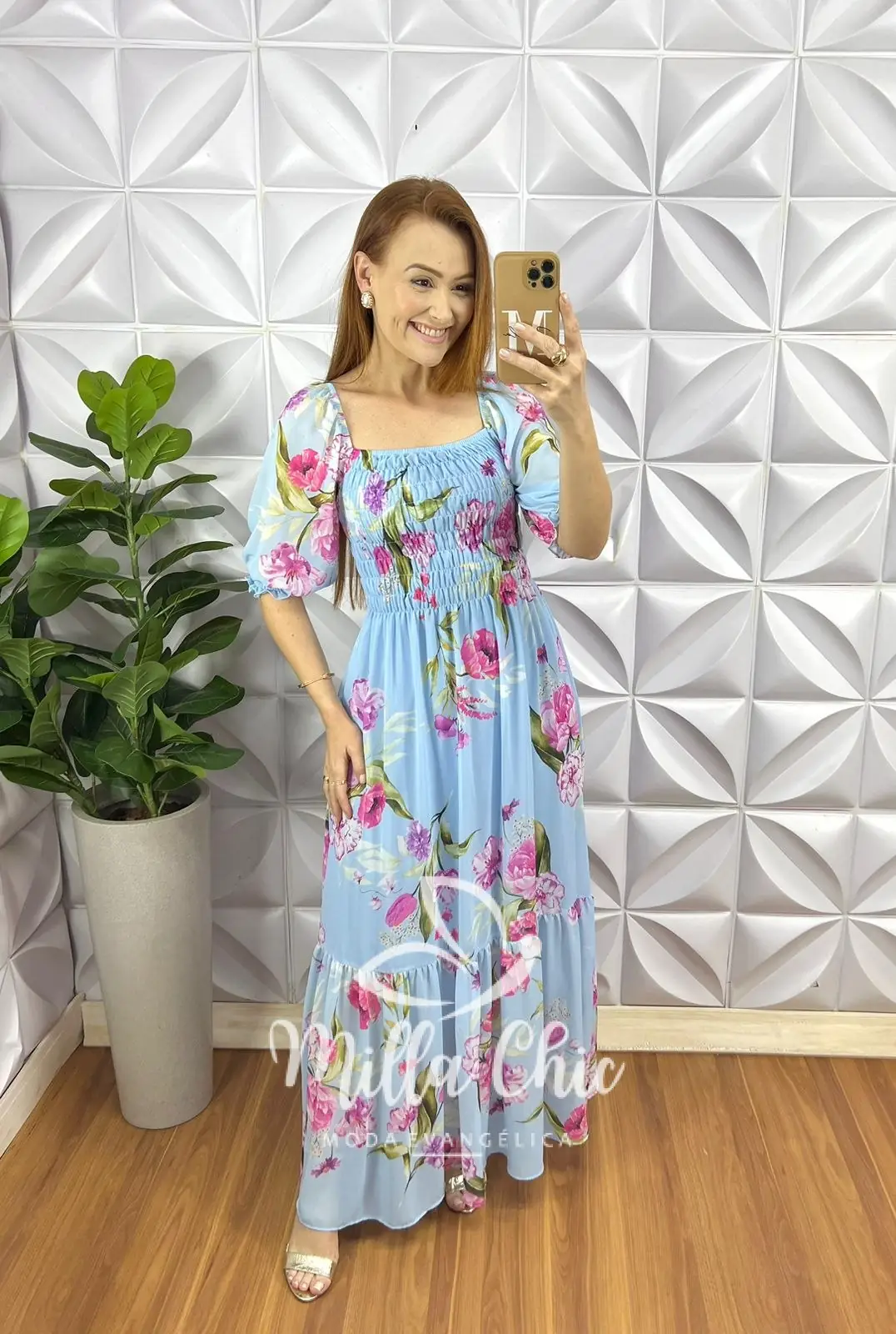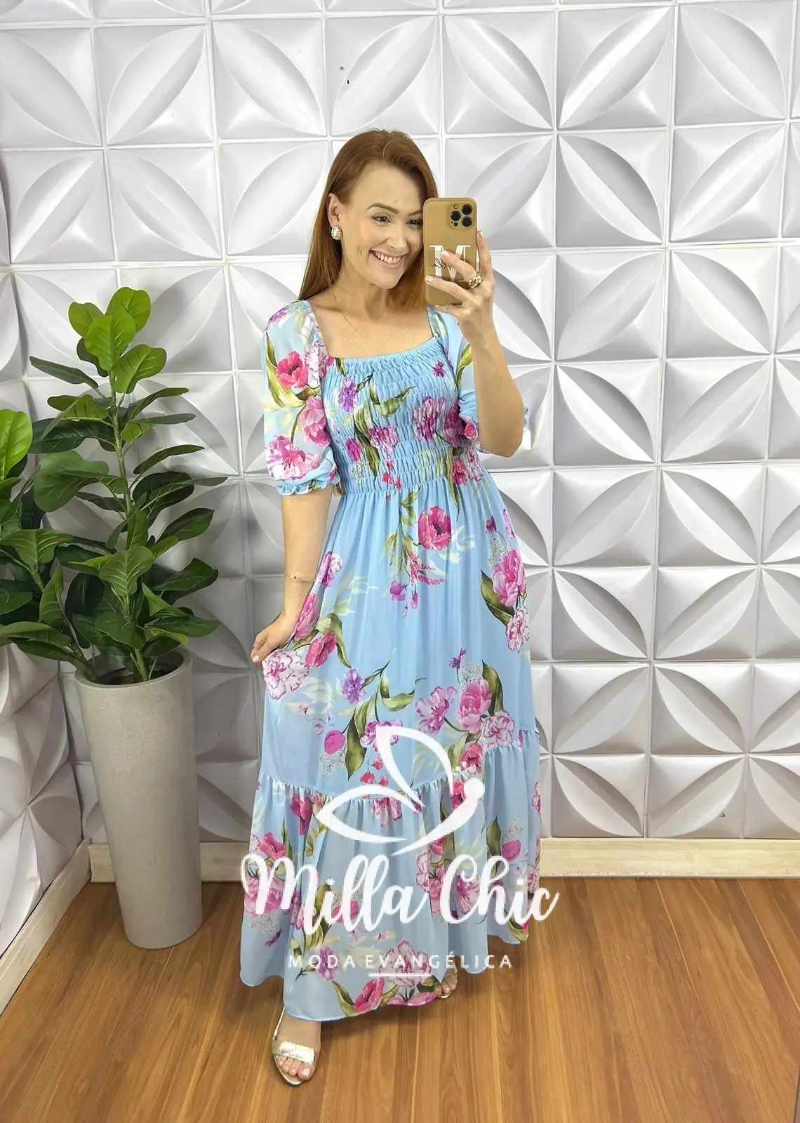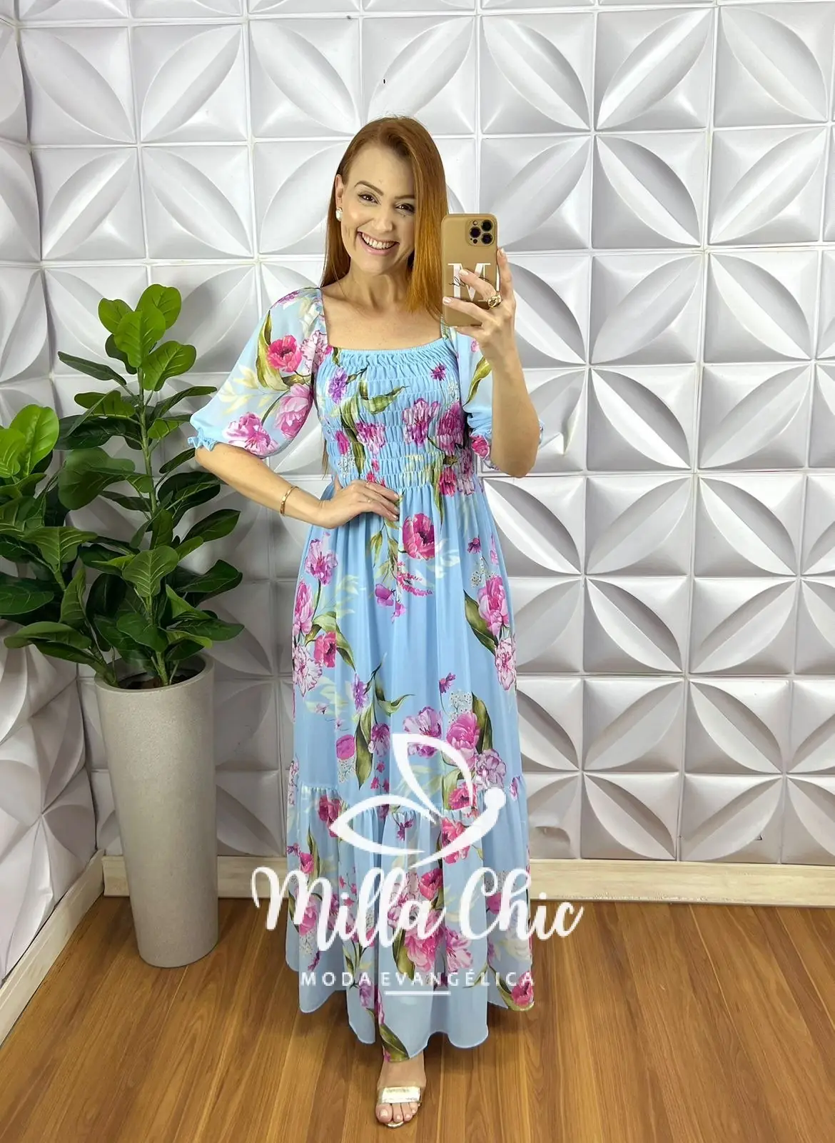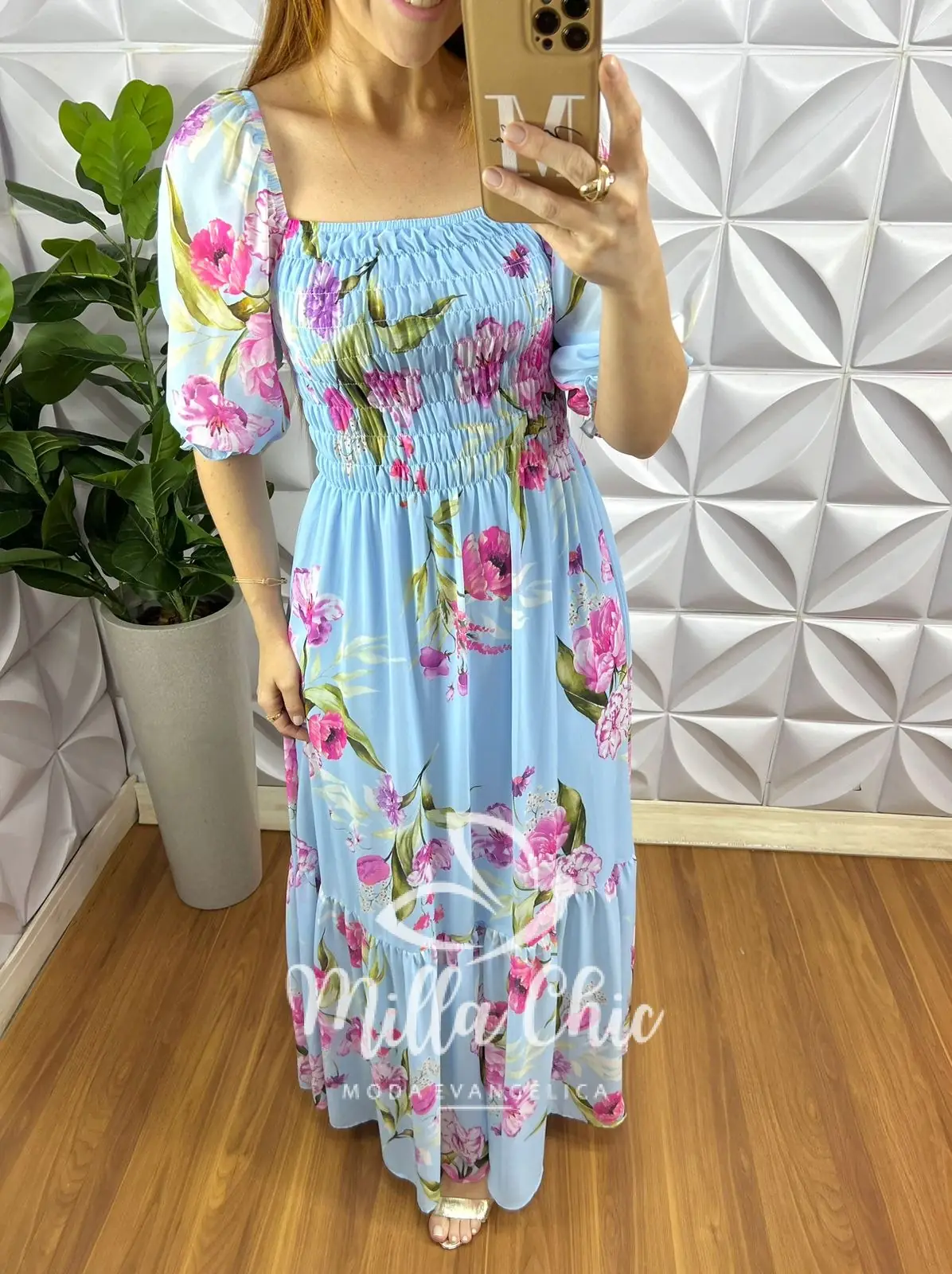 Vestido Todo confeccionado no Chiffon um tecido maravilhoso! Com Modelagem Incrível Vestindo super bem! Com Estampa floral que esta um charme!