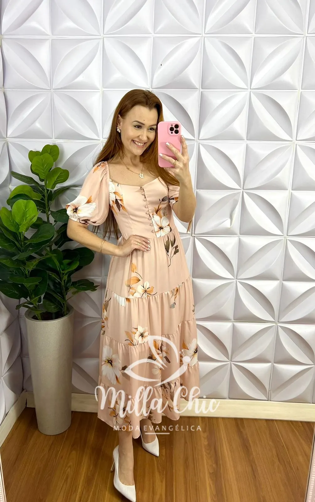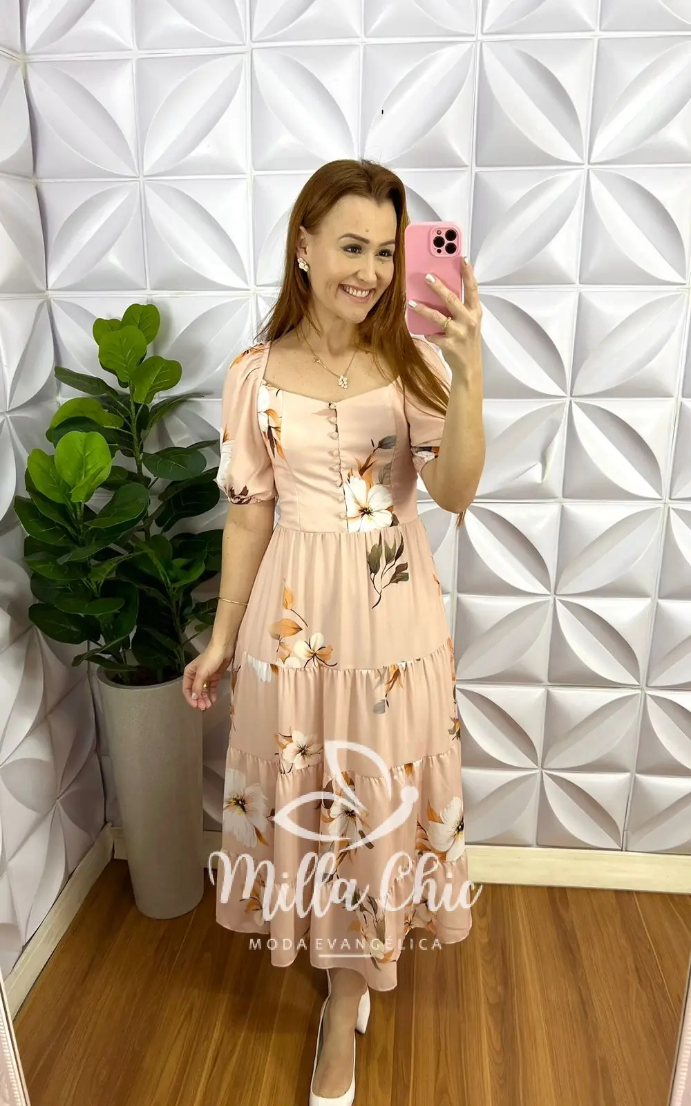 Vestido Chiffon Floral Mídi Com Marias Liana – Rose