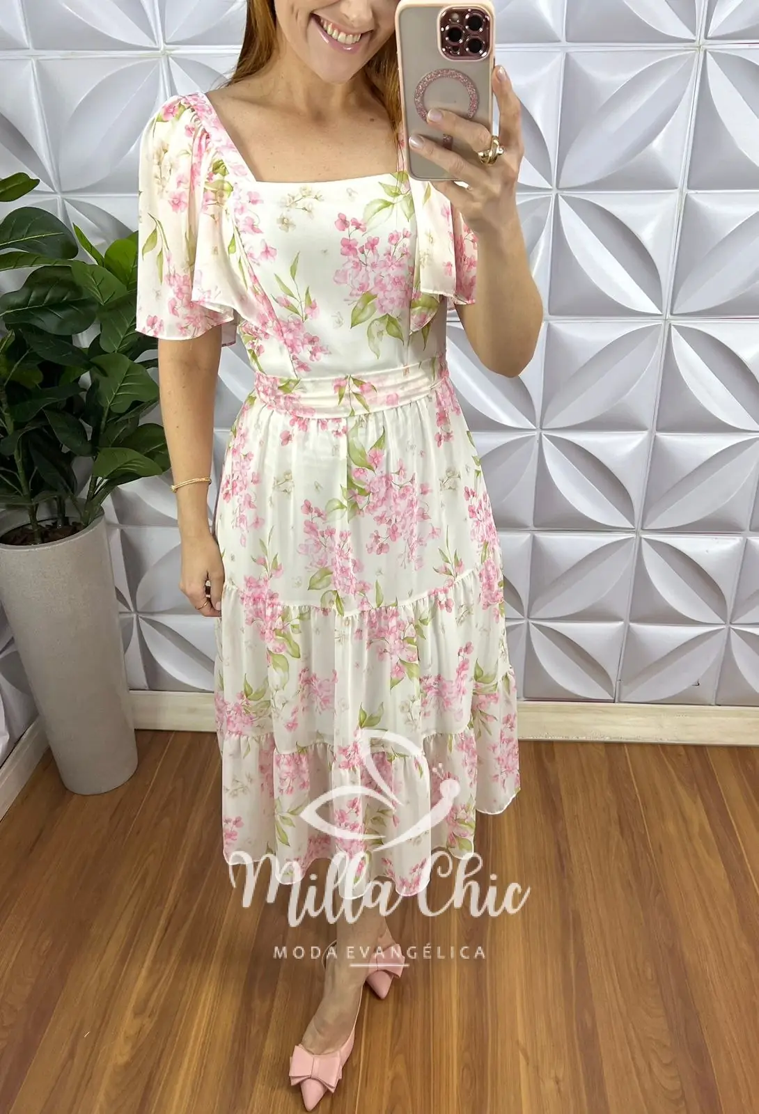 Tecido: Chiffon – Composição: 100% Poliéster.