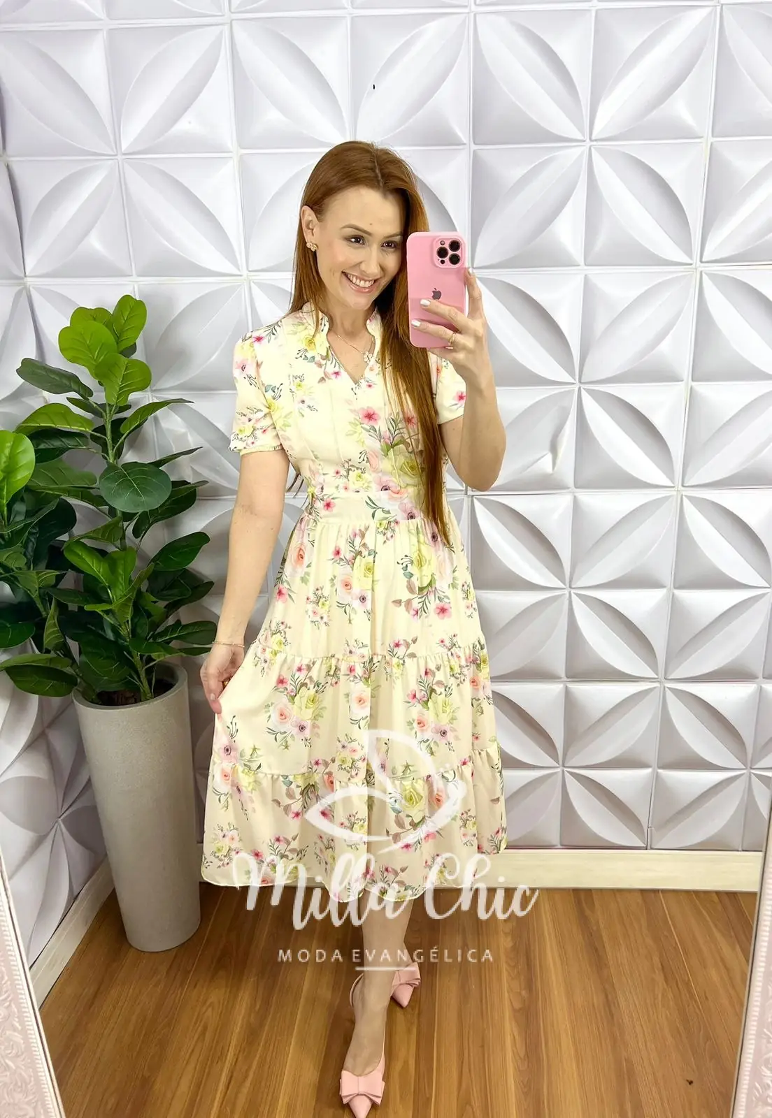 Vestido Chiffon Mídi Estampado Leticia – Amarelo