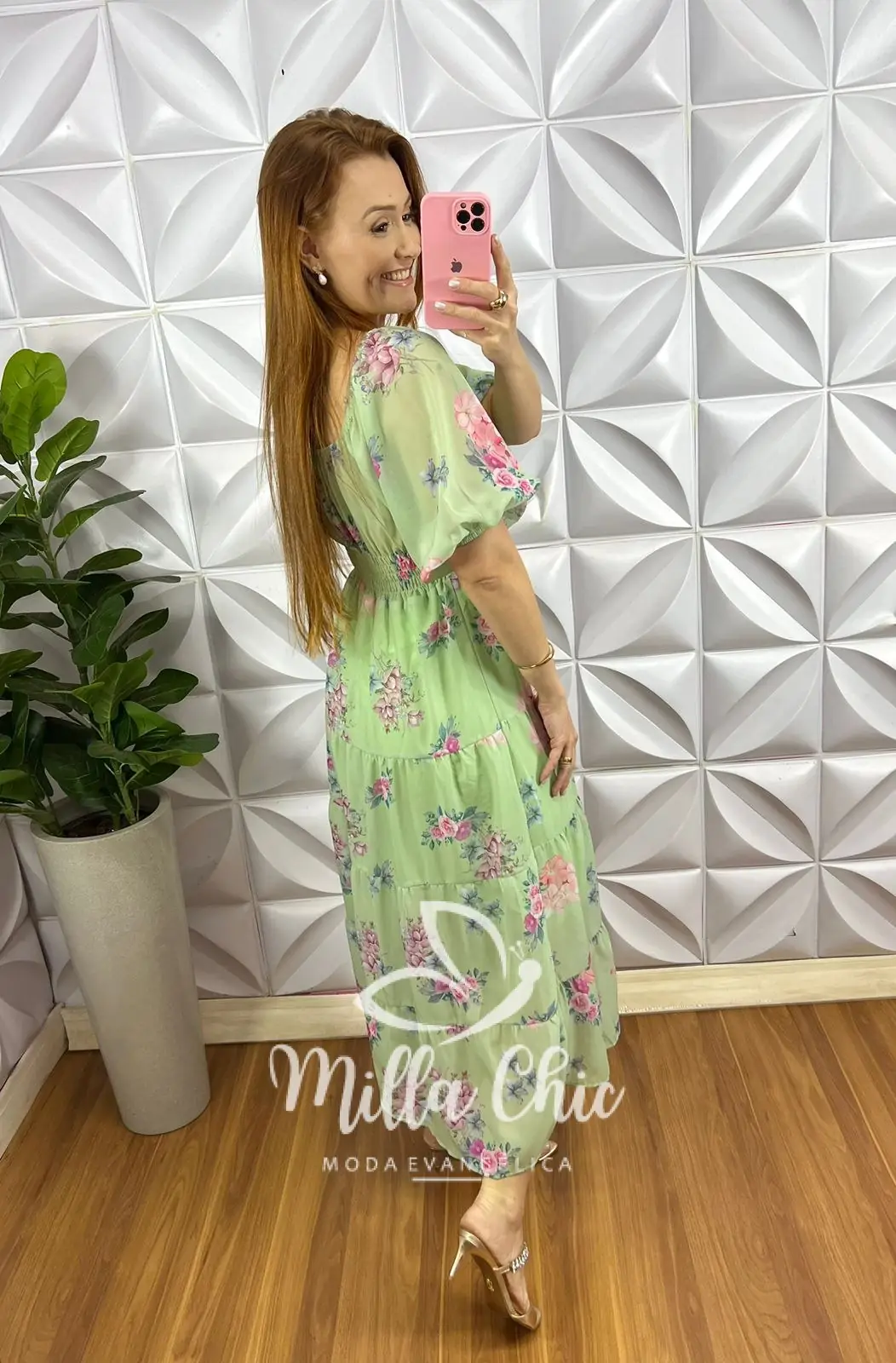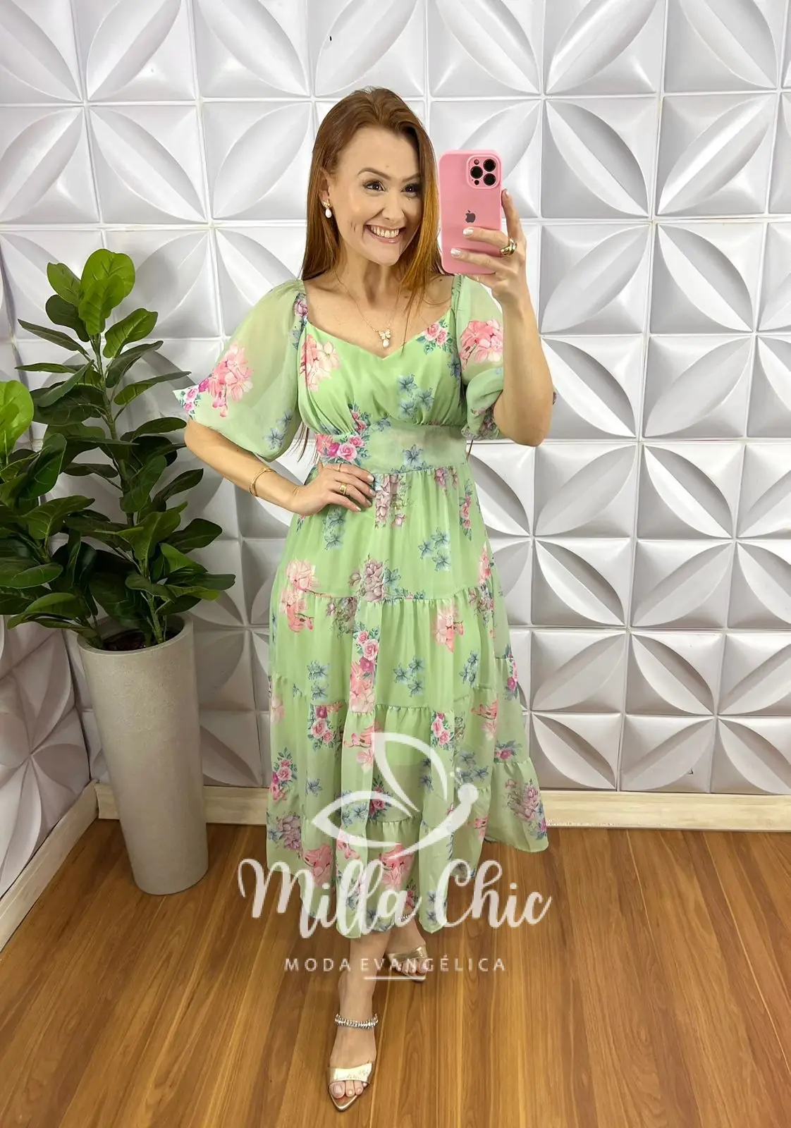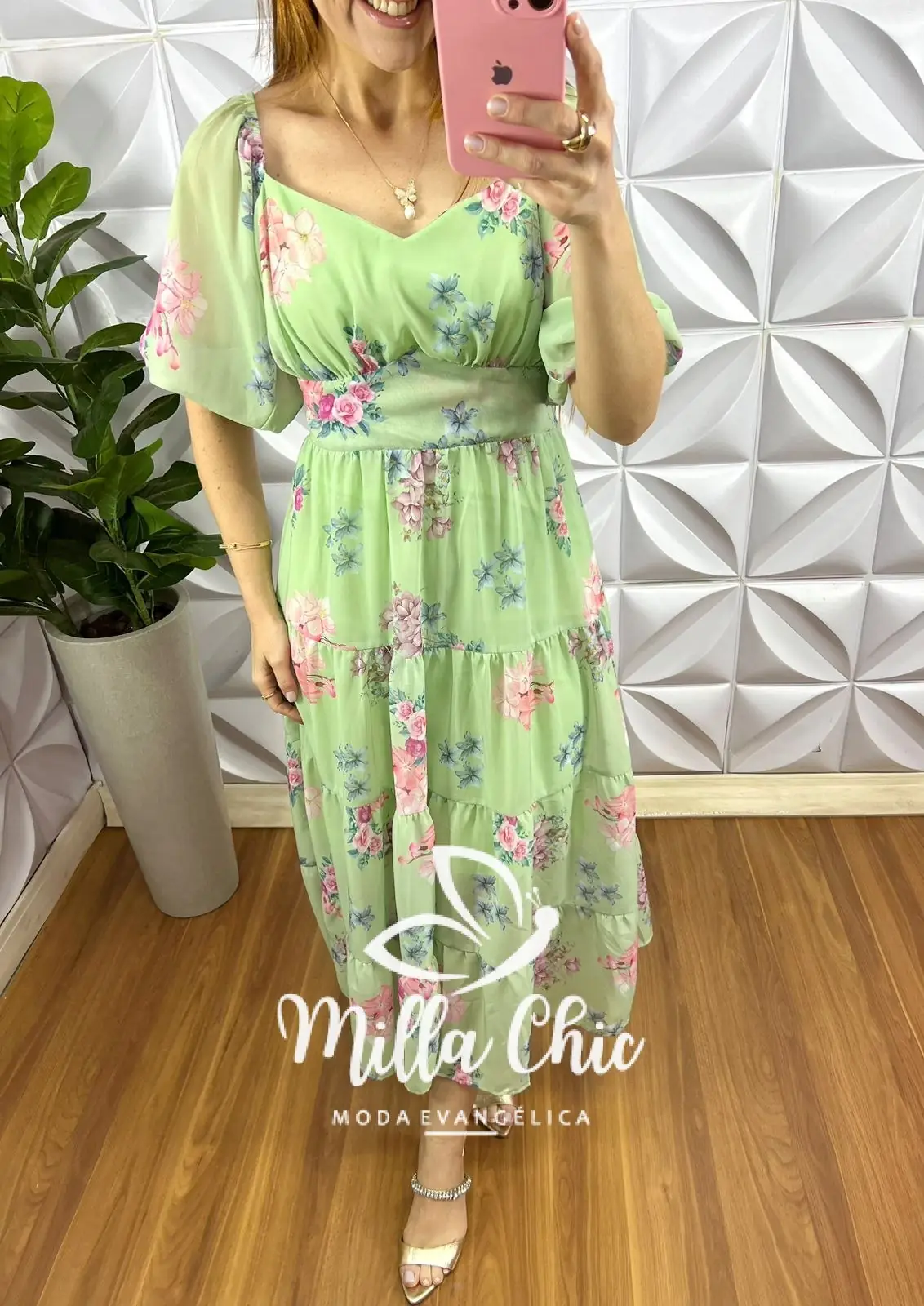Vestido todo confeccionado no Chiffon um tecido maravilhoso! Com estampa floral que esta um charme!