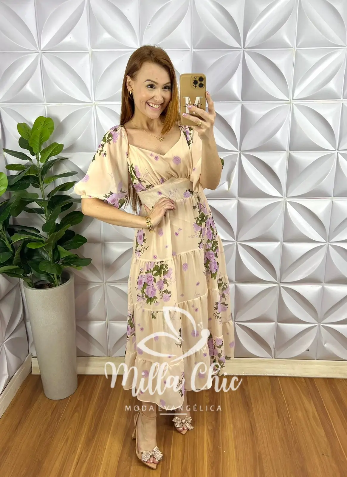 Vestido todo confeccionado no Chiffon um tecido maravilhoso! Com estampa floral que esta um charme!