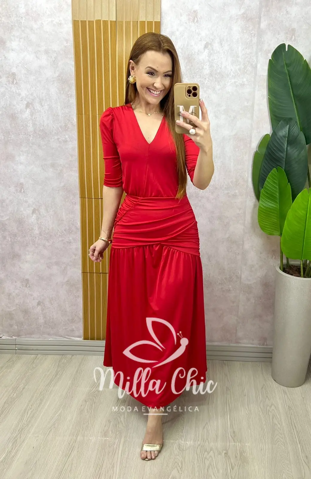 *A modelagem justa no busto e quadril e desce com muita fluidez nas saias . Aquela modelagem que te valoriza .