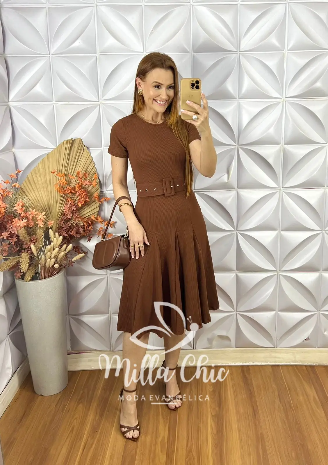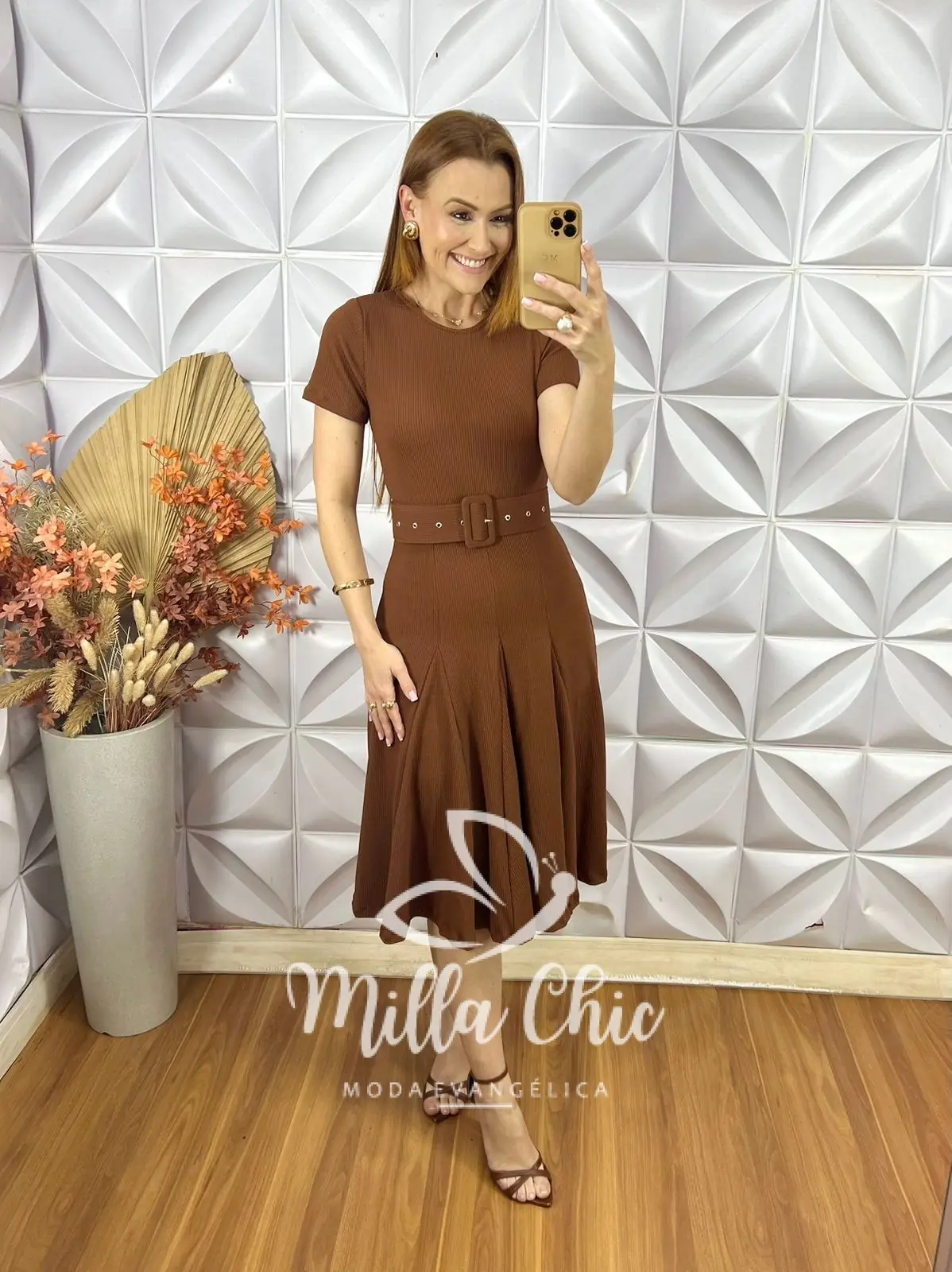 O cinto encapado além de acinturar e dar aquele arremate final traz todo um sofisticação para esse modelo .