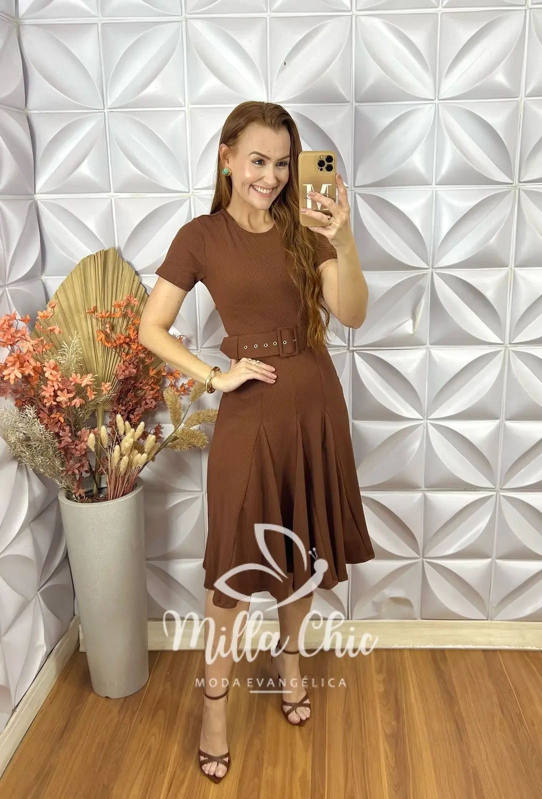 O cinto encapado além de acinturar e dar aquele arremate final traz todo um sofisticação para esse modelo .