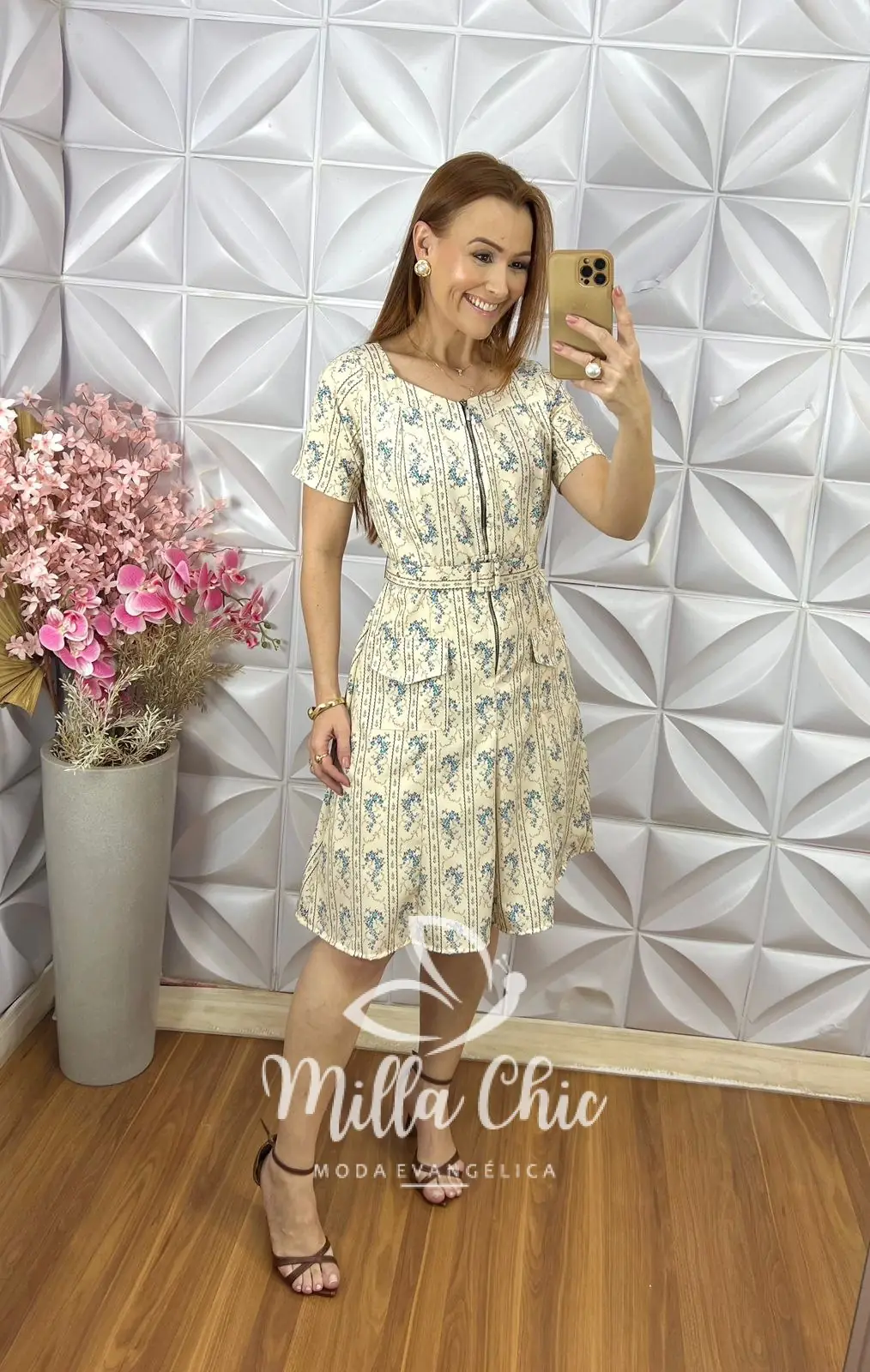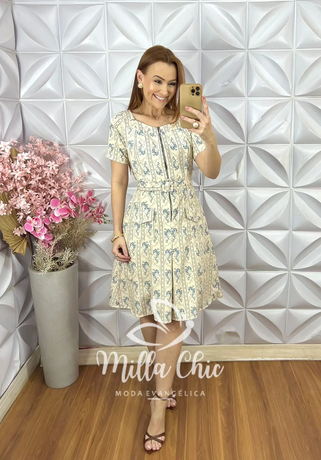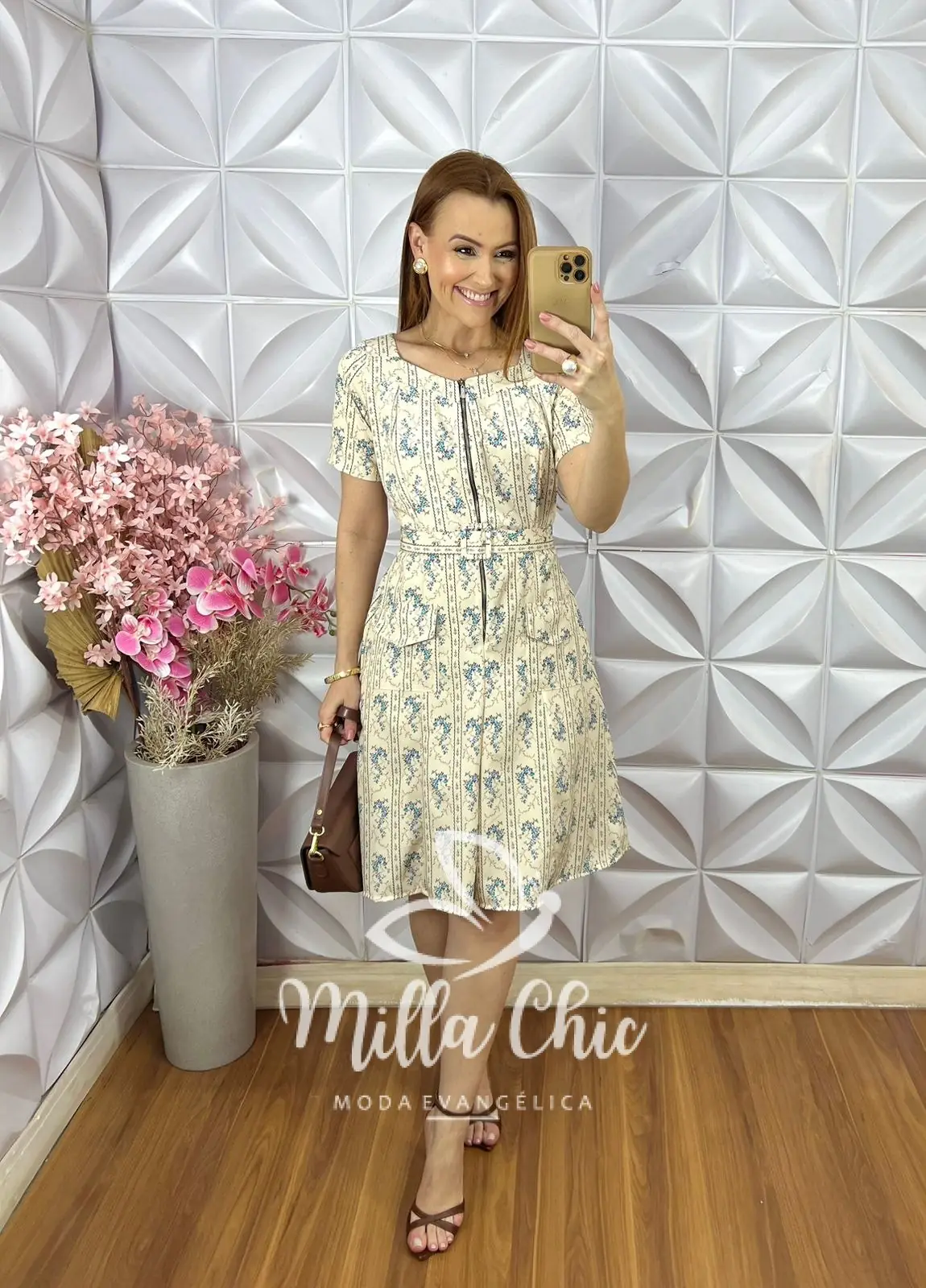Ele fica bem acinturado e acompanha o cinto encapado que dá aquele toque de sofisticação.