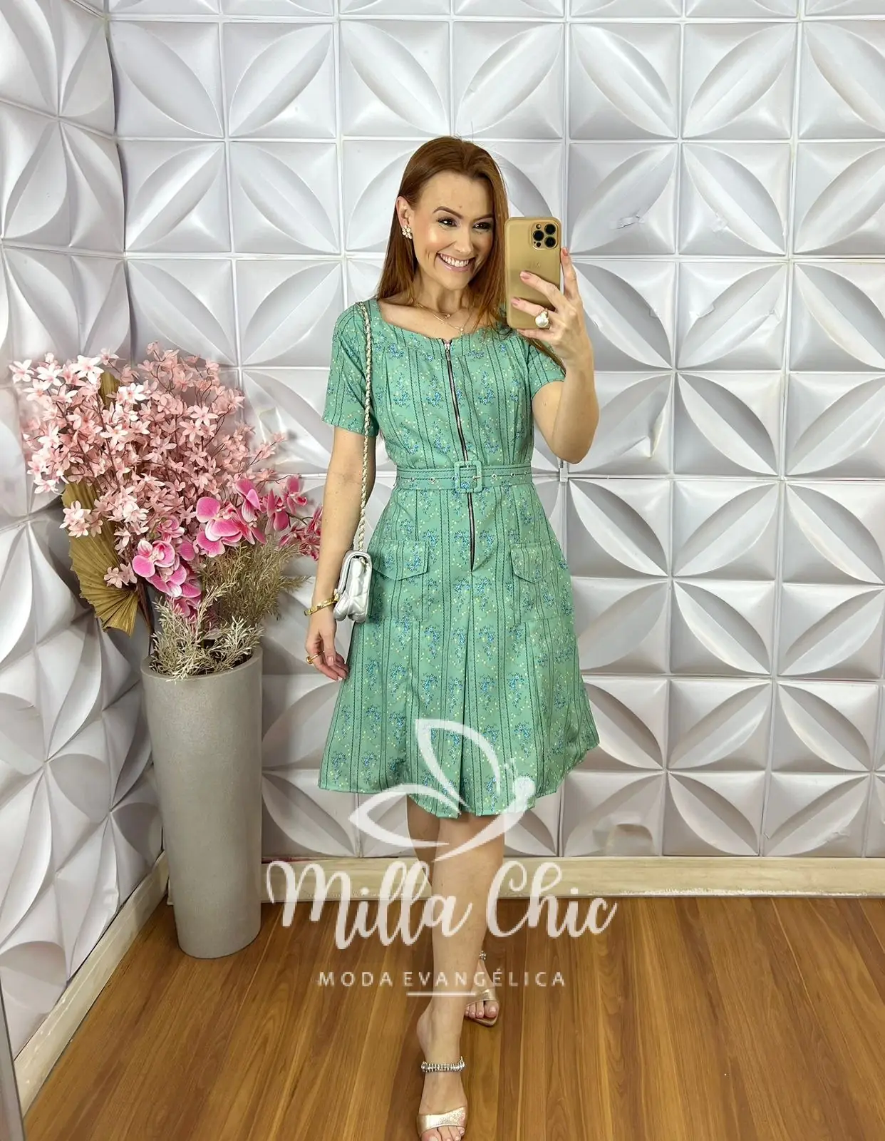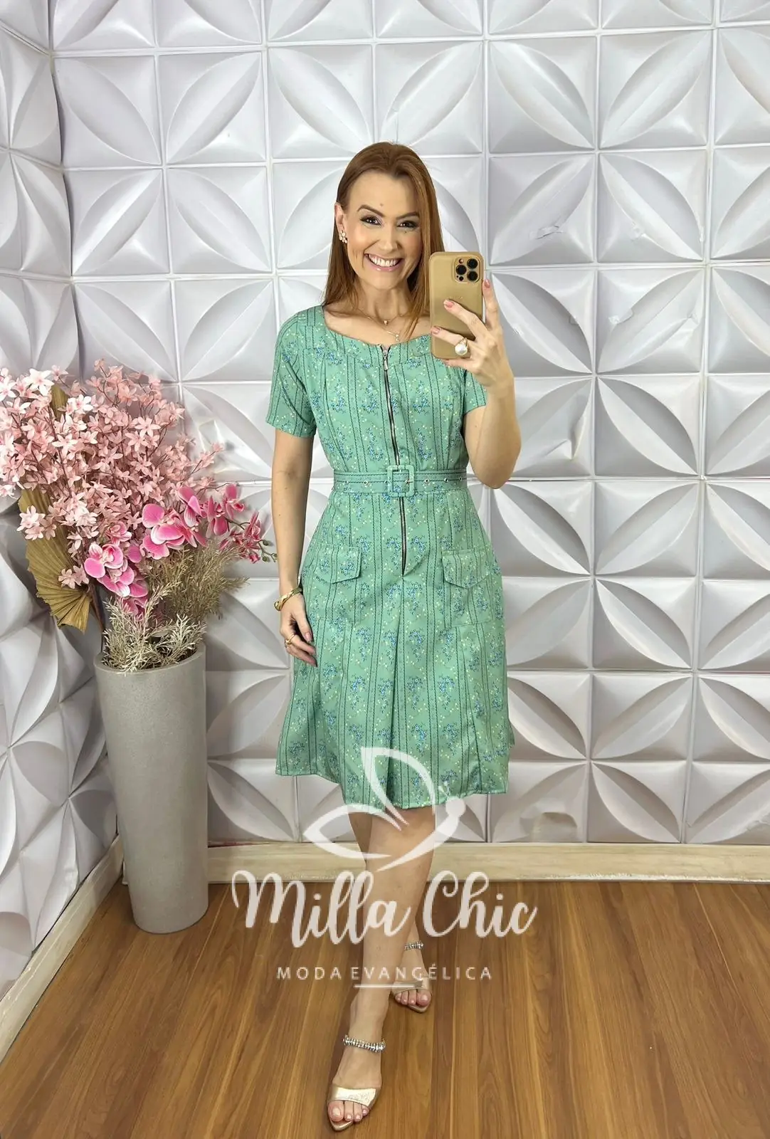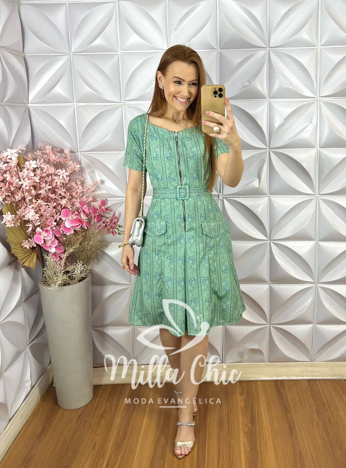 Ele fica bem acinturado e acompanha o cinto encapado que dá aquele toque de sofisticação.