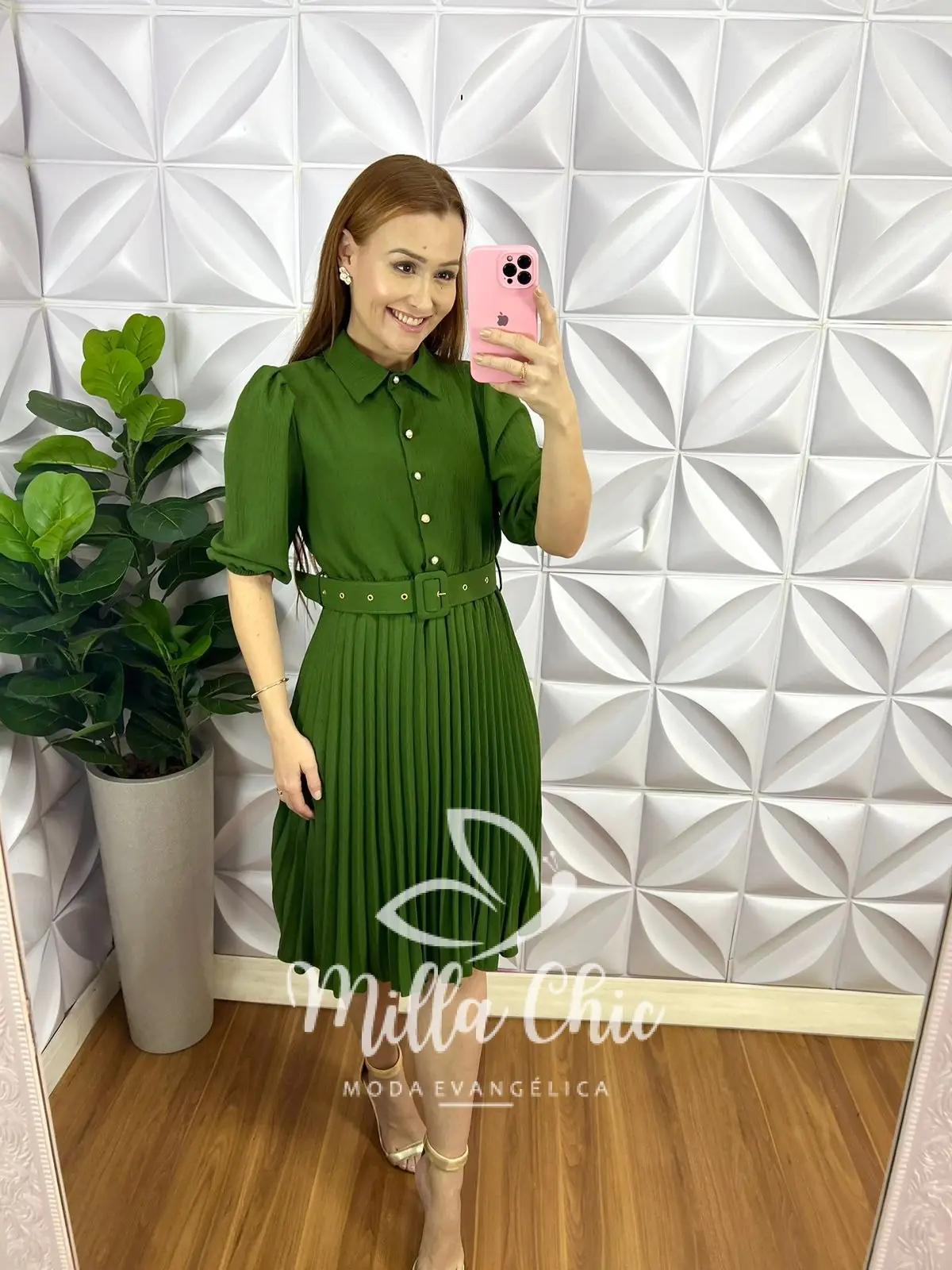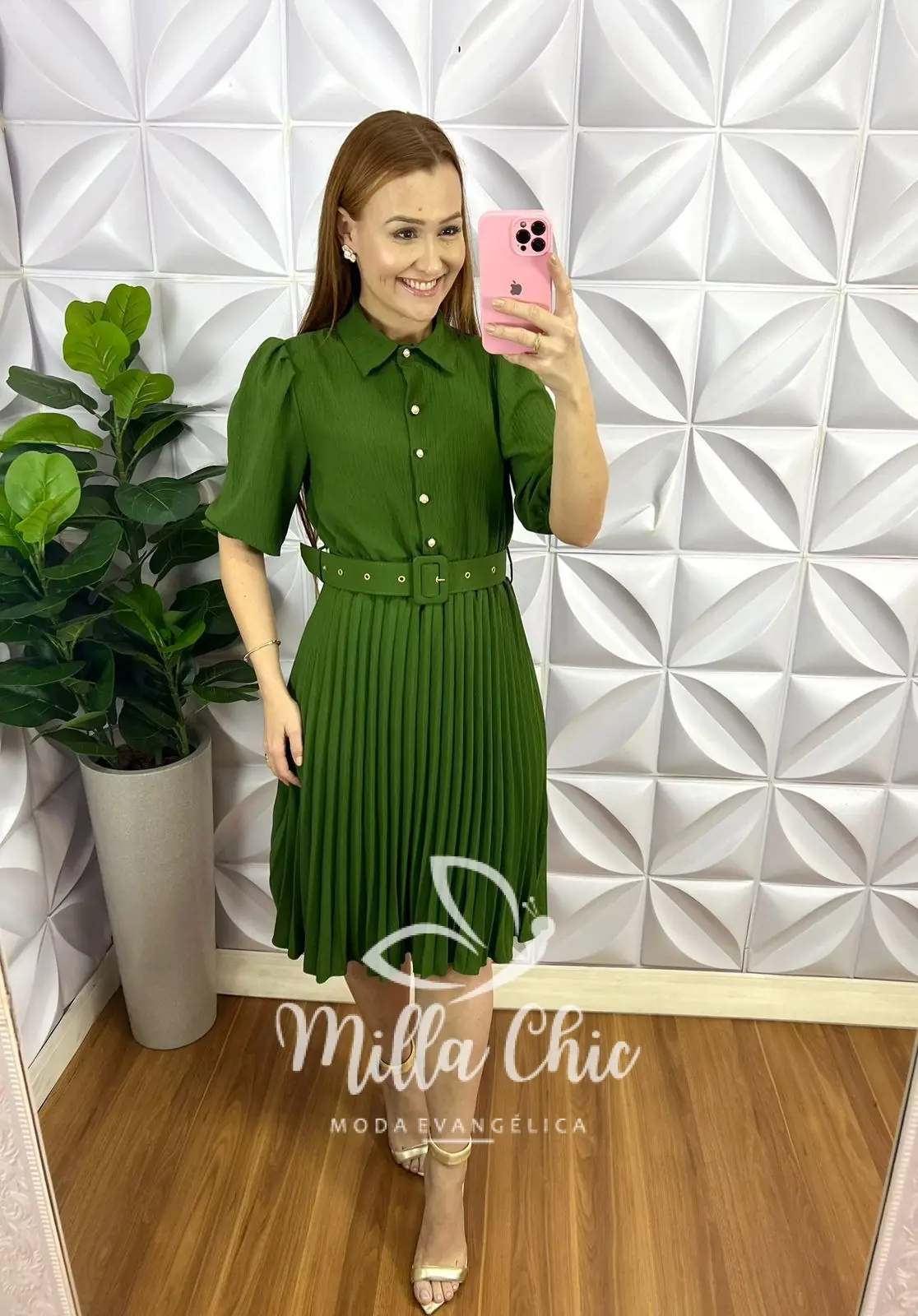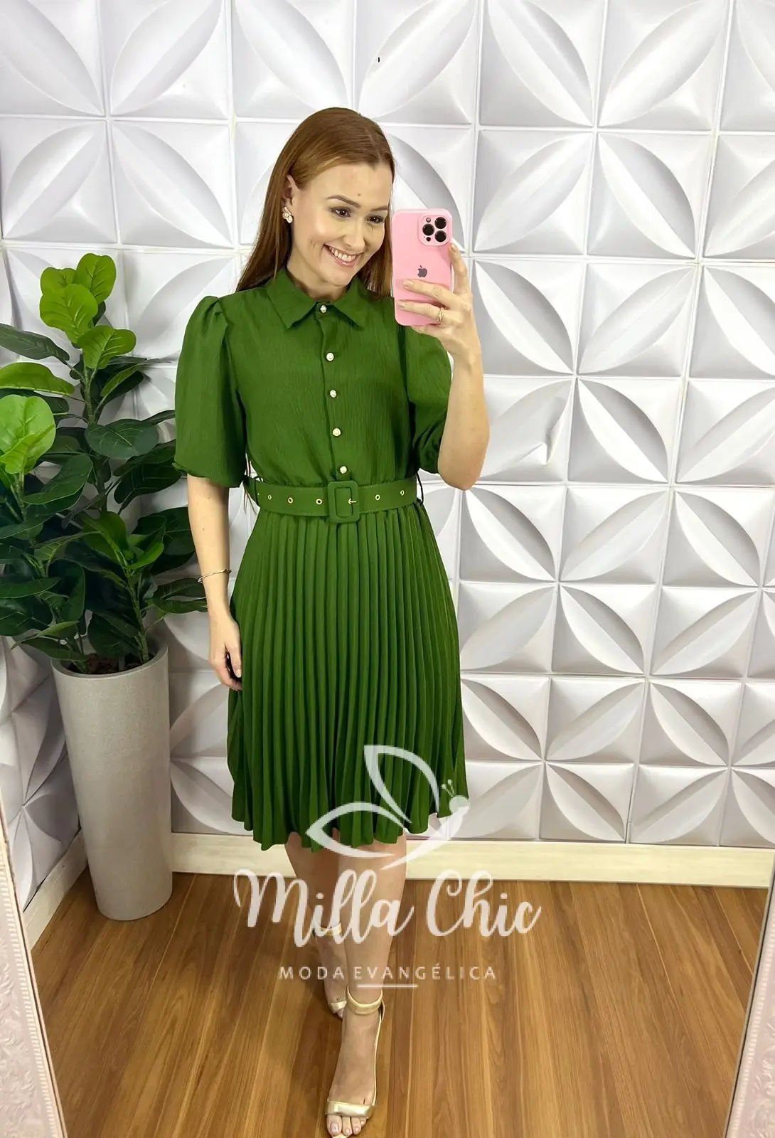 Vestido Crepe Alfaiataria Com Saia Plissada Aurora - Verde - Milla Chic