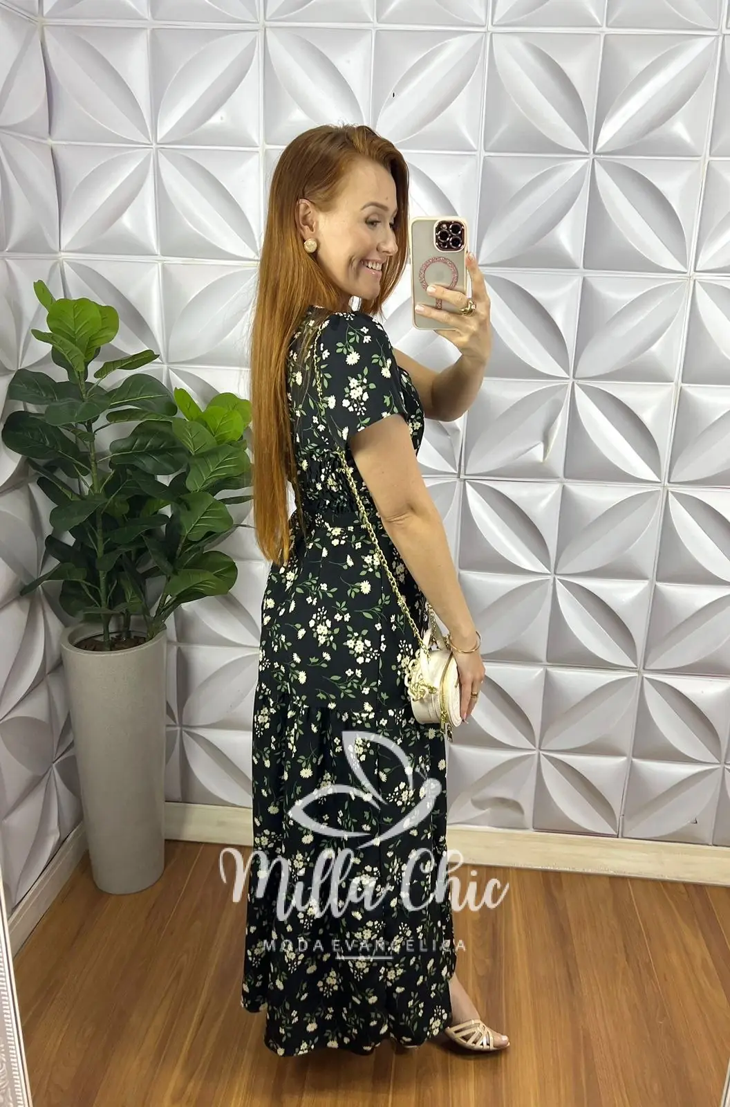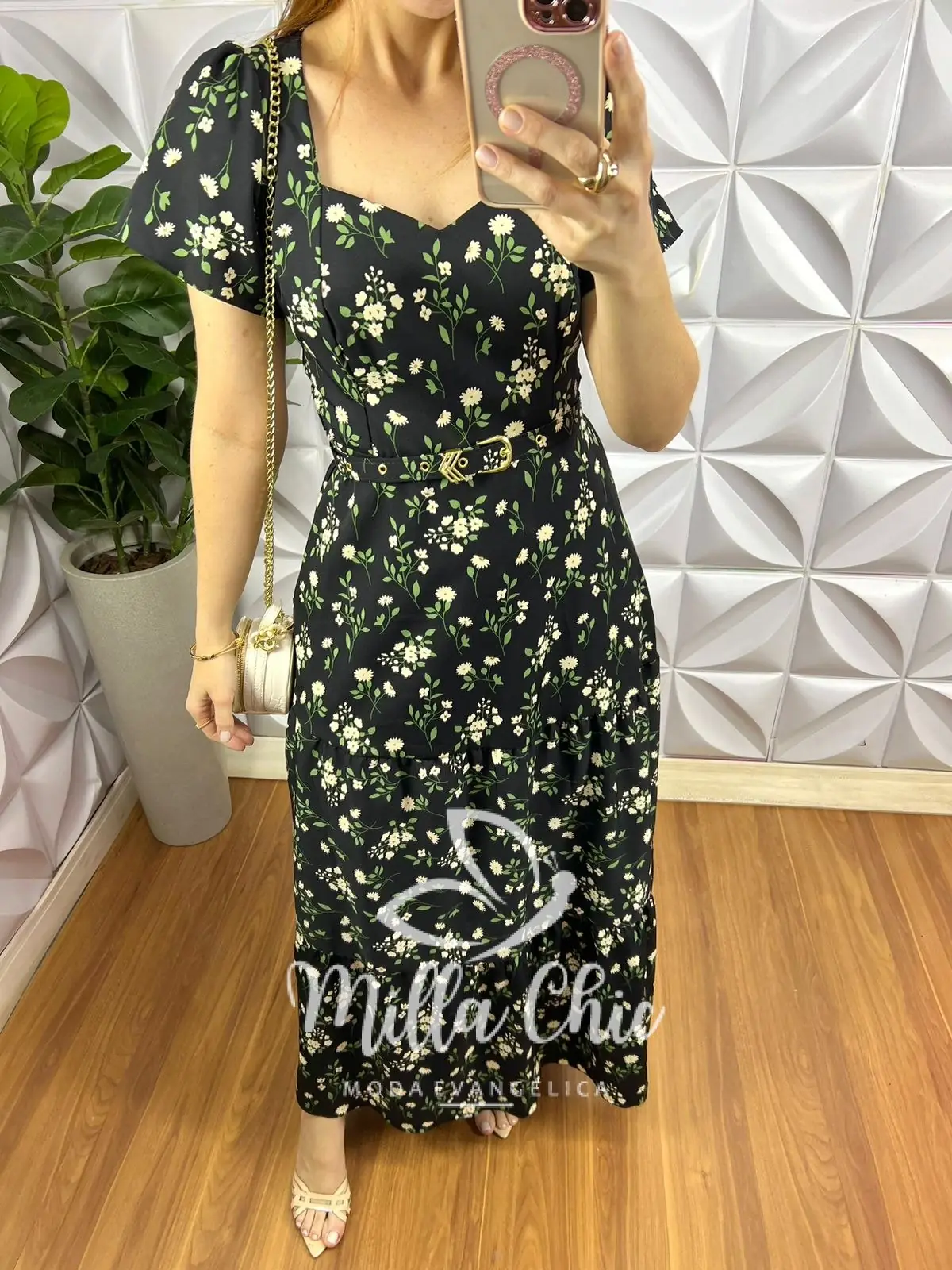 Vestido Todo confeccionado no Crepe Alfaiataria um tecido maravilhoso! Com estampa floral que esta um charme!
