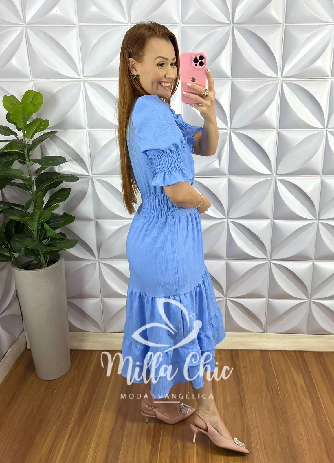 Vestido Todo confeccionado no Crepe tecido maravilhoso! Com babado envolta do ombro e busto que esta um charme!