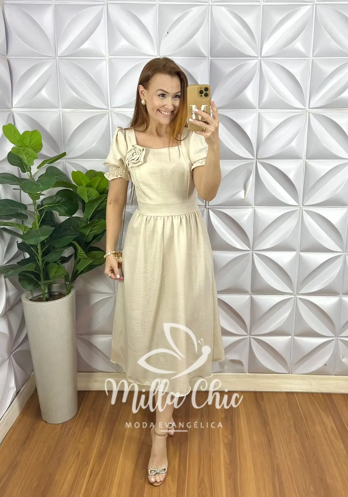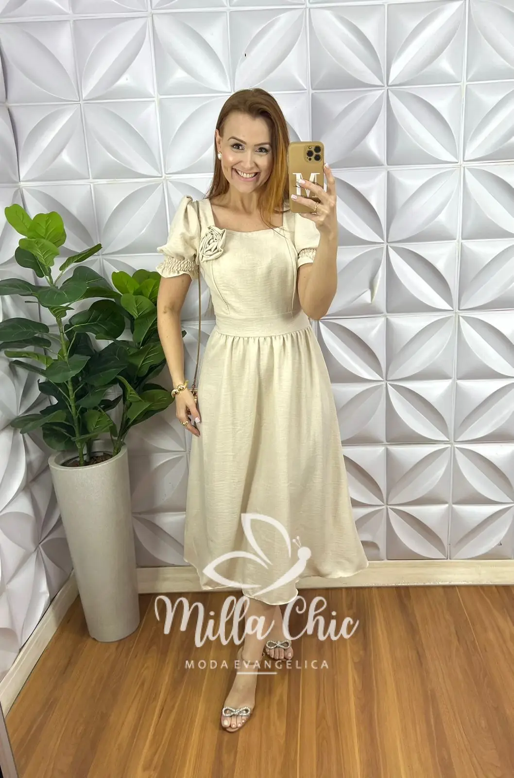 Vestido todo confeccionado no Crepinho um tecido maravilhoso! Com aplicação de flor que esta um charme!
