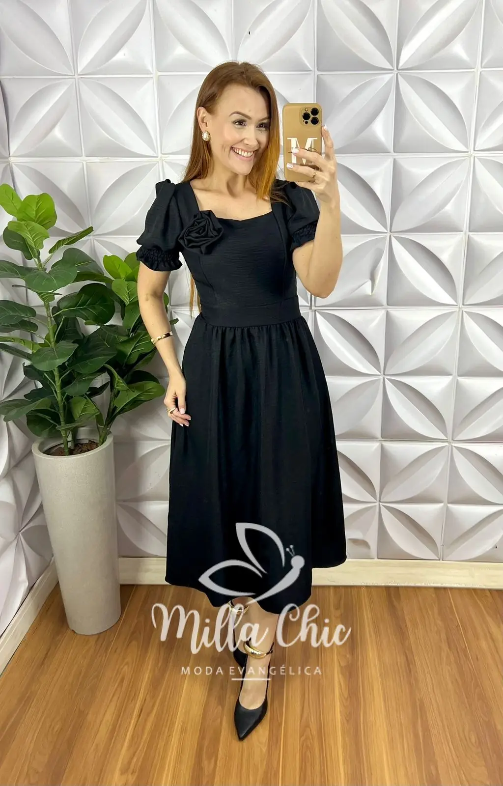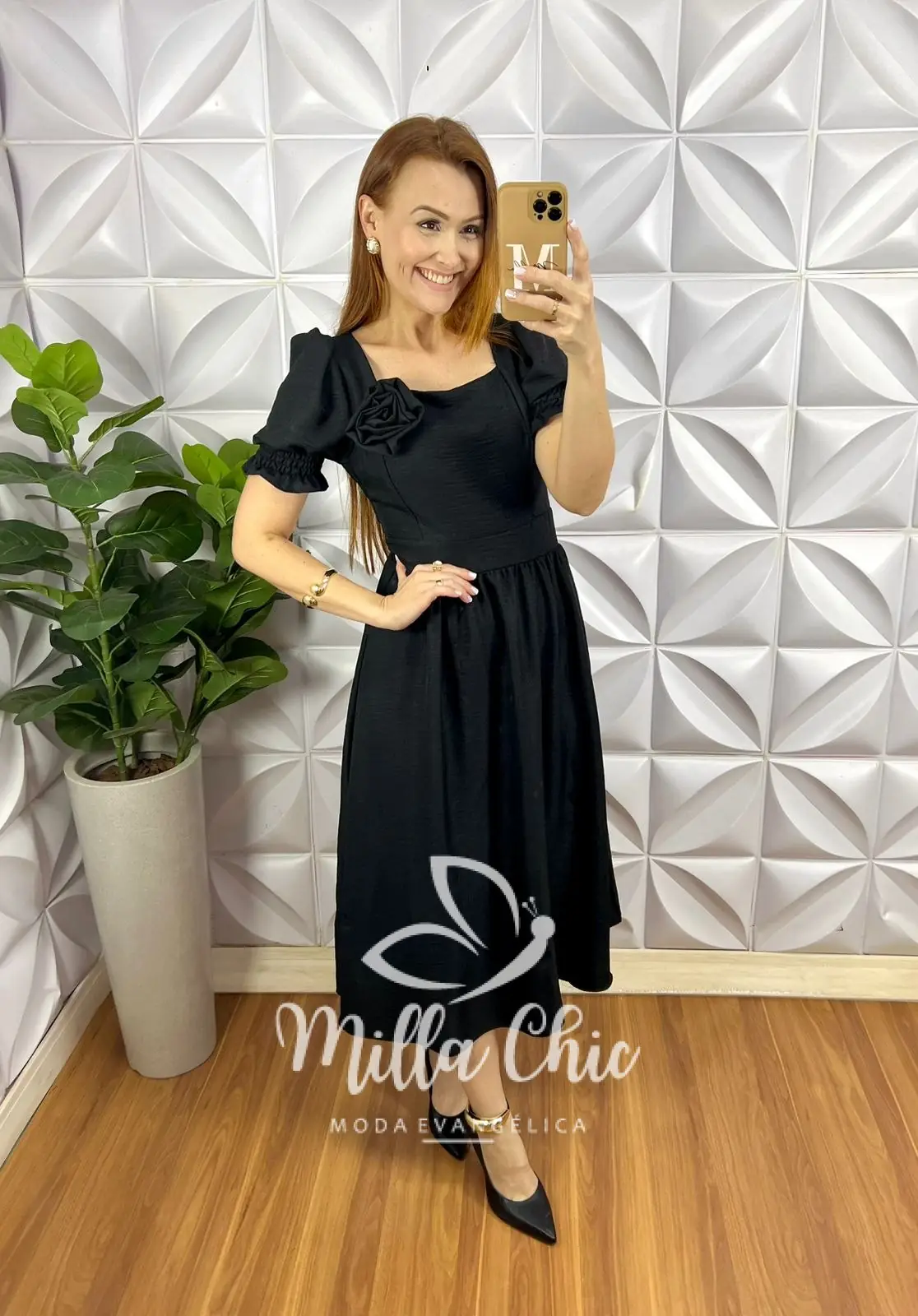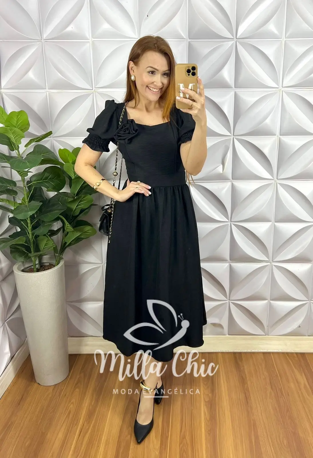 Vestido todo confeccionado no Crepinho um tecido maravilhoso! Com aplicação de flor que esta um charme!
