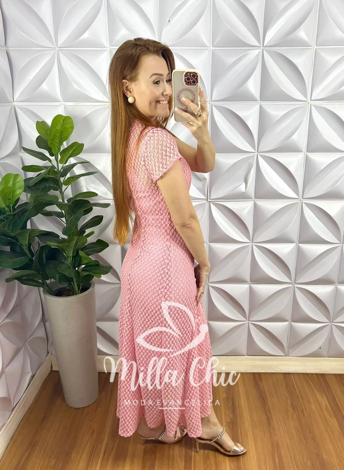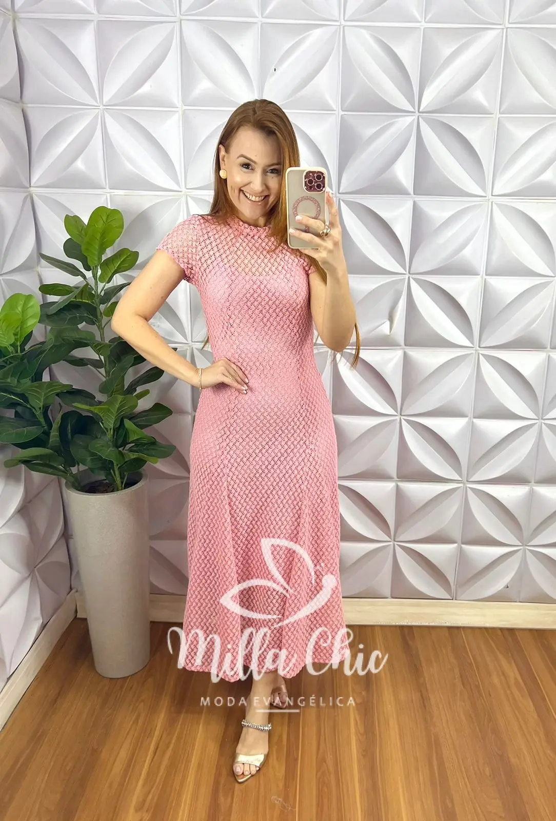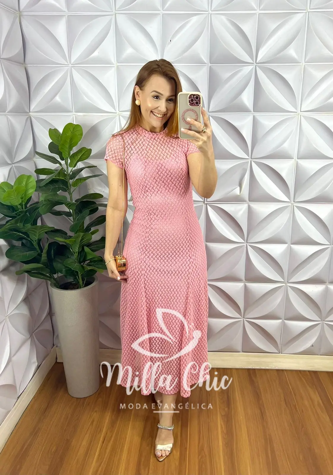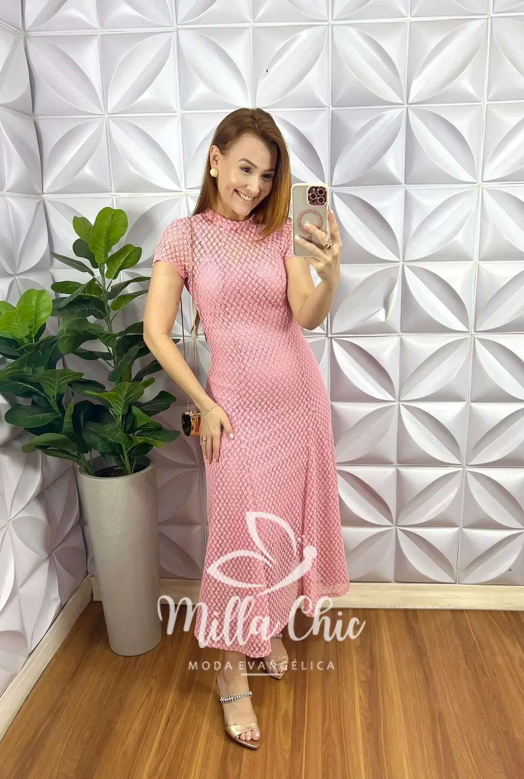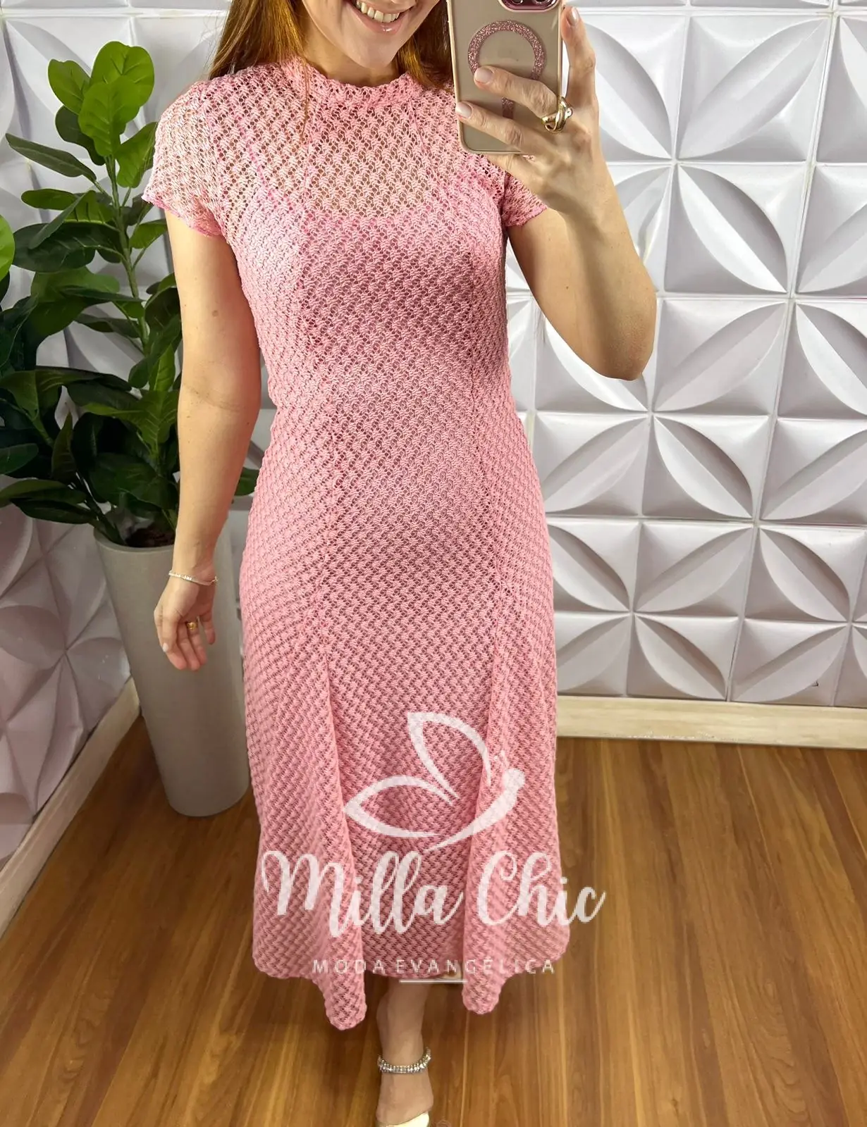 Vestido Renda Crochê Longo Com Forro Camisolinha Simone – Rosa