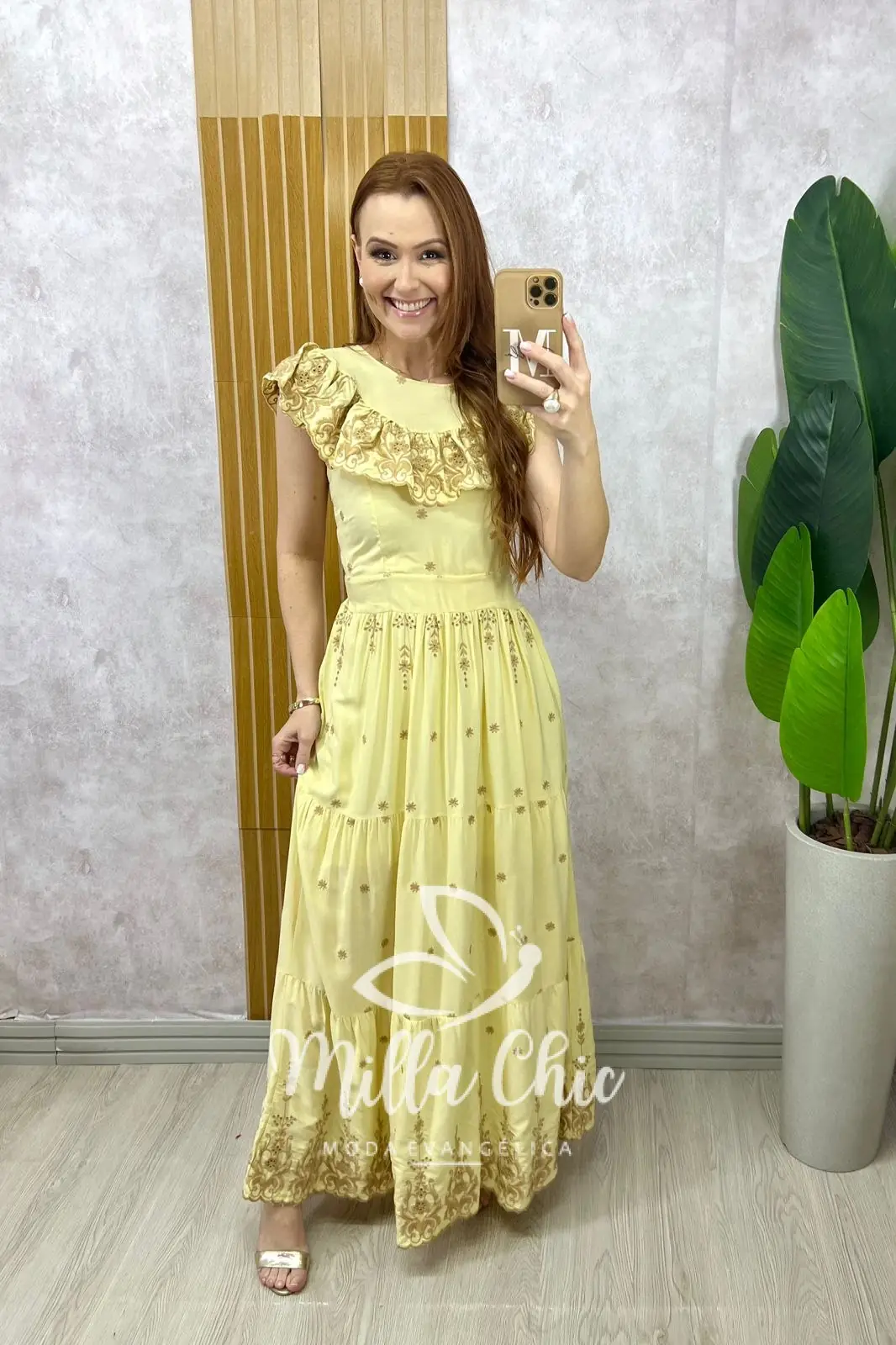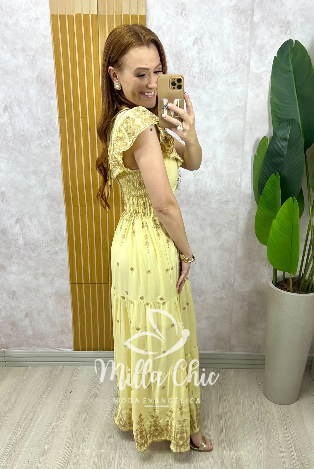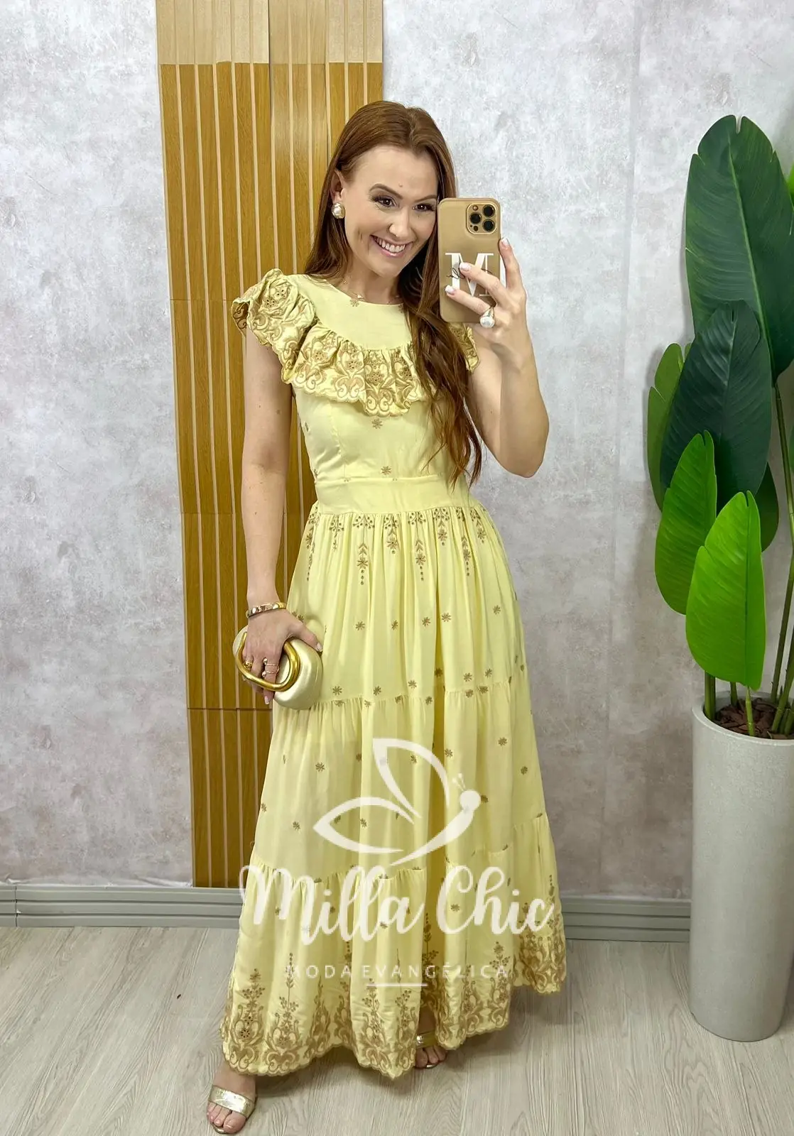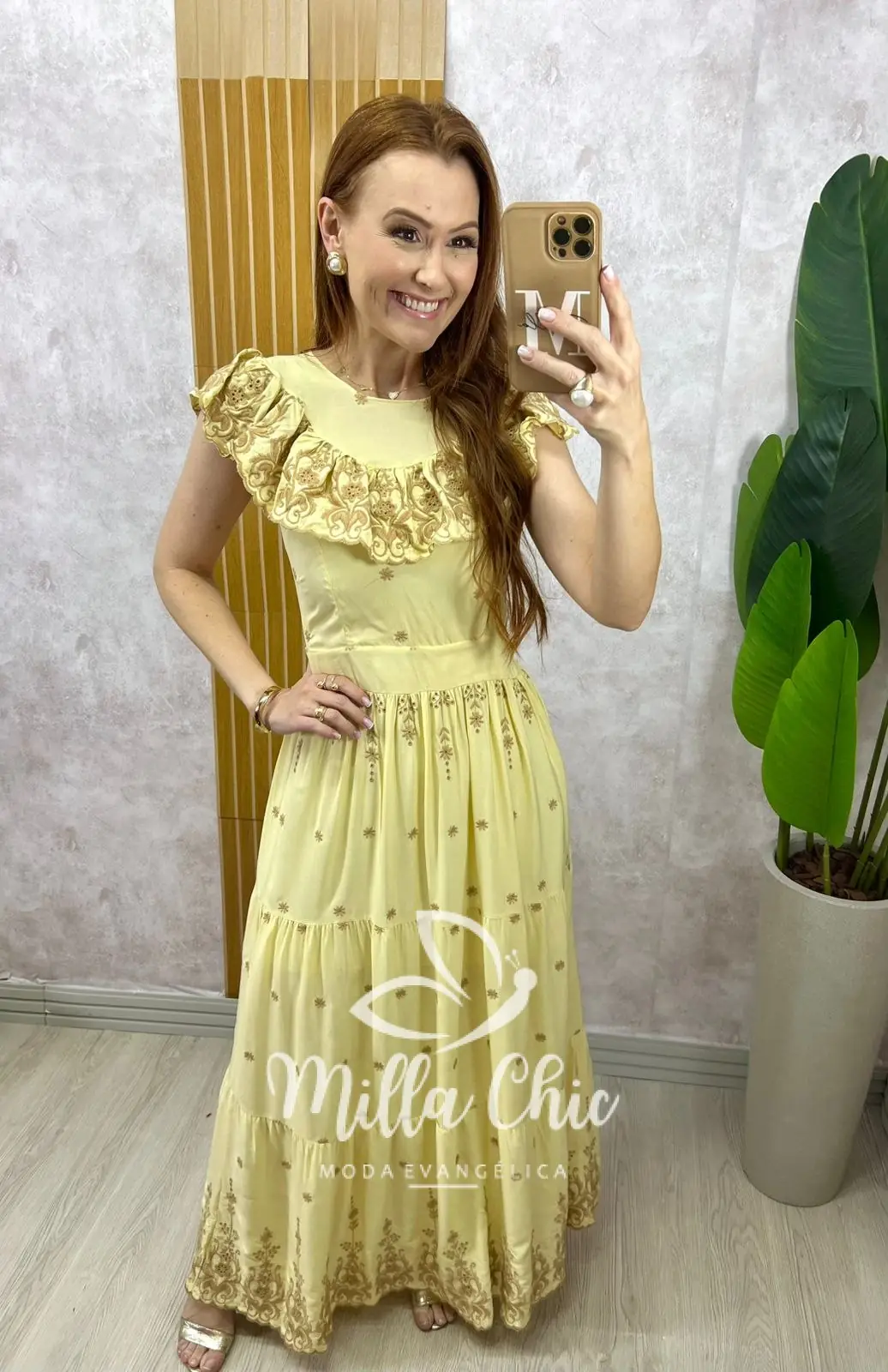 Vestido Dalva em lesie borado - Amarelo manteiga - Milla Chic
