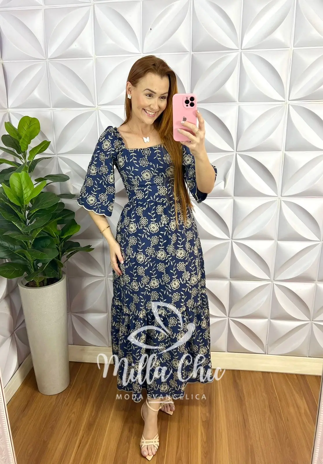 Possui: decote quadrado, manga raglan com elástico, lastex nas costa para vestir bem, recortes no busto para vestir bem, pala na cintura, Vem no comprimento Longo, com uma maria na barra, caimento evase.