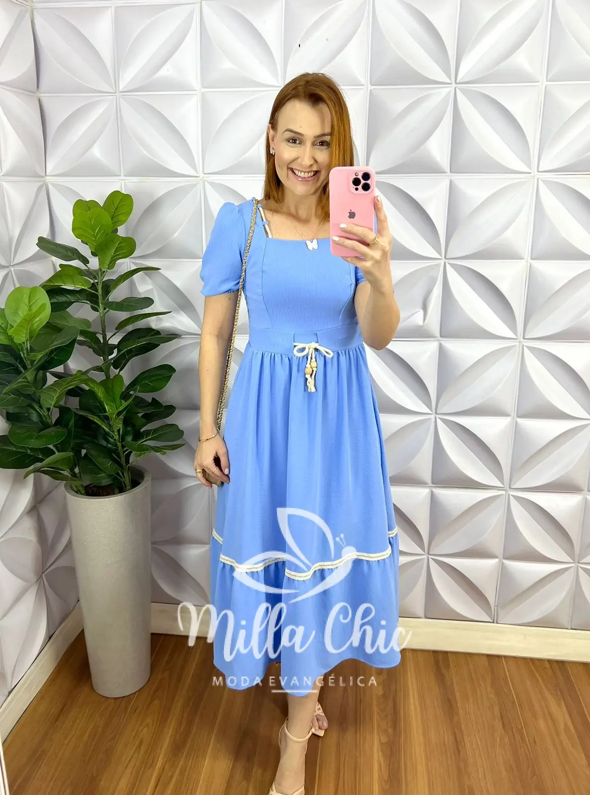 Vestido Dunna Mídi Aviamento De Cordão Melissa – Baby Blue