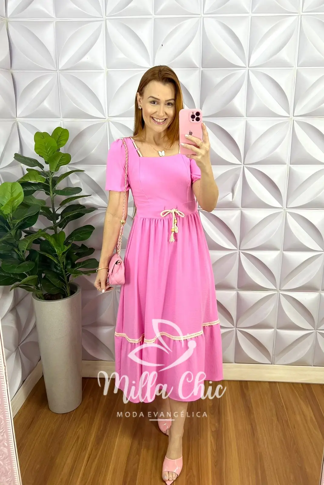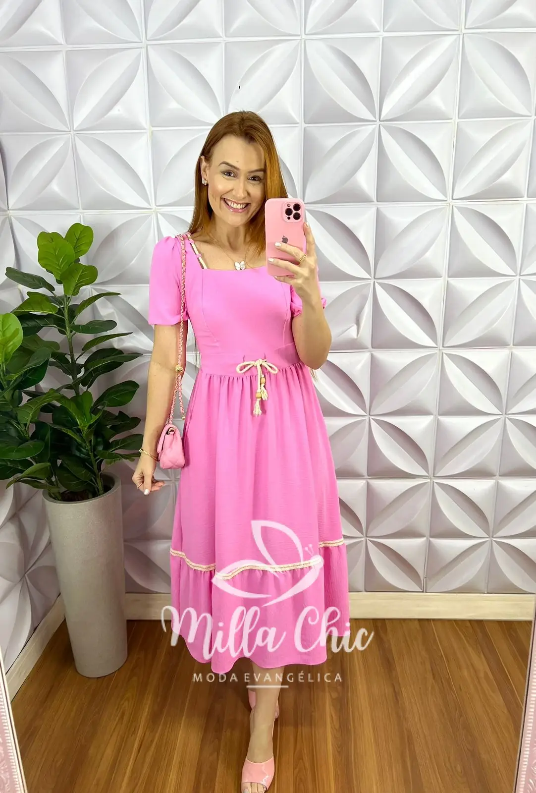 Vestido Dunna Mídi Aviamento De Cordão Melissa - Rosa Ballet - Milla Chic